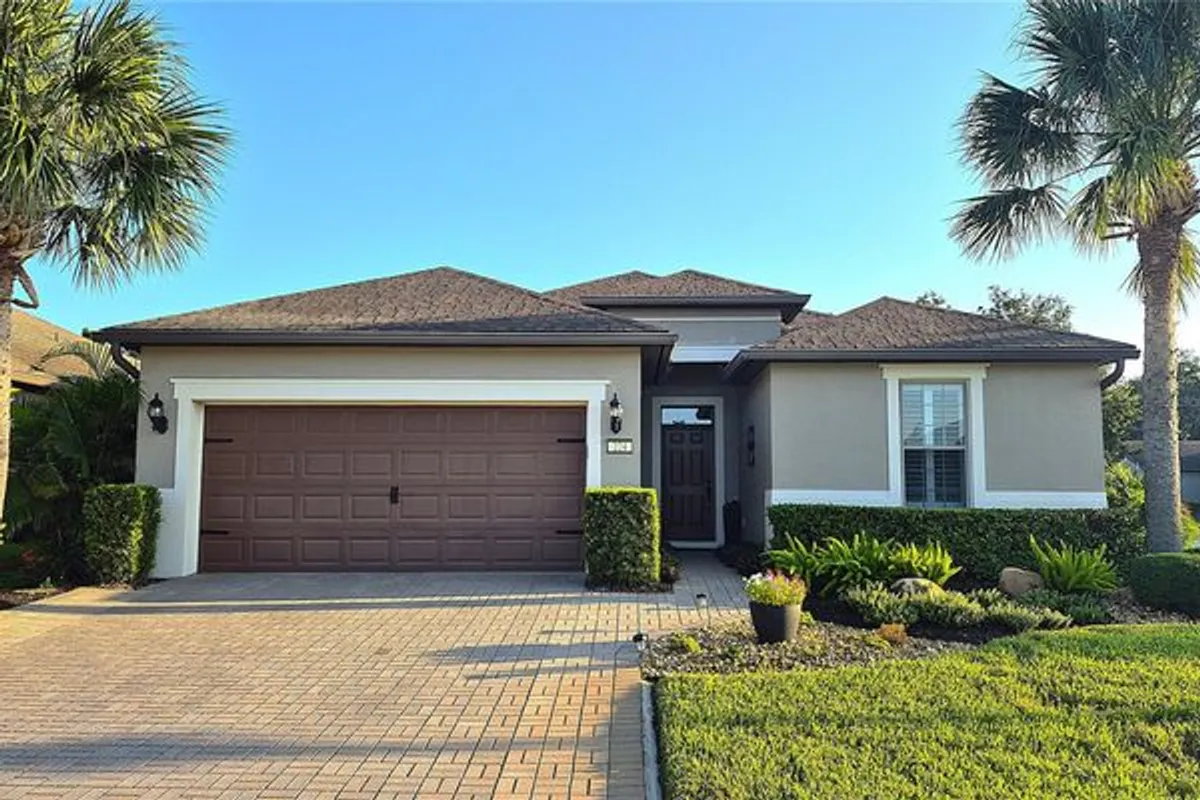 Welcome to 224 Granada Lane, situated in the desirable Del Webb Orlando community. This pristine three-bedroom, two-bath, den(which can be easily converted to a fourth bedroom) residence features a two-car garage that extends an additional four feet and is positioned on a corner lot. As you approach, the beautifully landscaped exterior, complemented by a widened driveway and front walkway, creates an inviting first impression. Inside, the home continues to impress with two front bedrooms sharing a full bath, complete with a tub, vanity sink, and elegant quartz countertops, along with additional towel bars. Both bedrooms are carpeted and equipped with spacious closets. The tiled flooring flows seamlessly from the entryway into the expansive living area, enhanced by crown molding throughout. A tiled den adjacent to the family room offers a versatile space for a home office or a cozy spot to enjoy your favorite shows. The open living area boasts surround sound, a floor electrical outlet, and a stylish ceiling fan, while the dining area is spacious enough for entertaining guests. The well-appointed kitchen, which opens to both the family and dining rooms, features staggered cabinets adorned with rope crown molding, glass front doors, pull-out shelves, and both upper and lower lighting. Stainless steel appliances and attractive quartz countertops complete this culinary space, which also includes a wine cooler, stem glass holder, and wine rack. The generous primary bedroom is carpeted and includes an en-suite bath with an upgraded walk-in shower, dual sinks with quartz countertops, and a large walk-in closet with shelving. The laundry room is equipped with upper and lower cabinets, laminate countertops, a washer and dryer, an ironing board, and a built-in sink. Designer window treatments, including shutters and blinds, add a touch of elegance throughout the home. Finally, the expansive screened lanai 20x40 features pavers, accent lighting, additional electrical outlets, and a convenient 9-foot kitchen with a gas grill, making it an ideal space for outdoor entertaining. The spacious two-car garage features ample storage solutions, including shelving and Rubbermaid tool racks. Additionally, the paid solar panels contribute to reducing your electricity expenses. Del Webb Orlando offers its residents a range of exceptional amenities, including an outdoor pool with a jacuzzi, an indoor pool, a fitness center, and both indoor and outdoor tracks. Additionally, residents can enjoy recreational activities such as tennis, bocce, and pickleball, along with a tavern for social gatherings. Conveniently situated near major highways, shopping centers, restaurants, and the attractions of Disney, this property is must-see. Schedule your appointment today to explore this remarkable community.