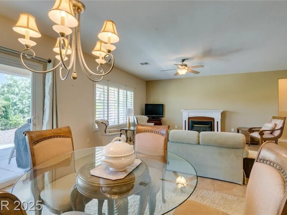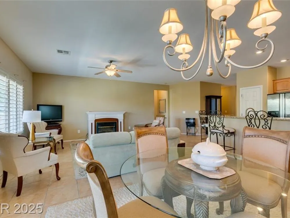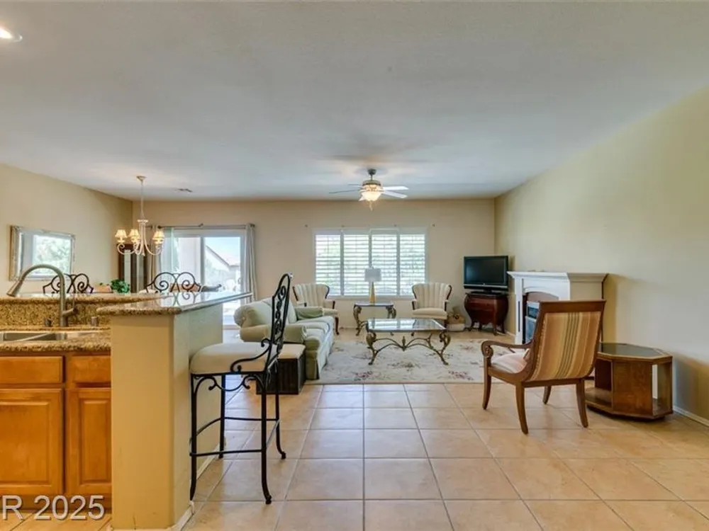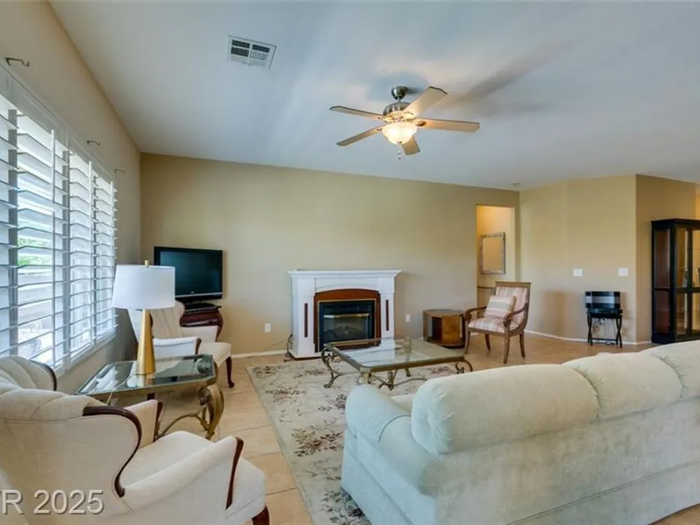 Discover the relaxed lifestyle of Sun City Anthem, one of Henderson’s most sought-after 55+ communities. This well-designed single-story home offers an open floor plan with tile and carpet throughout, granite kitchen counters, and a movable electric fireplace that adds warmth and charm. The primary bathroom features a rejuvenating dry sauna, creating your own spa-like escape. A guest bedroom and a flexible den provide ideal spaces for visitors, hobbies, or a home office. Step outside to a peaceful backyard with a covered patio—perfect for quiet mornings or evening gatherings. With a little creativity and care, this home is ready to shine and reflect your personal touches. Enjoy the clubhouse amenities and countless social activities that make Sun City Anthem truly special.
