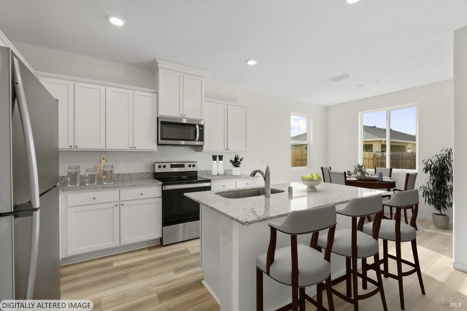 Boasting charm and modern comfort, this beautifully upgraded single-story home is nestled in the vibrant 55+ community of Summit at Liberty in Rio Vista. Designed with both style and function in mind, the open layout includes two spacious bedrooms, two full bathrooms, a generous family room, and inviting covered outdoor areasperfect for relaxing or entertaining. Just a short walk away, you'll find incredible resort-style amenities including a sparkling pool, clubhouse, fitness center, and moremaking every day feel like a getaway. This home also comes packed with premium features at no extra cost, such as energy-efficient Whirlpool® appliances, gleaming granite countertops, designer wood cabinetry with crown molding, a Wi-Fi-enabled garage door opener, included solar panels, and more!