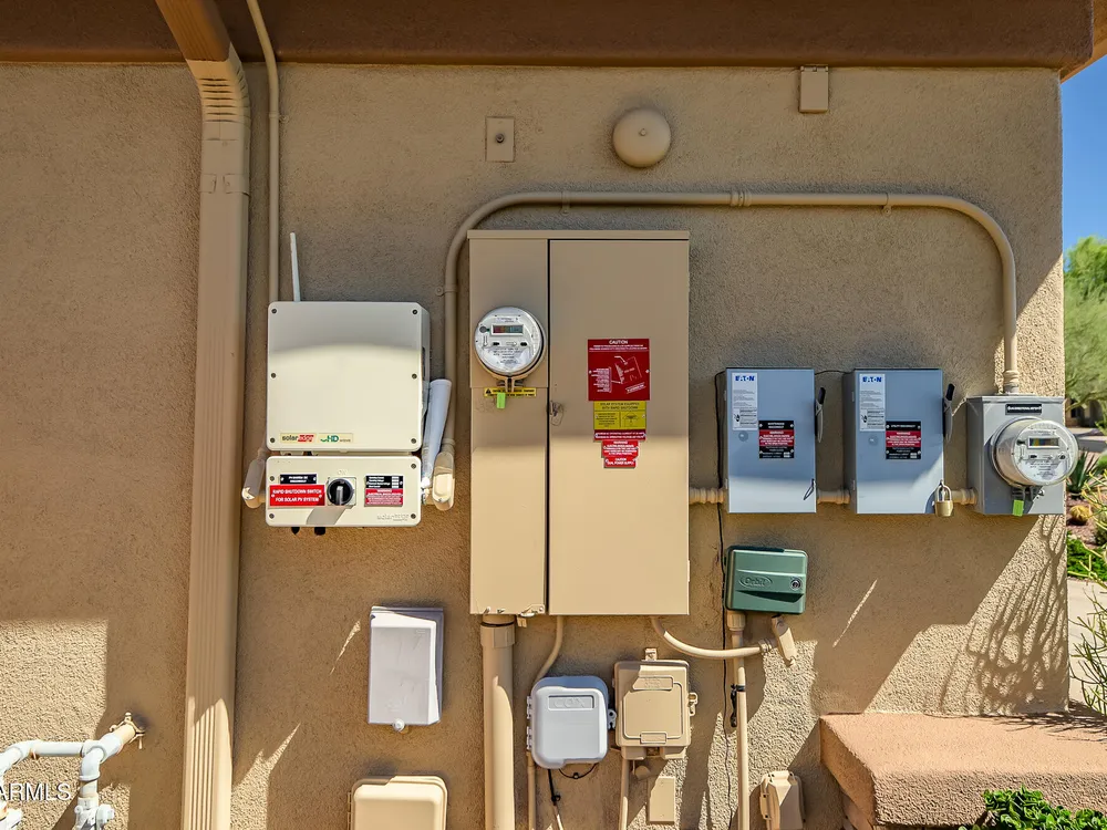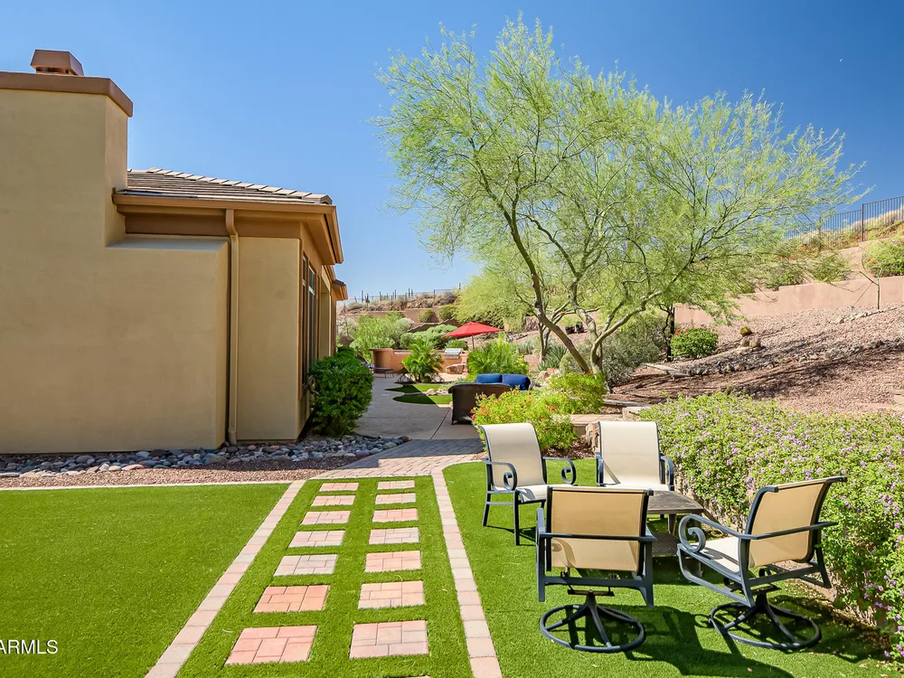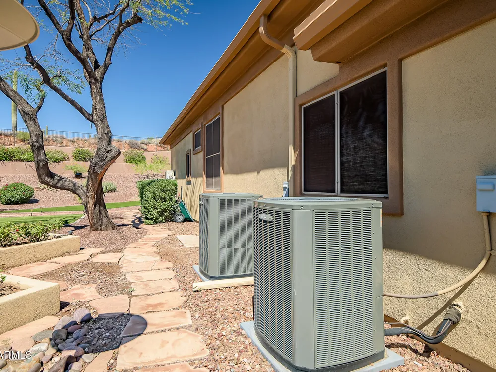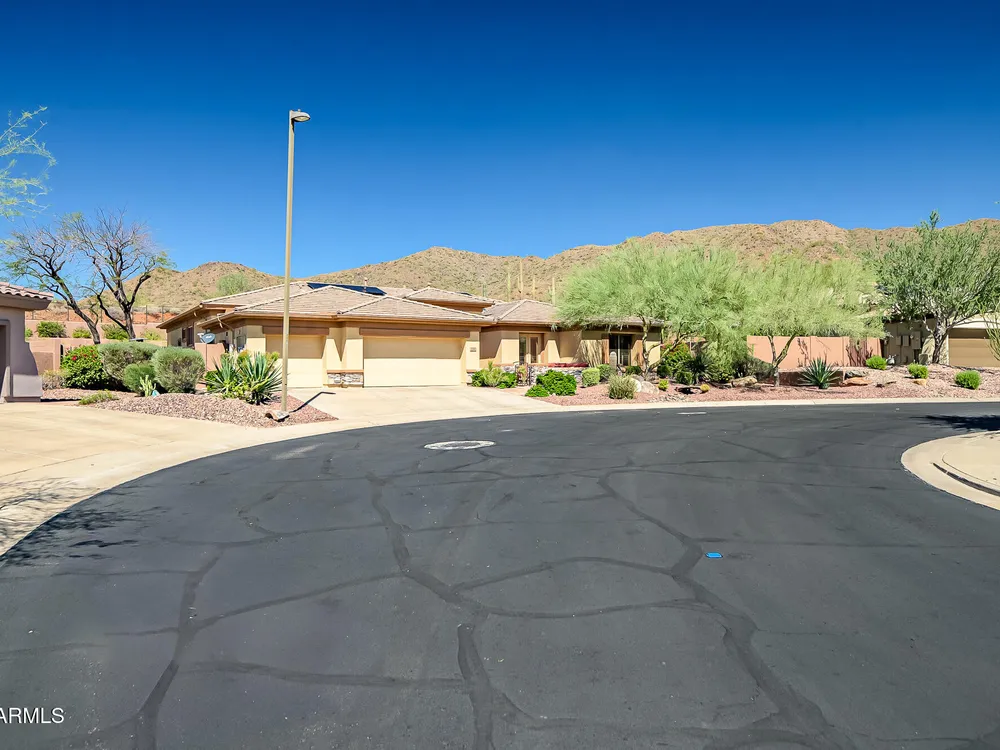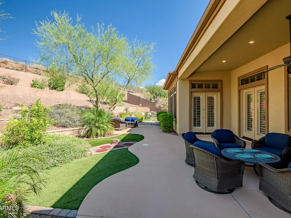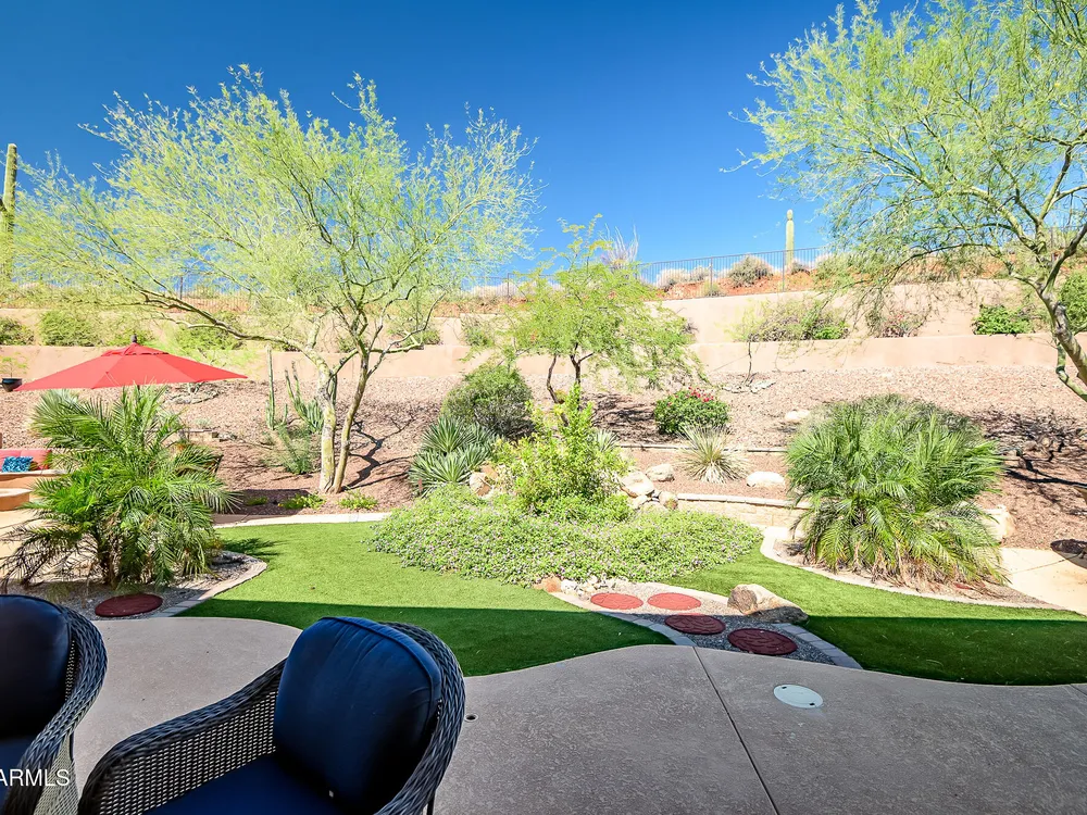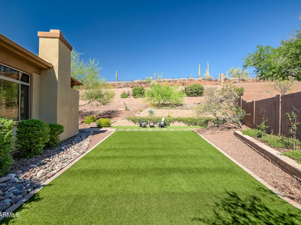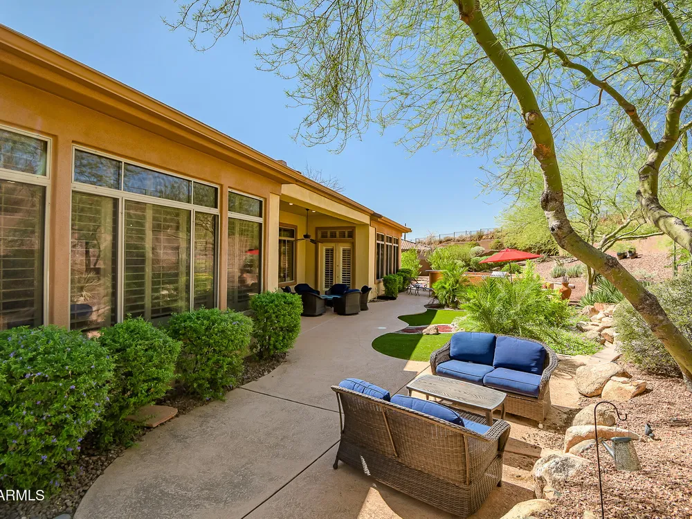 Solar panels are owned, less than 2 years old, and convey to new owner. Two updated Trane Air Conditioning systems 7 years old. Roof replaced less than 2 years ago. Kitchen appliances less than 2 years old except microwave. Roof replaced less than 2 years ago. Stunning Amherst model on huge oversized lot backing to natural desert with total privacy! Located in one of the most quiet and peaceful neighborhoods in Anthem Country Club, home its on over a half acre lot, room to build a guest casita, bocce-ball court, putting green, expansive garden, etc., the opportunities to create your own private outdoor resort are endless!! Existing garage can be easily converted back to 3-car or keep it as a utility/work room. There is a pool in the backyard that was filled in by the current owners but may be brought back to life. Backyard has been expanded with beautiful synthetic green grass all around. This beautiful estate property also features elegant interior upgrades that include polished travertine flooring throughout (currently covered by floated LVT that can easily be removed), solar tubes, plantation shutters, crown molding, rich custom cabinetry with slide out shelving, custom walk in pantry, custom kitchen island, custom built in art display wall, custom built in office shelving, custom lighting and paint everywhere. This floor plan includes a dedicated office and the optional "Garden Room" which can be used a 4th bedroom or second office and has French doors to the front courtyard. Your backyard living space greets you with a potential pool, waterfall, covered patio, built-in BBQ kitchen island, fire pit and incredible spacious privacy! Country Club Lifestyle with Resort Style Amenities...Anthem Country Club is managed by Club Corp which offers many great benefits to members that reciprocate around the world! Two 18 hole golf courses, Persimmons and Ironwood, designed by Greg Nash. 2 Pro shops, 2 sets of men's and women's lounges / locker rooms, 2 member restaurants, 2 gyms, 2 pools, 2 spas, several tennis courts, Gorgeous Ball Room for ongoing Member events and private events venues available as well, 2 Impressive guard gated entrances, all surrounded by breathtaking mountain and golf course views...you will love being a member of the Anthem Golf & Country Club!