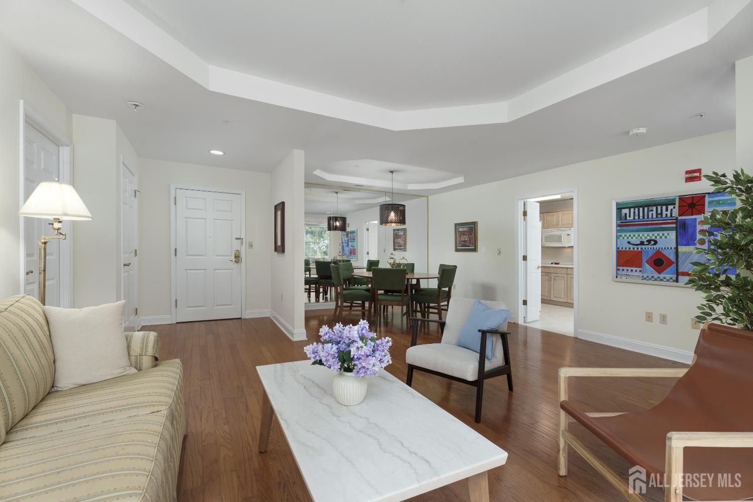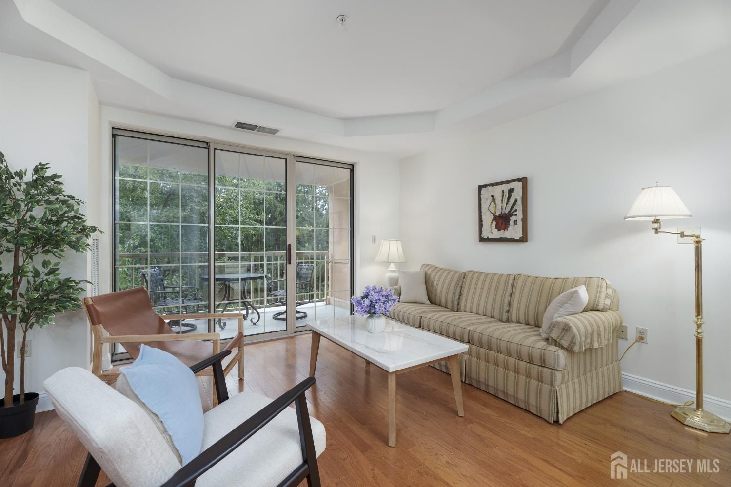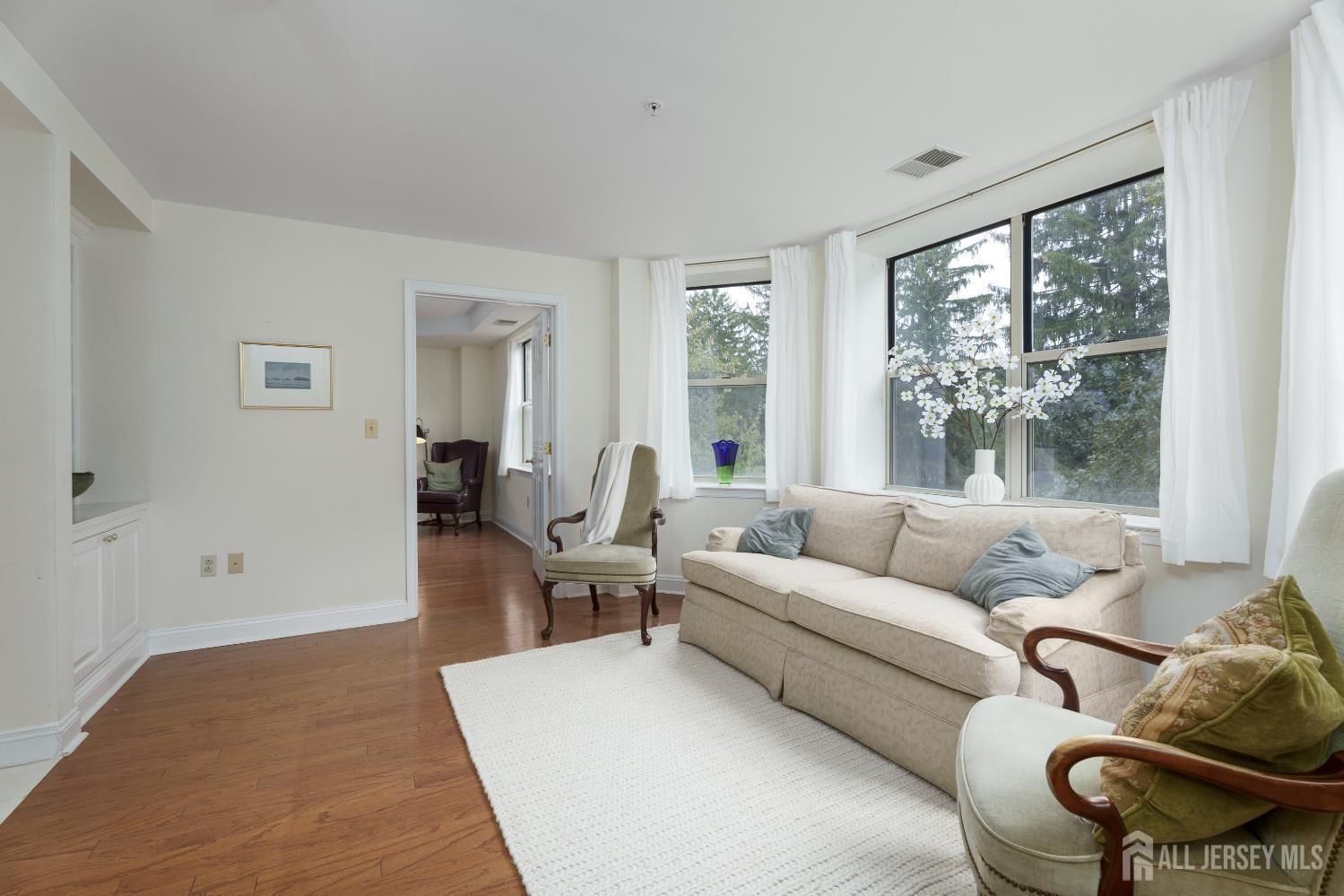 With this converted two-unit offering there's no need to sacrifice space for the ultimate convenience of living in the bright and beautiful Windrows main building. This is the hub of Plainsboro's premiere 55+ community, where everyone gathers at a choice of dining venues, the library, the gym, the art studio and pool. The atrium lobby is in the midst of a complete transformation and the common areas outside this unit have already been refreshed and modernized. Enter into hardwood floors and loads of southern light. The flexible, open dining and living areas give way to a covered balcony with treetop views. The large, white kitchen flows into more versatile space for casual meals or conversation. The bedrooms are nicely separated, ideal for hosting overnight guests. The larger two-room suite has the uncommon luxury of two full bathrooms, meaning no one ever has to share! Plus, a second balcony is your own private outdoor oasis. Generous closets throughout let you keep treasured belongings organized and within arms reach. With transportation services, housekeeping and exciting cultural and learning opportunities all rolled into the monthly fee, nothing is overlooked.