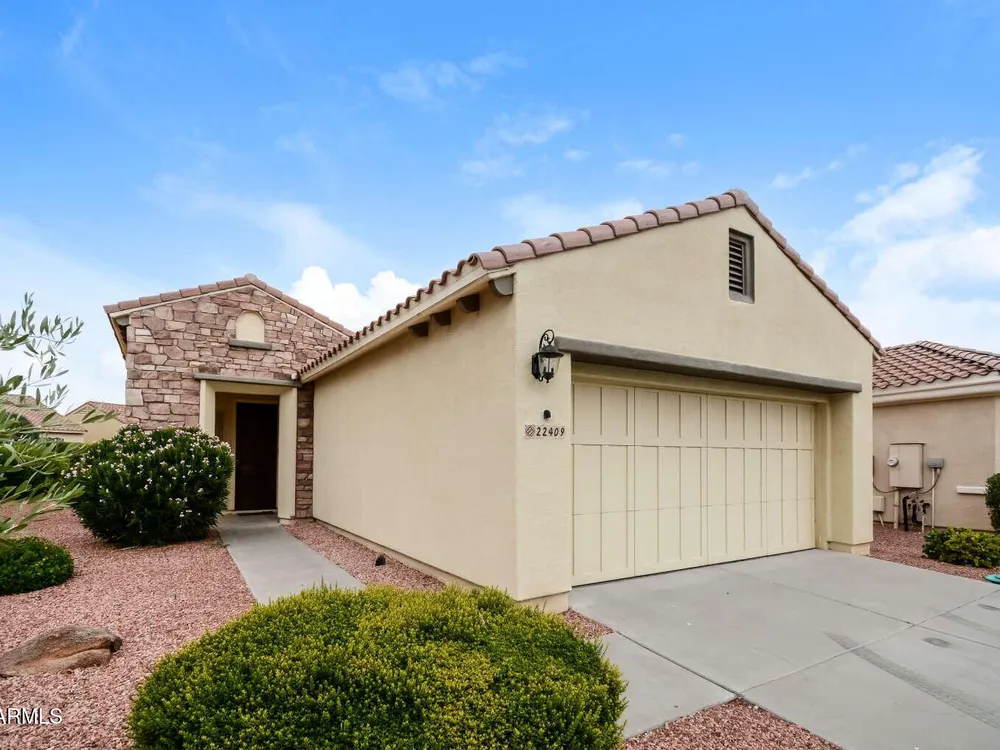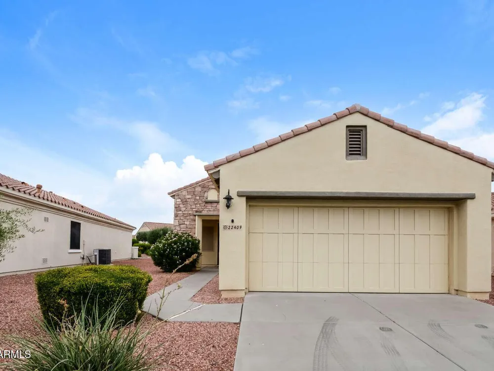 Discover this charming home located in the heart of Corte Bella Country Club, just a short walk from the clubhouse. This 2-bedroom, 2-bathroom home includes a 2-car garage and beautiful front and backyard space. Inside, you'll find tile flooring throughout the main areas, and ceiling fans in every bedroom, all complemented by neutral paint tones. The bright kitchen features maple cabinets, solid surface countertops, modern appliances, and a glass door leading to the backyard. The spacious main suite includes a private bath with dual sinks, a glass shower, and a generous walk-in closet. Situated on one of the largest lots in the villas, this home offers a relaxing covered patio perfect for outdoor enjoyment.