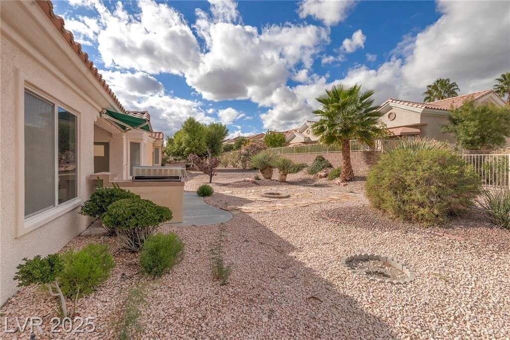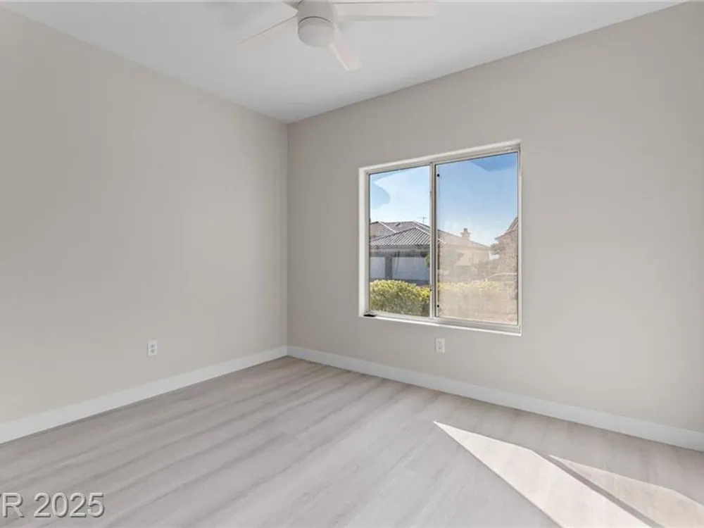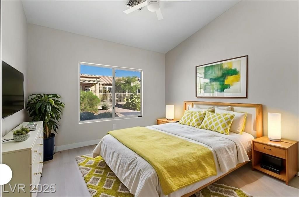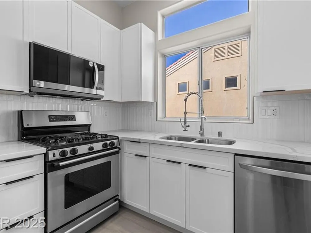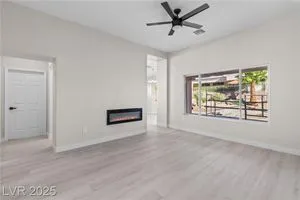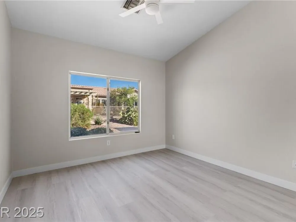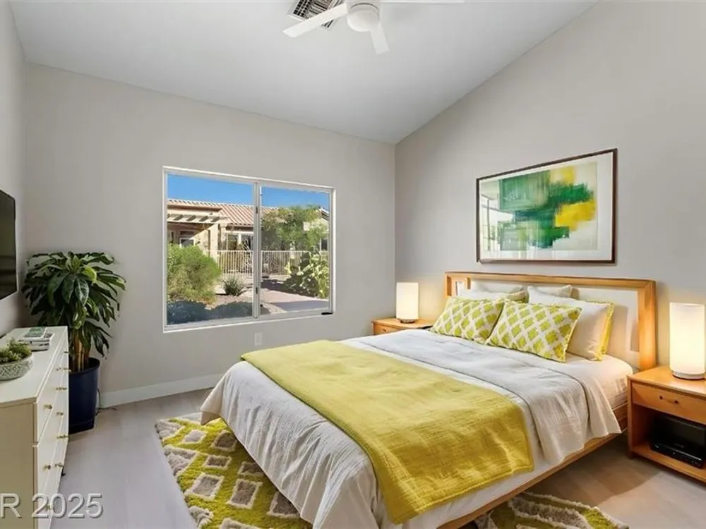 Beautifully renovated 2-bedroom, 2-bath home in the heart of Sun City Summerlin! This move-in ready gem is packed with upgrades, including luxury vinyl flooring and ceiling fans throughout. The modern kitchen boasts granite countertops, stainless steel appliances, and upgraded cabinetry. The spacious primary suite features mirrored closet doors, dual sinks, and a large walk-in shower. Enjoy the outdoors year-round with a covered patio, built-in BBQ, and low-maintenance landscaping—perfect for relaxing or entertaining. Located in a vibrant 55+ community with access to a pool, spa, fitness center, and more!