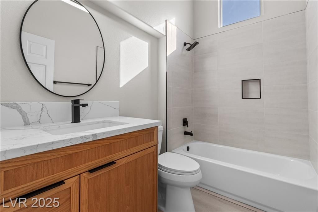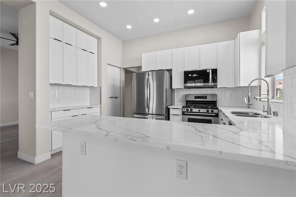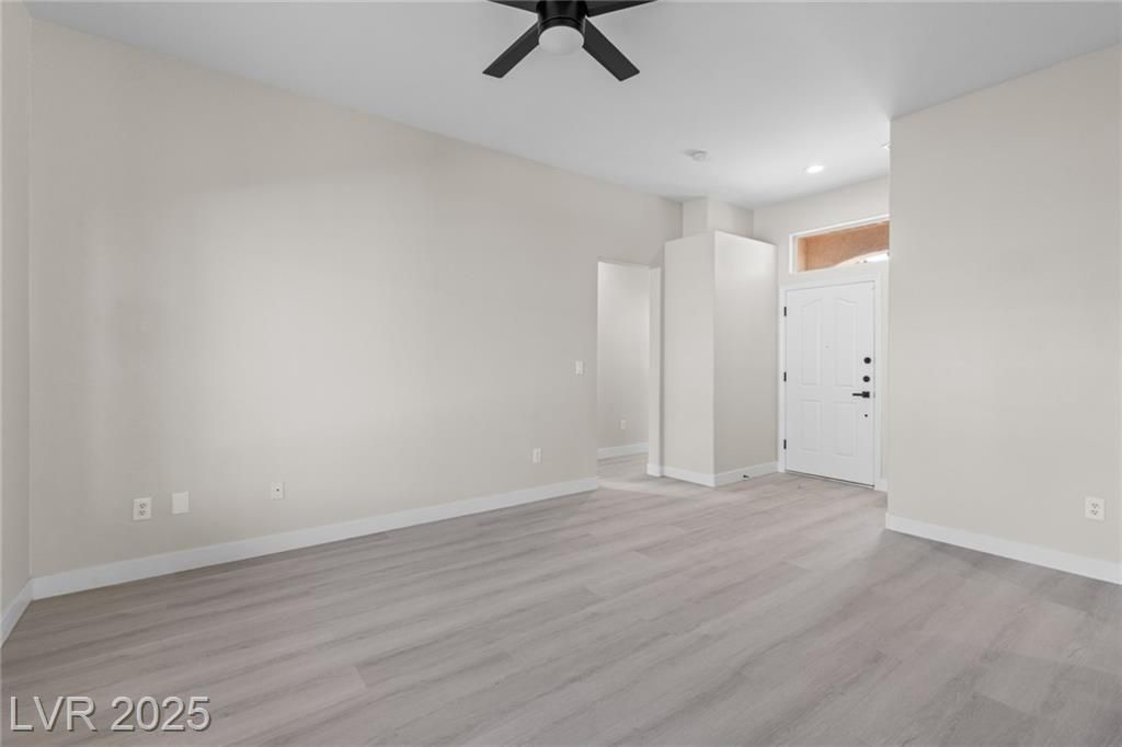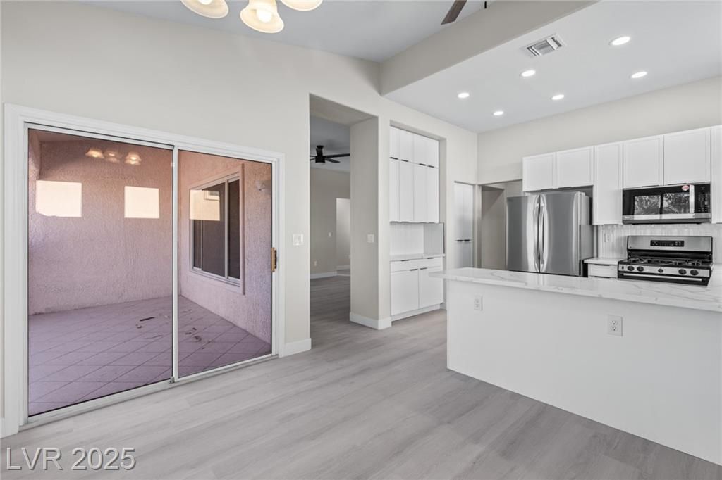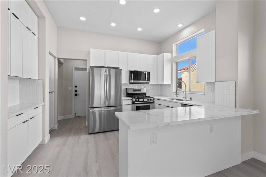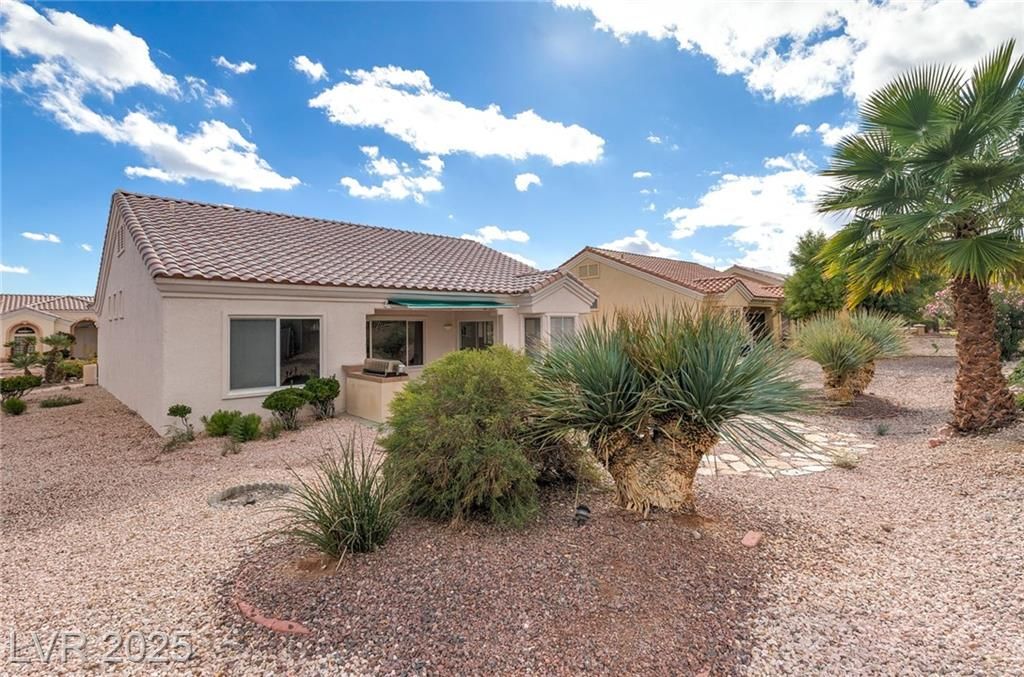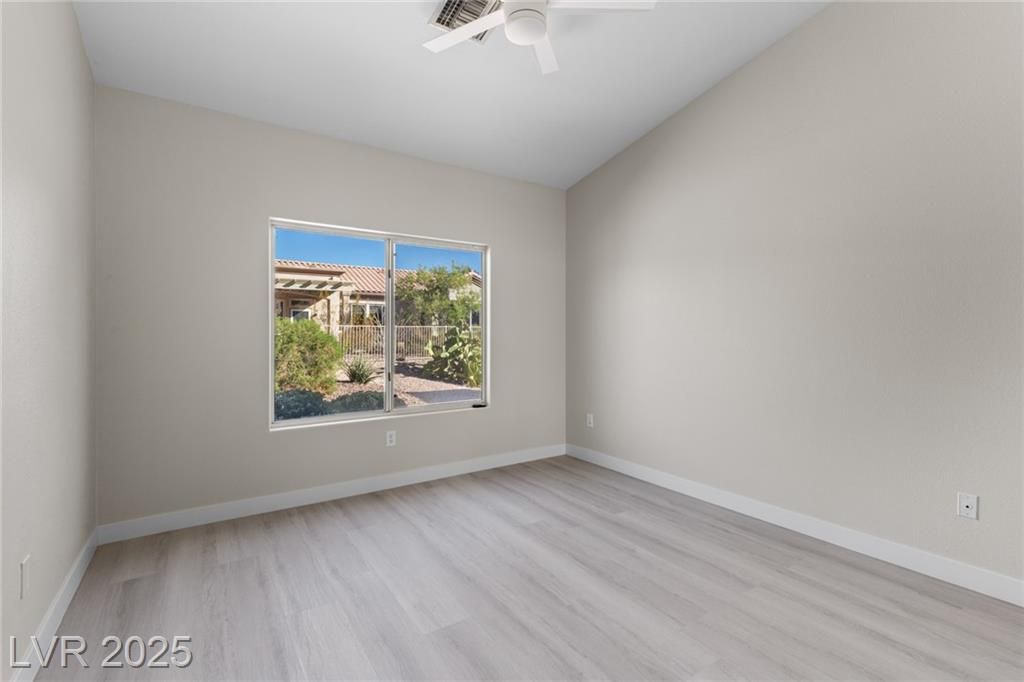 Beautifully renovated 2-bedroom, 2-bath home in the heart of Sun City Summerlin! This move-in ready gem is packed with upgrades, including luxury vinyl flooring and ceiling fans throughout. The modern kitchen boasts granite countertops, stainless steel appliances, and upgraded cabinetry. The spacious primary suite features mirrored closet doors, dual sinks, and a large walk-in shower. Enjoy the outdoors year-round with a covered patio, built-in BBQ, and low-maintenance landscaping—perfect for relaxing or entertaining. Located in a vibrant 55+ community with access to a pool, spa, fitness center, and more!