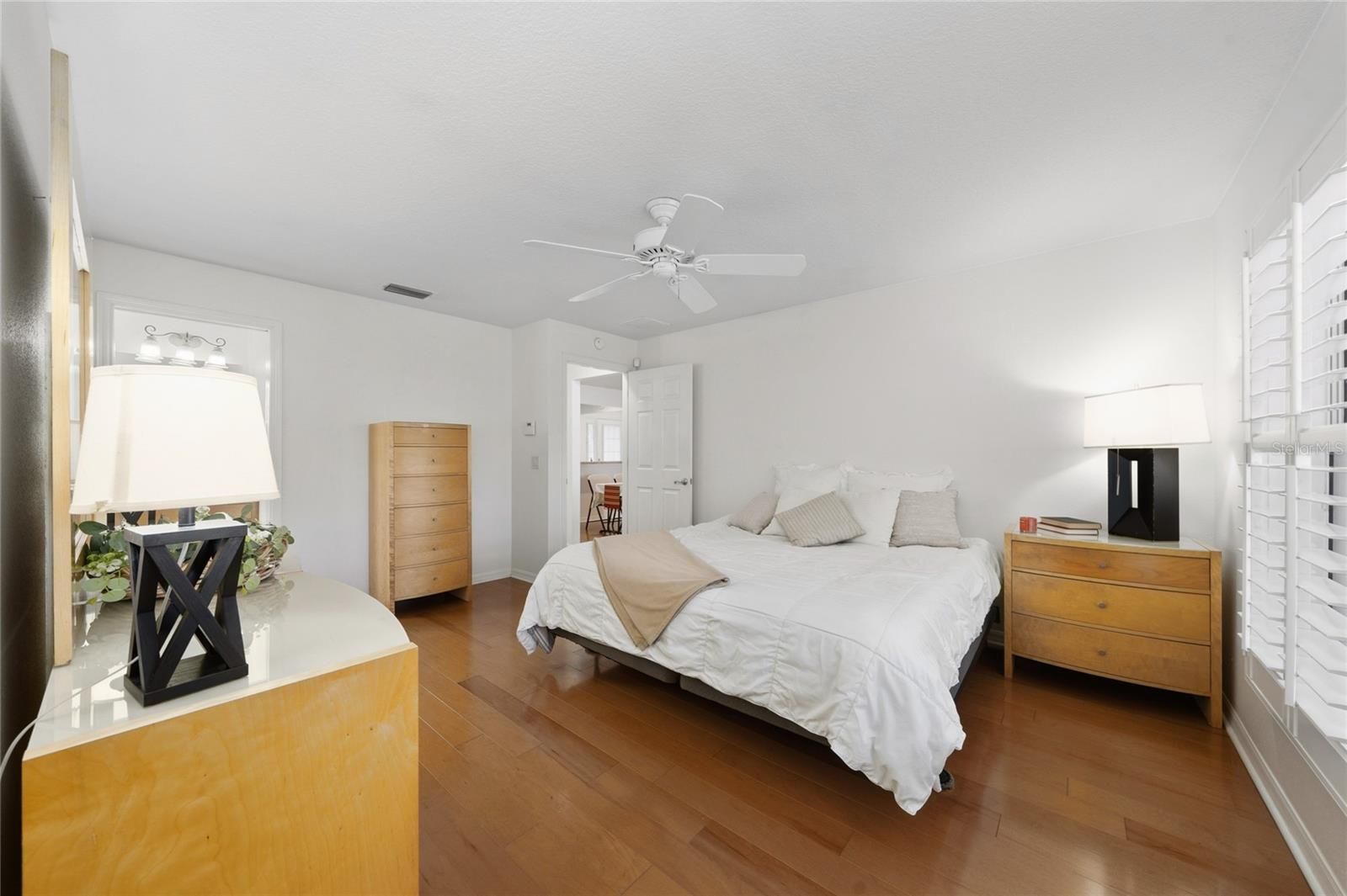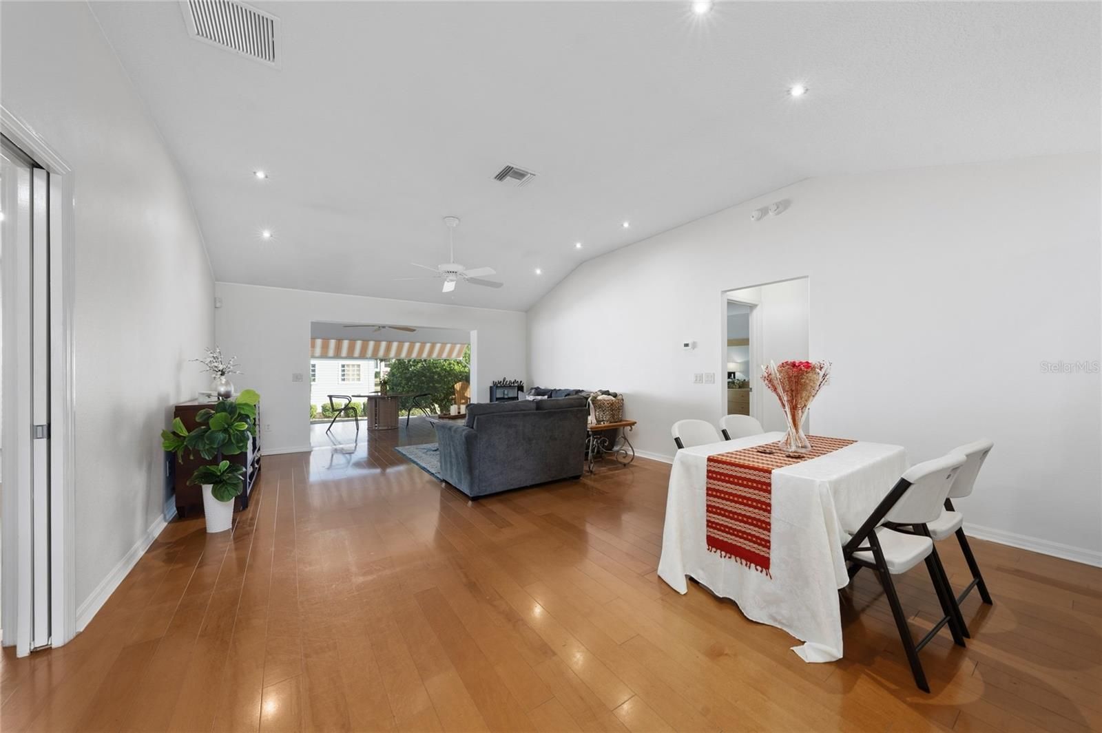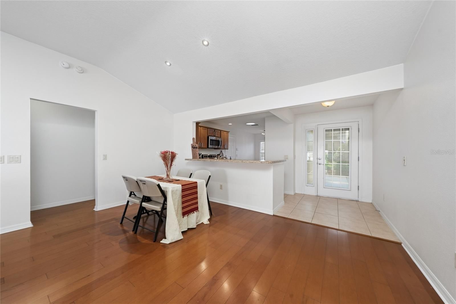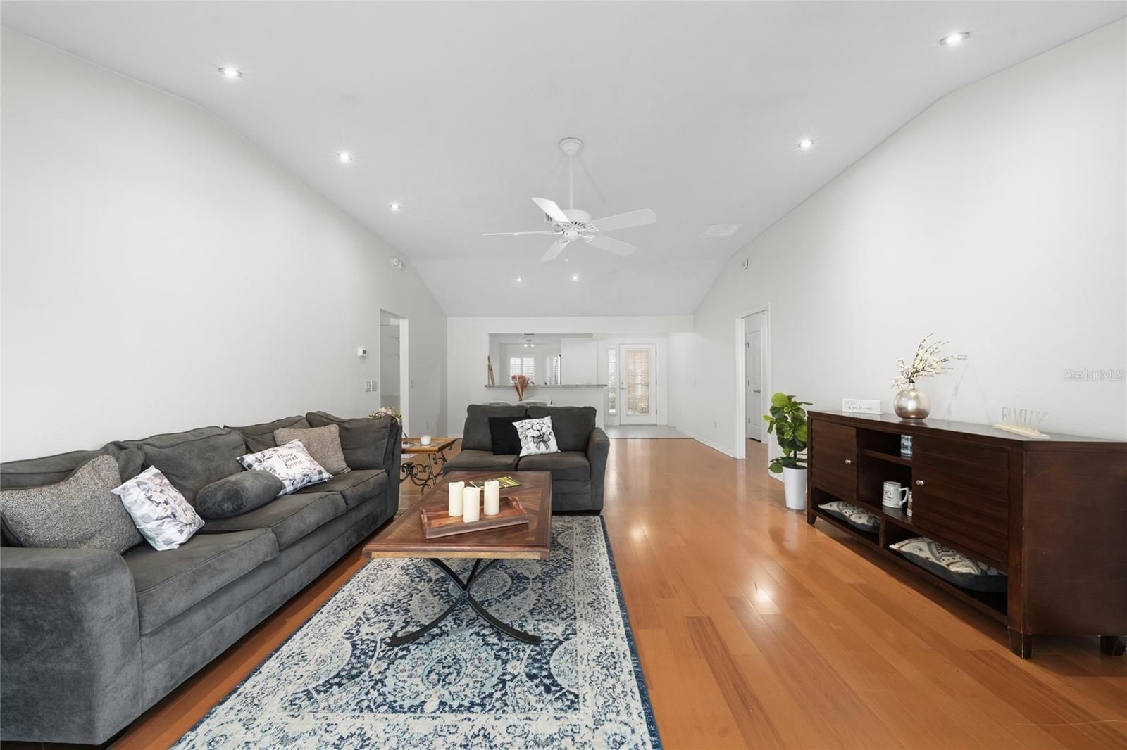 - Ceiling Fan(s), Eat-in Kitchen, High Ceilings, Living/Dining Room, Open Floorplan, Main Level Primary, Split Bedrooms, Thermostat, Vaulted Ceiling(s), Walk-In Closet(s), Window Treatments