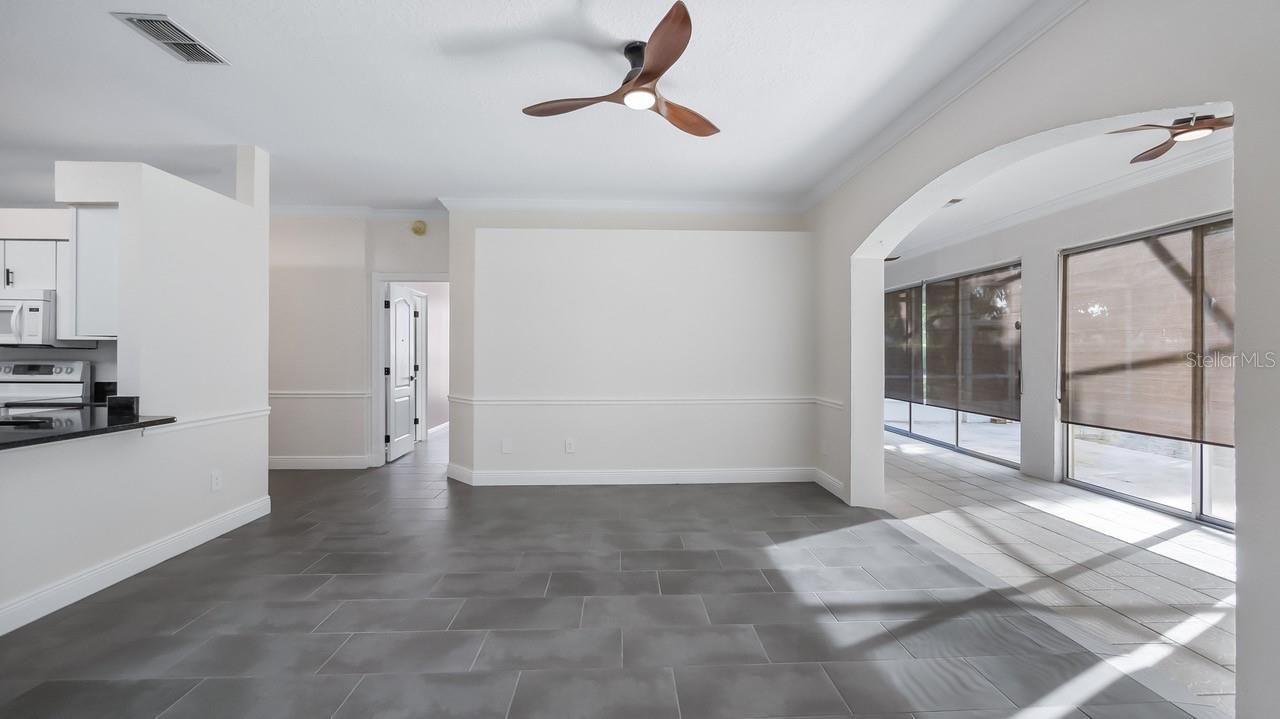 - Ceiling Fan(s), Chair Rail, Eat-in Kitchen, High Ceilings, Kitchen/Family Room Combo, Open Floorplan, Split Bedrooms, Stone Counters, Walk-In Closet(s), Window Treatments