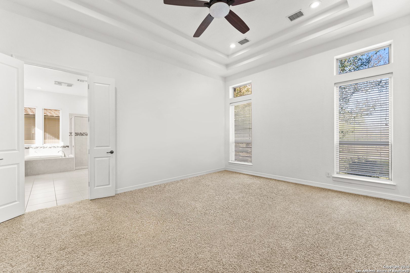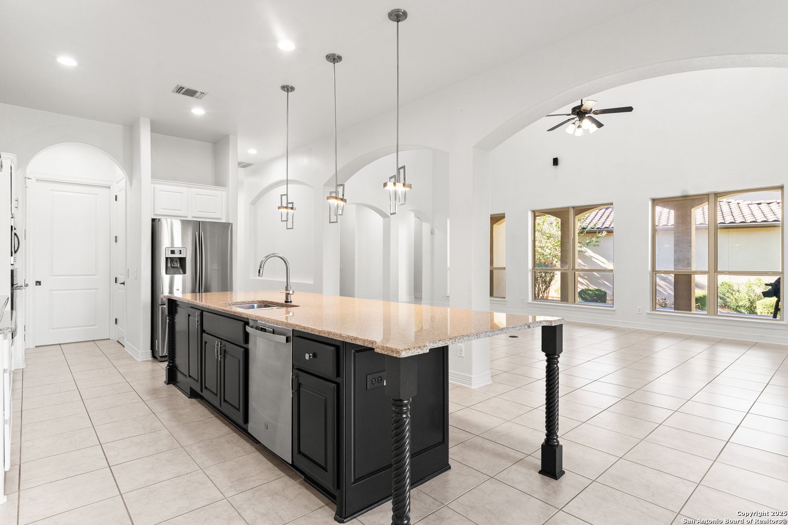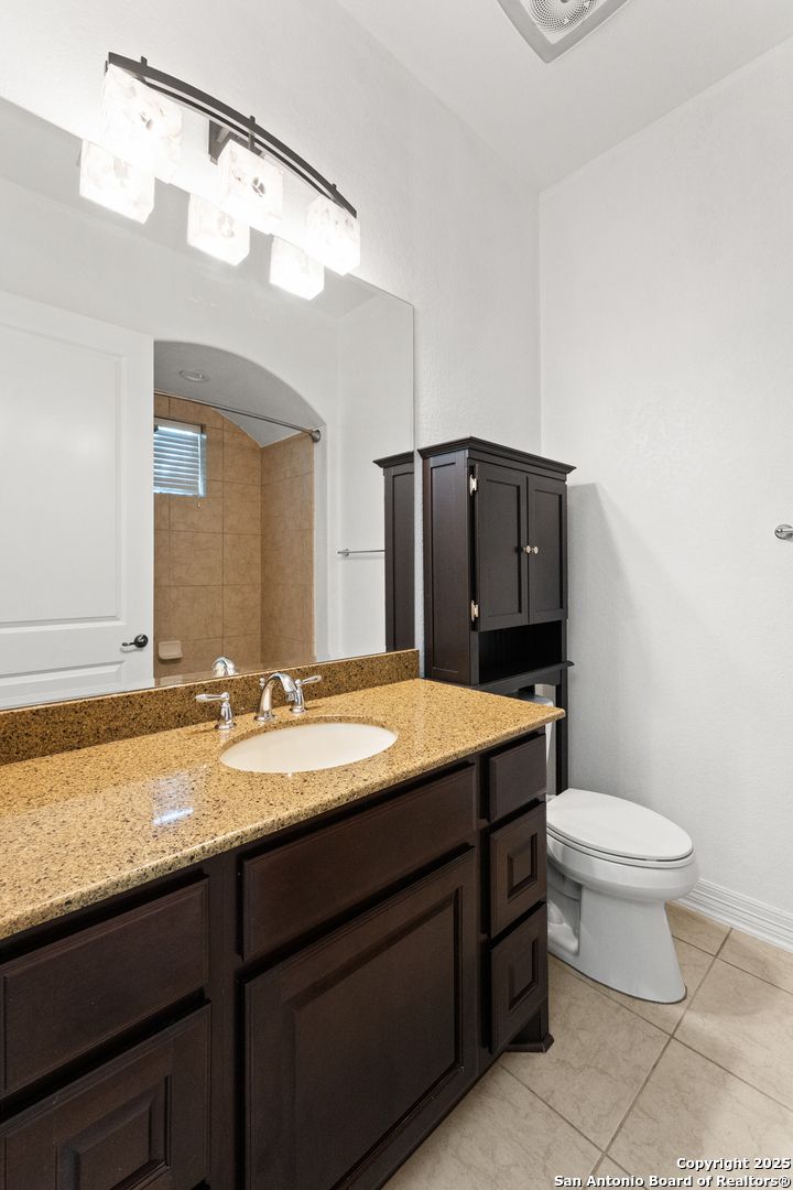 Nestled within the prestigious Campanas enclave of Cibolo Canyon's Resort Community, this immaculately maintained Mediterranean-style residence offers a refined blend of luxury, comfort, and resort living. Recently painted and immacutately maintained, this 3-bedroom, 2-bath home spans 2,354 sq.ft. of beautifully designed living space where architectural detail and natural light take center stage. From the moment you arrive, the home exudes timeless elegance and a sense of tranquility, perfectly complementing its greenbelt setting and serene surroundings. At the heart of the home, the kitchen is both striking and functional; designed for everyday living and effortless entertaining. It features stainless steel appliances, a gas cooktop, built-in oven and microwave, granite countertops, and tall cabinetry that has been recently refreshed with updated paint. A generously sized breakfast island anchors the space, offering ample seating and serving as the perfect gathering spot for hosting loved ones. Just beyond, the dining room overlooks the backyard and greenbelt, creating a peaceful backdrop. The living room is a true showstopper, thoughtfully architected with soaring ceilings, dramatic beams, graceful arches, custom nooks, and expansive windows that flood the space with natural light. This room effortlessly blends warmth and character, making it ideal for both intimate evenings and larger gatherings. The primary suite is a private retreat, designed to inspire relaxation with high ceilings, abundant natural light, and a calming atmosphere. The spa-like primary bathroom features dual vanities, a jetted soaking tub, a standalone easy-entry shower, a dedicated vanity station, and a spacious walk-in closet. Two additional bedrooms offer privacy, and flexibility for guests, family, or a home office, with convenient access to a well-appointed secondary bathroom. Both bathrooms have been enhanced with updated fixtures, including modern bluetooth exhaust fans. A recent addition, the side patio with durable vinyl decking, extends the living space outdoors and is ideal for entertaining, hosting, or simply relaxing while enjoying the peaceful surroundings. Living in Campanas means enjoying a low-maintenance lifestyle, with the HOA covering lawn maintenance and providing 24-hour security. Residents also enjoy exclusive access to three exceptional amenity centers featuring a lazy river, resort-style and junior Olympic lap pools, multiple playgrounds and playscapes, a kiddie splash area with beach entry, and a 9,000+ square-foot clubhouse. Additional highlights include a 24/7 fitness center, tennis and pickleball courts, a grand ballroom perfect for weddings and events, three fully equipped kitchens, a library, and a game room complete with poker tables, billiards, and a bar. Just minutes away, the JW Marriott Hill Country Resort offers PGA Tour TPC golf courses, a world-class spa, a nine-acre water park, and outstanding dining; all within Cibolo Canyons! Come experience 22450 Viajes, where luxury living meets an unparalleled resort lifestyle.