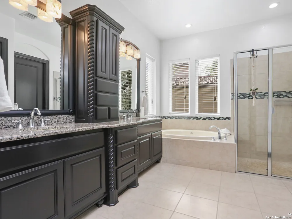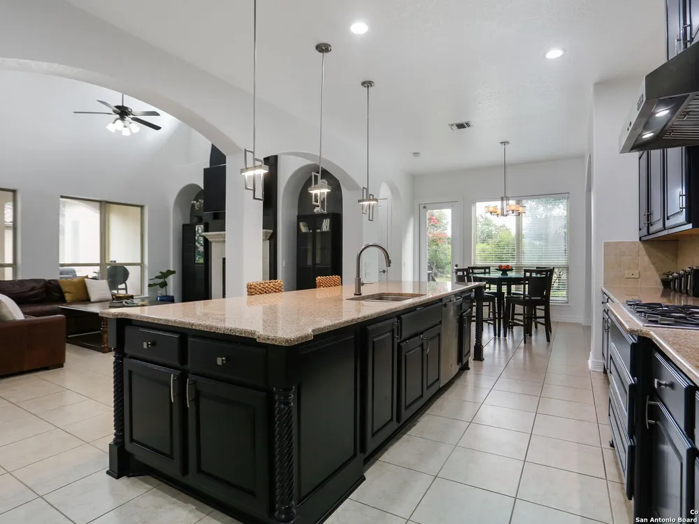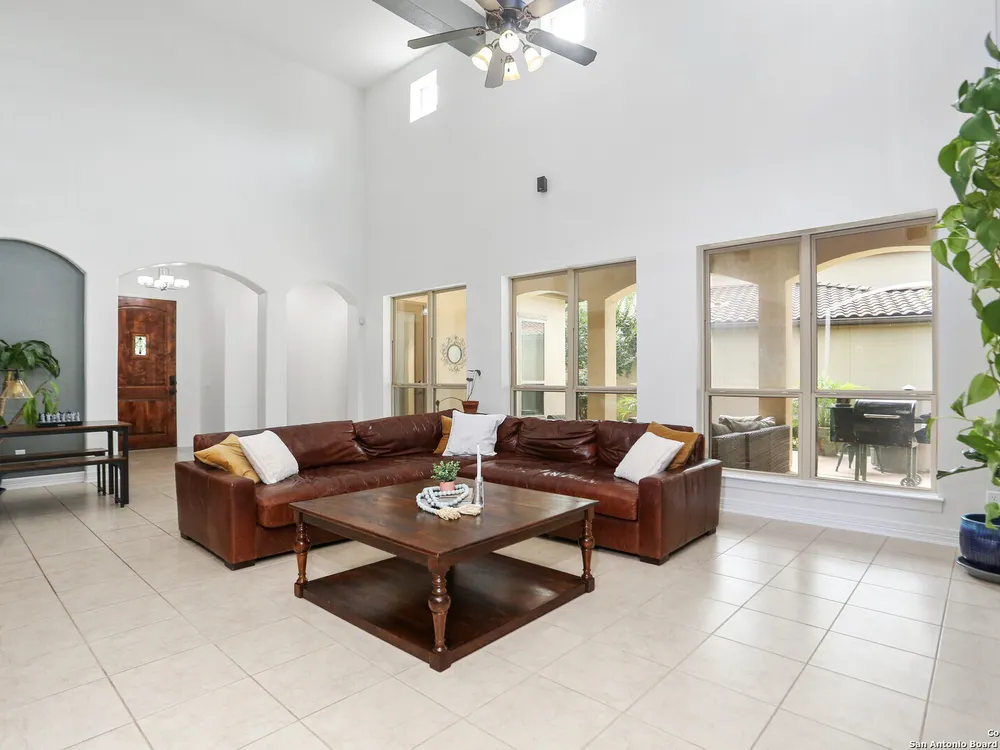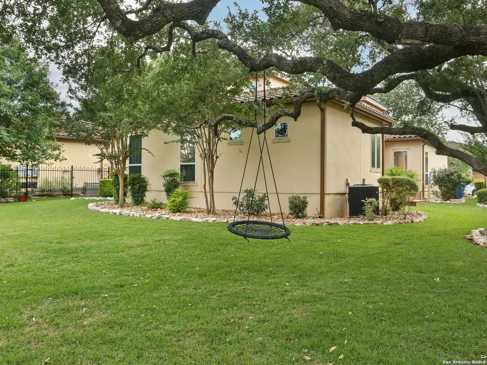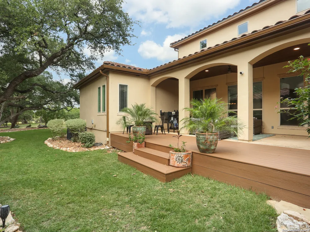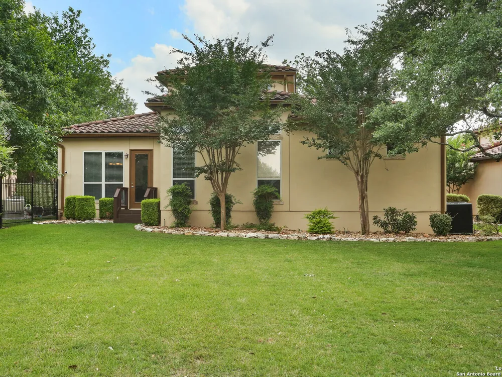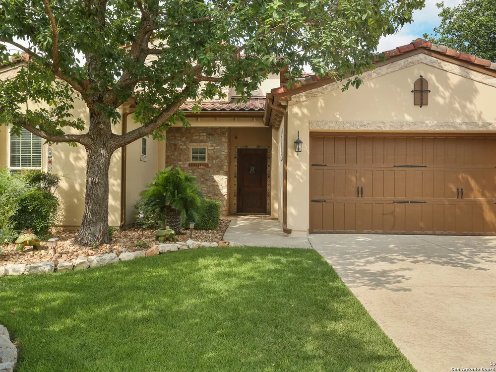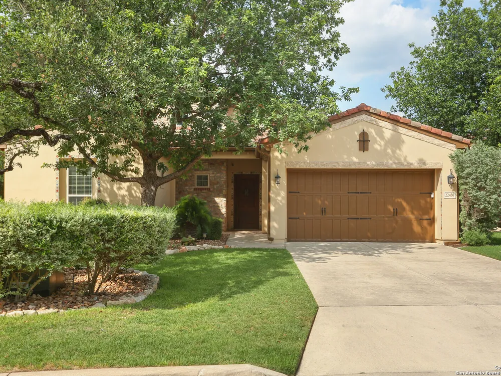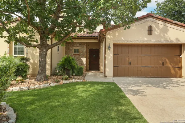 OPEN HOUSE Sept 14th from 2-4PM Welcome to resort style living at Campanas. Residents amenities include HOA-covered lawn care, security monitoring, and exterior maintenance. There is a private clubhouse with a gym, ballroom, library, game rooms, bar, and multiple pools. This stunning Mediterranean style, one-story home, features 3 bedrooms and 2 bath has been freshly painted. Upon entry, you are welcomed by the open layout with 20 foot ceilings and natural lighting. The chef's kitchen overlooks the living room and features stainless steel appliances, including gas cooking and granite counter tops. Retreat to the primary suite which features an extra large walk-in closet, double vanity, jetted tub and walk in shower. Enjoy quiet evenings on the covered back porch. Set on .29 of an acre, the property offers plenty of space for indoor and outdoor entertaining and room for a pool. This home is perfect for the family that is just starting out or the family that is down sizing. The neighbors are amazing here. Washer, dryer, refrigerator, and Level 2 EV charger all convey. Just minutes from shopping, dining, golfing and the JW Marriott. Other neighborhood amenities include, tennis, pickleball, outdoor kitchens, and fire pits. Plus, you'll have access to Cibolo Canyons' additional pools, fitness centers, lazy river, and walking and trails. Easy, upscale living in a home that's ready when you are. Amazing charter and private schools nearby.