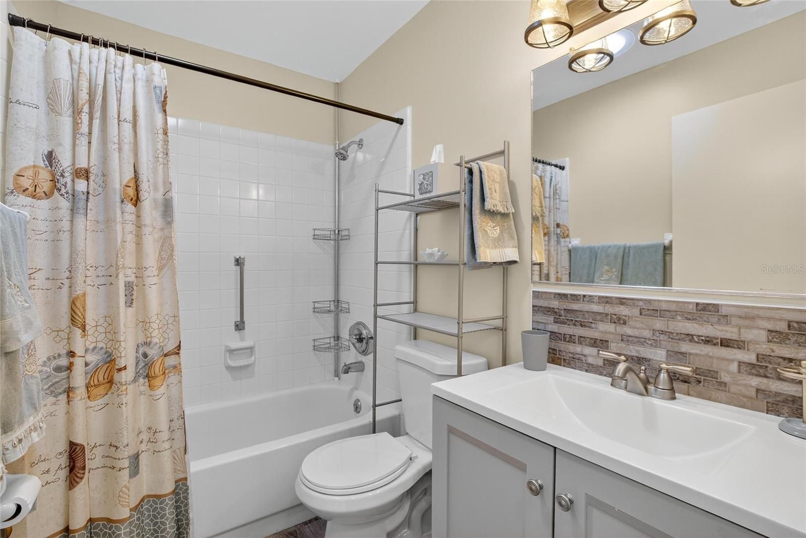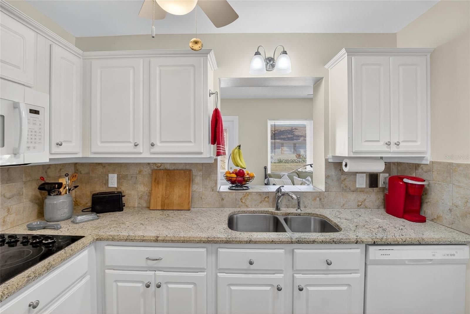 This furnished condo is located in Kings Point, an active adult retirement community where your monthly fees covers so many things you have little to worry about. The home is a 2 bed and 2 full bath home with your 2 parking spaces right out your front door. You'll walk into the living and dining room space with the remodeled kitchen with granite tops has everything you need. The hallway takes you to both baths where the vanities have been replaced with modern ones and all the flooring is laminate for easy cleaning. The lanai in open to the home and has glass windows so it's an office or hobby area year round. The laundry room is big enough for your golf cart, bikes and beach gear. The home is close to the North Clubhouse where you'll find 2 pools, fitness, the theater, spa and more. The ride your golf cart to the South Club for more amenities or just ride around and bird watch at the ponds. We are close to 3 airports, multiple beaches and lots of entertainment all while having enough to do in your own back yard.