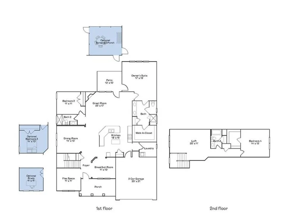This new two-story Felicity floorplan has everything you need — indoors and out. The first floor features a formal living and dining room to complement a casual family room and breakfast room, plus a modern kitchen, an inviting patio, a secondary bedroom and a luxe owner's suite. Upstairs are a versatile loft and an additional secondary bedroom. Plus, our signature Everything's Included program means you will get a gourmet kitchen with double ovens and cooktop, quartz or granite kitchen countertops, subway tile backsplash, ceramic tile, luxury vinyl plank flooring throughout the home, and a gas fireplace (per plan). Roselyn is a master-planned community offering exclusive ranch homes designed for active adults! This community features an experienced lifestyle team and future resort-style amenities including a swimming pool, clubhouse, pickleball courts, fitness, tennis, bocce and multi-use trails connecting to the Carolina Thread Trail.