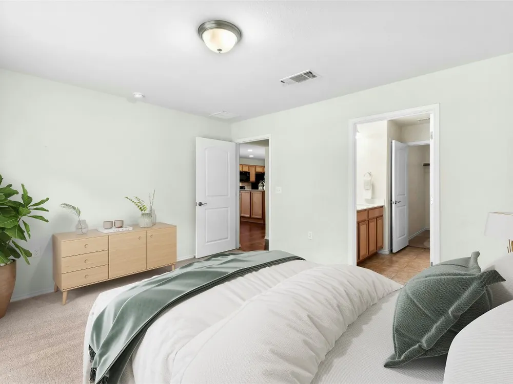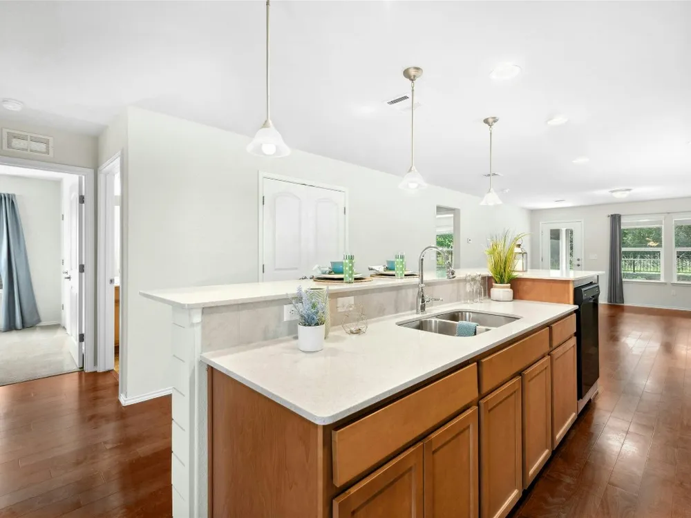 - Breakfast Bar, Ceiling Fan(s), Separate/Formal Dining Room, Double Vanity, Kitchen Island, Multiple Dining Areas, Main Level Primary, NoInteriorSteps, Open Floorplan, Pantry, Quartz Countertops, Recessed Lighting, Walk-In Closet(s)