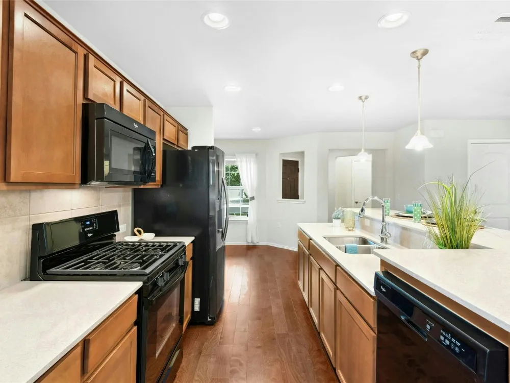 - Dishwasher, Disposal, Gas Range, Gas Water Heater, Microwave, Oven, Vented Exhaust Fan
