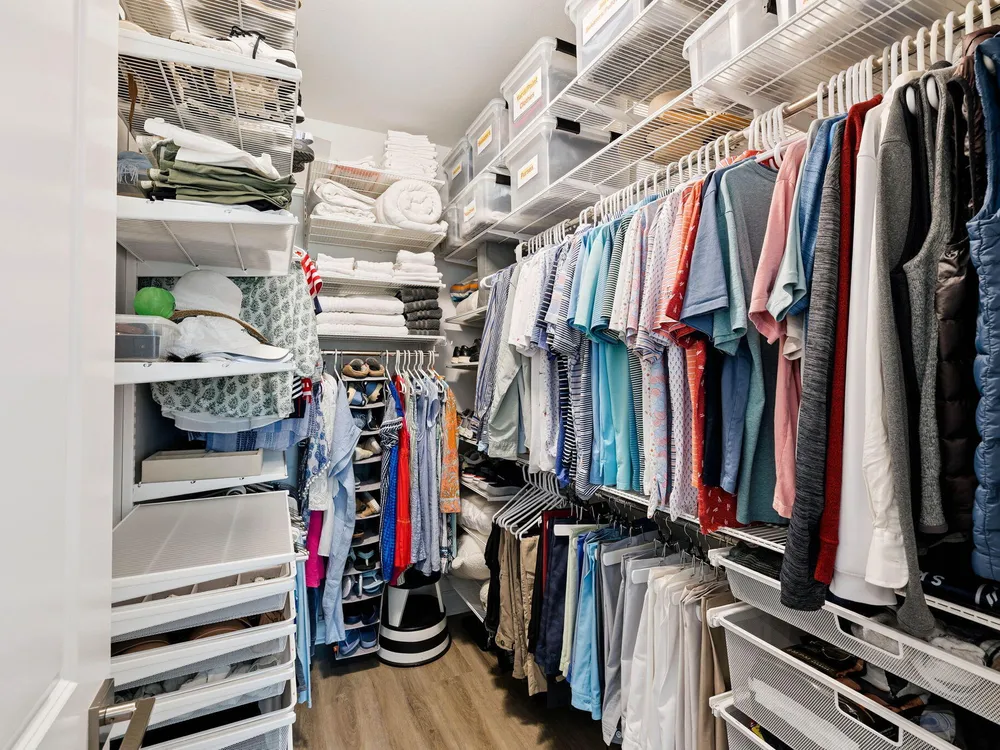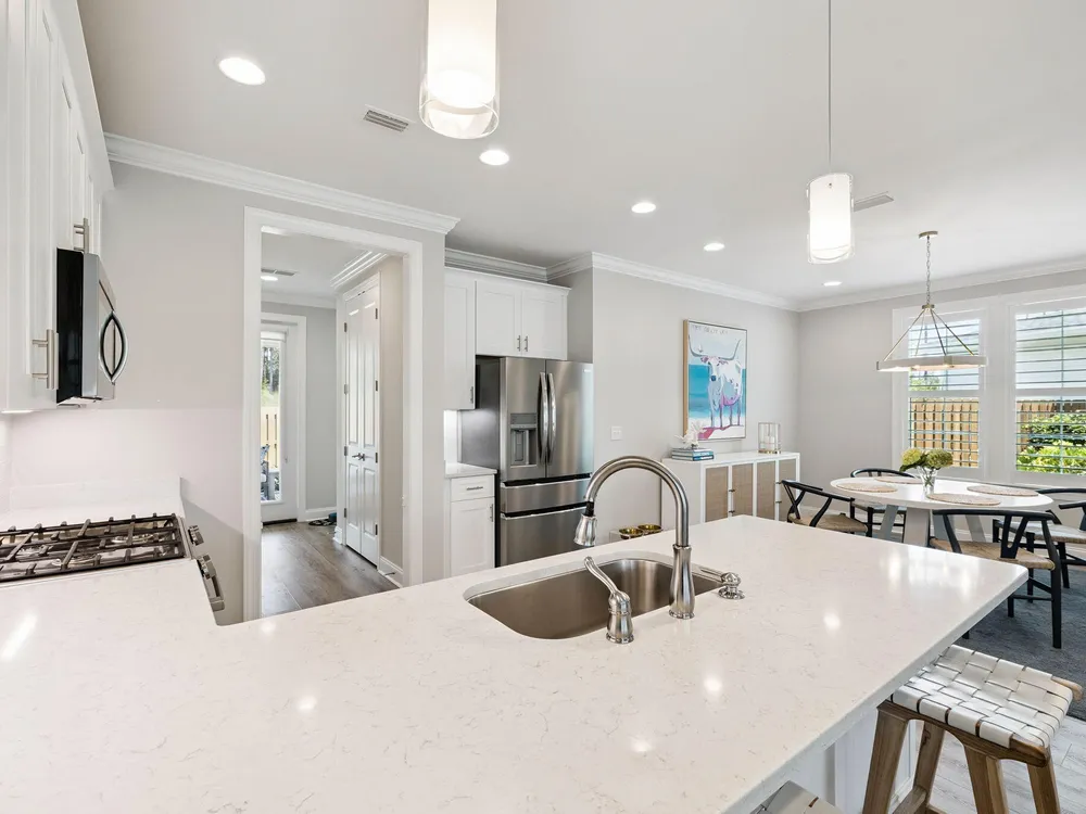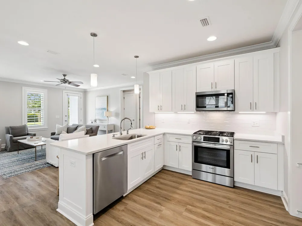 Charming Single-Level Beach Home in Watersound Origins This beautifully maintained Adams Plan by Huff Homes offers 3 bedrooms, 2 bathrooms, and desirable one-story living with an open-concept layout and 9' ceilings. The spacious living room flows seamlessly into a separate dining area and a thoughtfully designed kitchen featuring quartz countertops, Bosch stainless steel dishwasher, new refrigerator with convertible drawer, gas range, and a new Whirlpool microwave. Organization is a breeze with REVA-A-SHELF cabinet drawers, hidden trash storage, and a pantry outfitted with ELFA adjustable shelving--even on the doors.The primary suite is privately positioned in the back corner with a large walk-in closet enhanced by an ELFA wire shelving