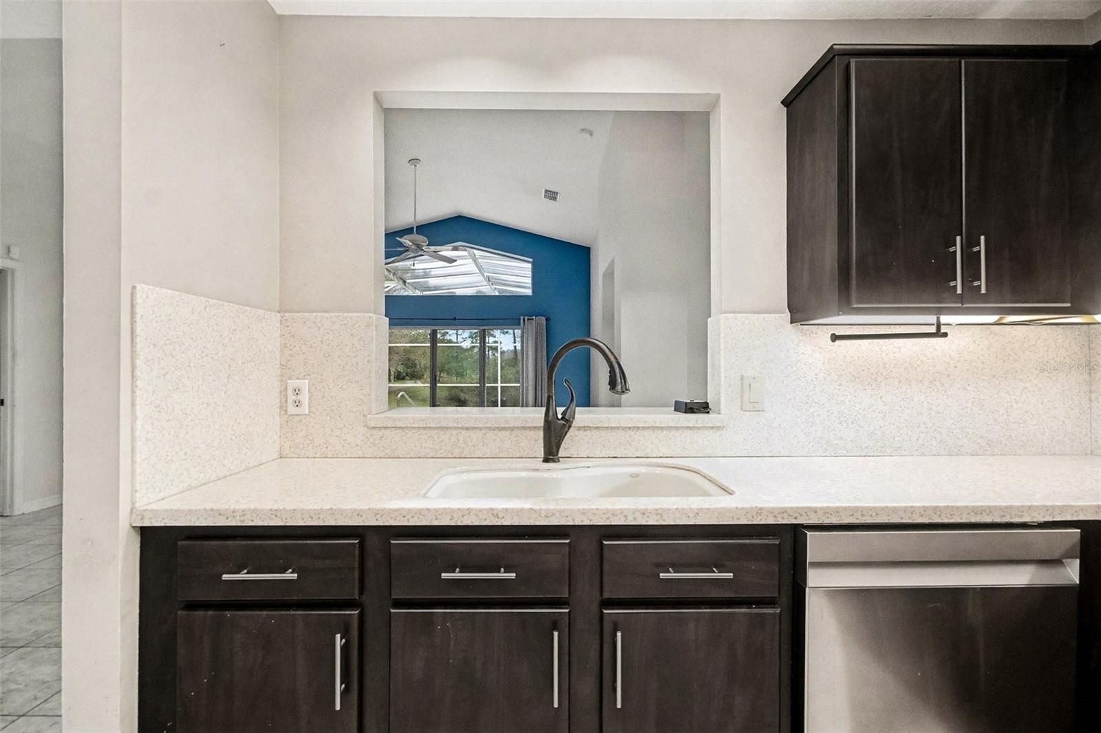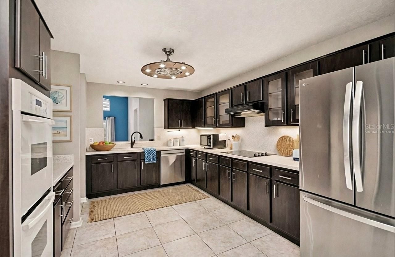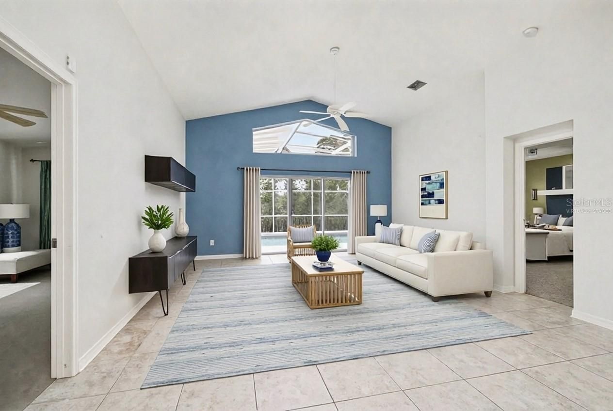 One or more photo(s) has been virtually staged. DISCOVER THIS BEAUTIFUL POOL HOME IN THE COUNTRY CLUB OF MOUNT DORA, PERFECTLY POSITIONED ON A POND WITH PEACEFUL CONSERVATION VIEWS AND NO REAR NEIGHBORS! This spacious 3-bedroom, 2-bath residence offers vaulted ceilings, tile flooring in the main living areas and owner's suite, plantation shutters, and a bright, open layout. The upgraded kitchen features solid-surface counters, double ovens, a built-in wine rack, a cozy breakfast nook, a counter-depth stainless steel refrigerator (2023), new dishwasher (2024), and overlooks the great room with triple sliders framing the sparkling pool and serene pond setting. The owner's suite includes sliders to the pool, dual closets, and a large en-suite bath with dual vanities and walk-in shower. One guest room offers a Murphy bed and direct pool access—perfect for guests or a flexible office space. Additional upgrades include brand-new washer and dryer (2024), water heater (2023), and pool pump (2024). Enjoy the oversized garage with a separate golf cart bay, fresh interior touches, and new bedroom carpet. The Country Club community also provides 24/7 security for added peace of mind, along with optional golf, pickleball, tennis, and social activities. Conveniently located near Historic Downtown Mount Dora's charming shops and restaurants—this gem is expected to go fast. Schedule your tour today!