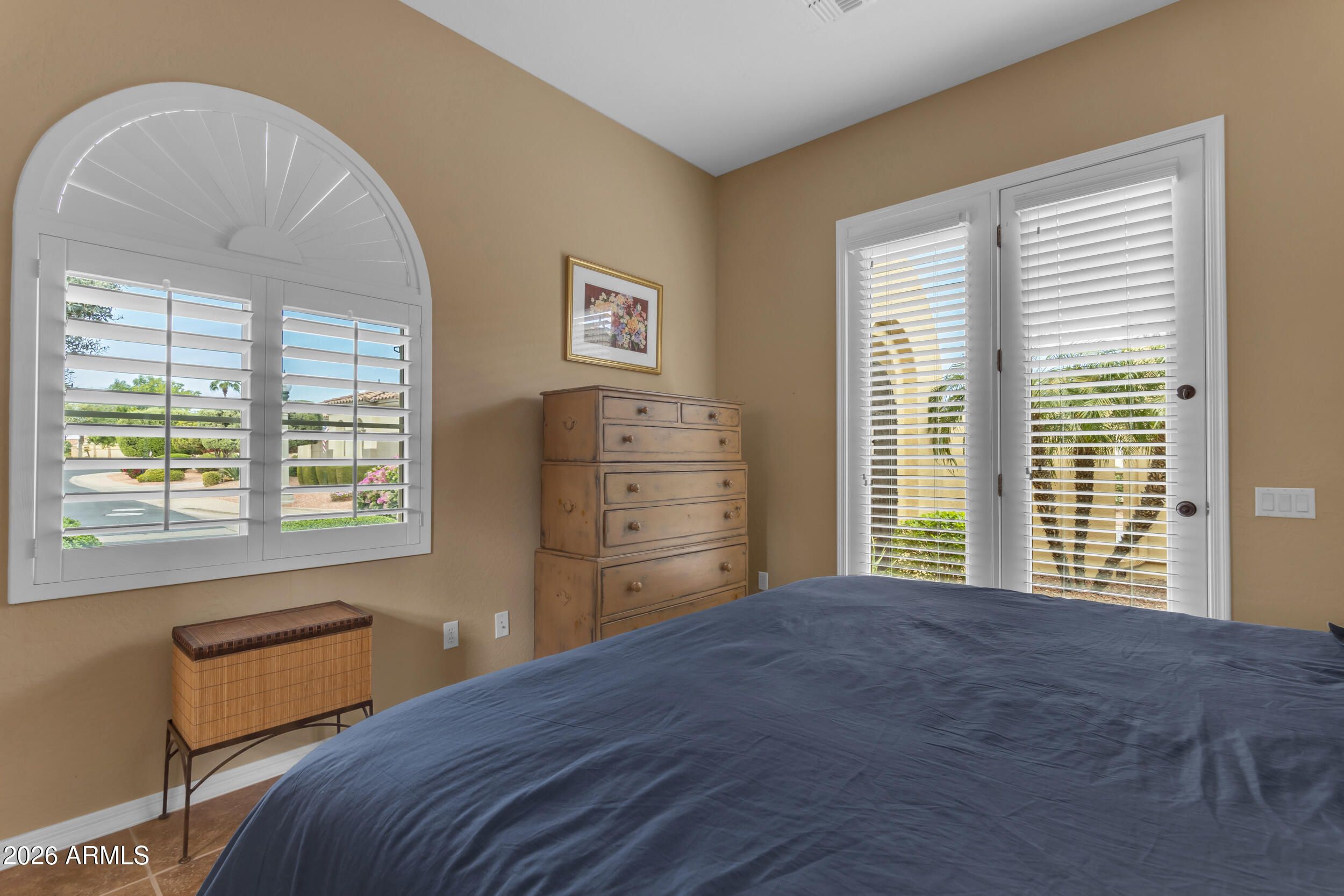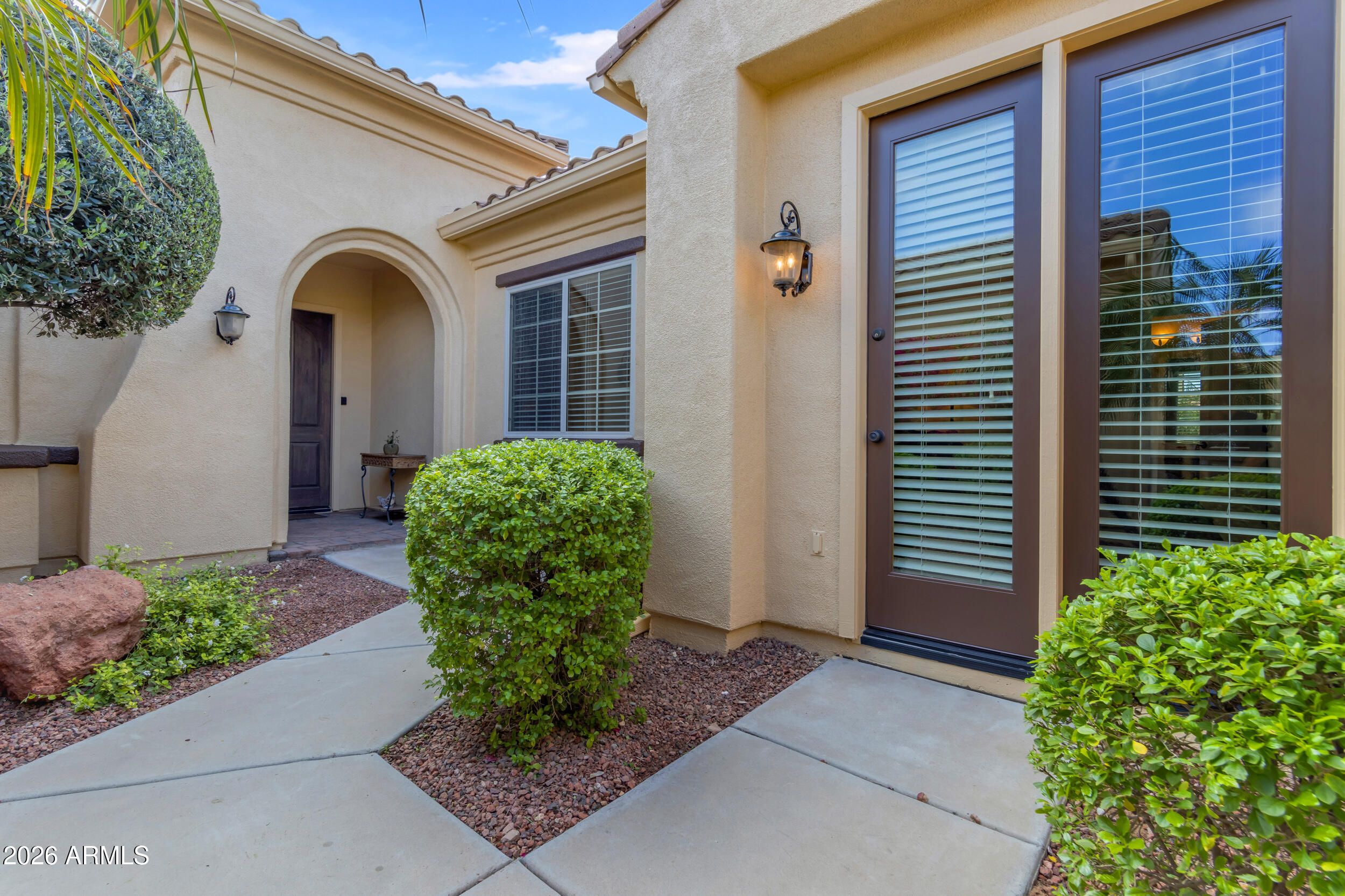 Experience resort-style living in this beautifully appointed, freshly painted Mirada with Casita, perfectly positioned on the par 5, 5th hole with sweeping fairway views. A charming private front courtyard sets the tone, featuring a detached guest casita ideal for visitors, extended family, or a quiet hobby space. Inside, the heart of the home is the spacious kitchen with a sunny breakfast nook, walk-in pantry, and effortless connection to the dining area and great room. Expansive picture windows frame the lush golf course backdrop, filling the home with natural light and creating a seamless indoor-outdoor feel. The extended primary suite offers a peaceful retreat with plenty of room to unwind. Outside, the east-facing, full-length covered patio is perfectly oriented for morning sun and cool afternoon shade--complete with a built-in BBQ that makes entertaining easy. Guests will appreciate the private entrance and walk-in shower in the casita, while the extended-length garage with built-in cabinetry provides abundant storage and space for a golf cart. A well-designed laundry room with cabinets and a utility sink adds everyday convenience. A rare combination of comfort, privacy, and golf course beauty--this home is ready to enjoy.