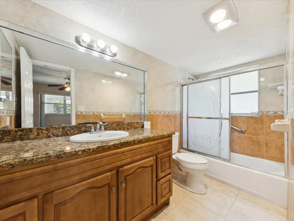 MOVE RIGHT IN! The unit is in turnkey condition. SELLERS ARE OFFERING $5000 CONCESSION AT FULL PRICE TO HELP WITH BUYERS' CLOSING COSTS. The Kitchen is updated with Granite counter Top. Large Master Bedroom. The asking Price and HOA Fee are low when compared to other communities. This excellent corner unit features a private front and back entrances. Unit is spacious and bright and has a Porch for relaxation and storage. 1st Floor Unit located in a quiet 55+ community. HOA amenities include Entertainment, Building Insurance and Utility Bill such as a gym, billiards room, movie theater, bowling alley, courtesy bus, Water and more.