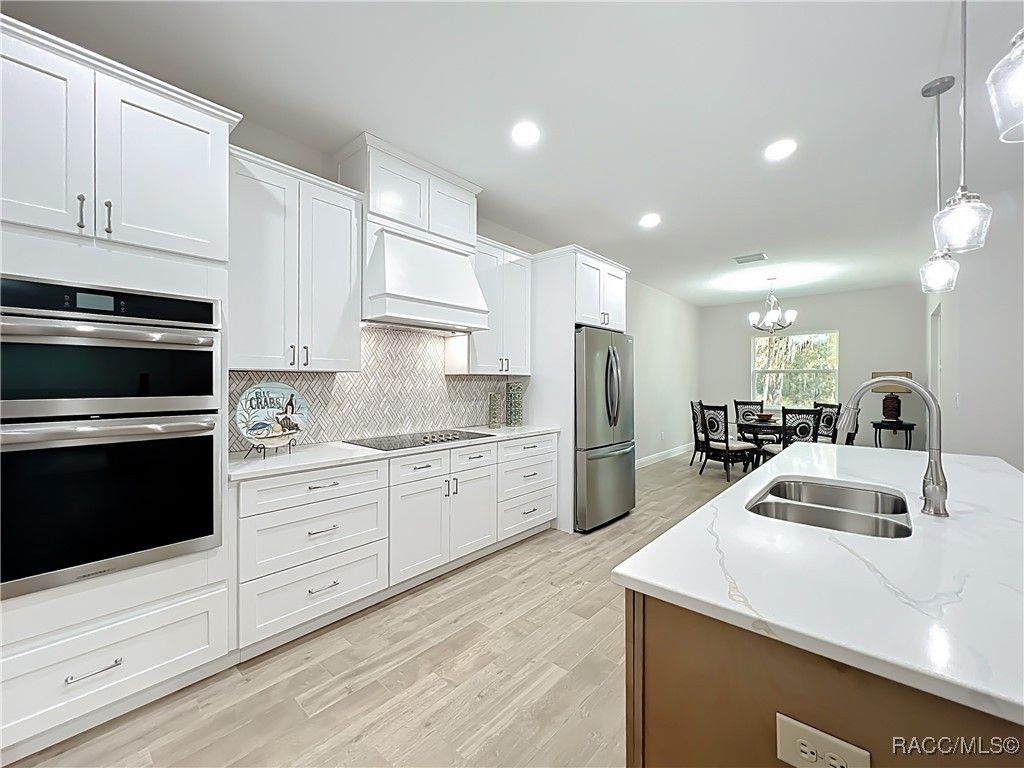 NOW AVAILABLE — Heritage’s Newest Gem Be among the first to tour this impeccably finished new home in Heritage, the jewel of Citrus County. This small, gated community offers oversized lots, mature trees, and a peaceful country atmosphere — all while placing you minutes from shopping, dining, and healthcare. A Grand Welcome Tucked into a picturesque, wooded landscape, this home greets you with a spacious foyer and open-concept living. Ceramic tile runs throughout for easy maintenance and timeless style. Immediately to the right sits a bright den with a closet — ideal for an office or guest room. Spacious Living & Entertaining The main living area features a soaring tray ceiling, flowing into two secondary bedrooms with walk-in closets and a shared full bath. Natural light pours through large windows, creating a warm, welcoming feel. Chef’s Kitchen with Smart Design A stylish kitchen showcases sleek white cabinetry, built-in oven and microwave, a cooktop, and gleaming quartz countertops on both the perimeter and island. Around the corner, a utility room with extra cabinetry, washer/dryer hookups, and an oversized, naturally lit pantry keeps life organized. From here you’ll access the garage — home to a gas water heater that helps trim your energy costs. Owner’s Retreat The private master suite boasts its own tray ceiling, abundant natural light, two walk-in closets, and a luxurious bath designed for comfort and relaxation. Life at Heritage Heritage blends the quiet of the country with in-town convenience. Publix is right across the street, and Tampa General Hospital’s ER is just a half-mile away. Hop on your golf cart to Heritage Plaza for coffee at Cattle Dog Roasters, a vet visit for your pet, a nail appointment, or a quick wine-and-pizza pickup on your way home. Schedule Your Showing Today Come see why Heritage is one of Citrus County’s most sought-after communities — and why this new home won’t stay on the market long.