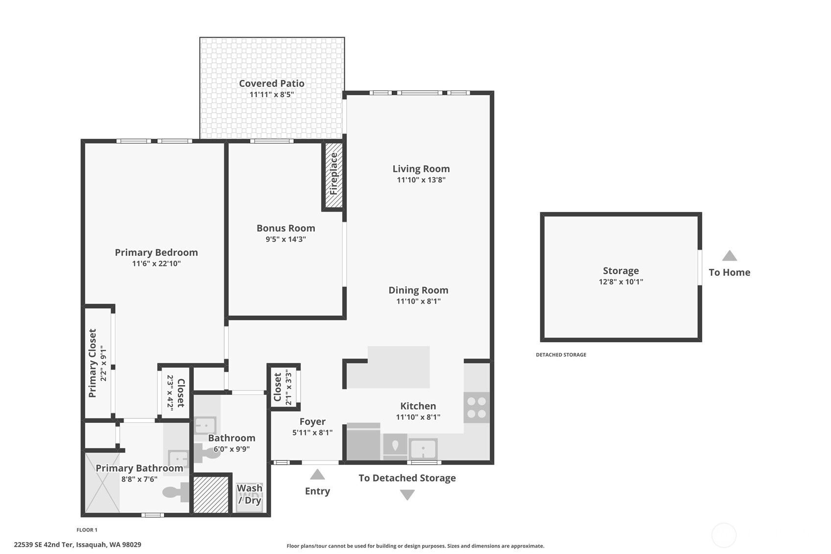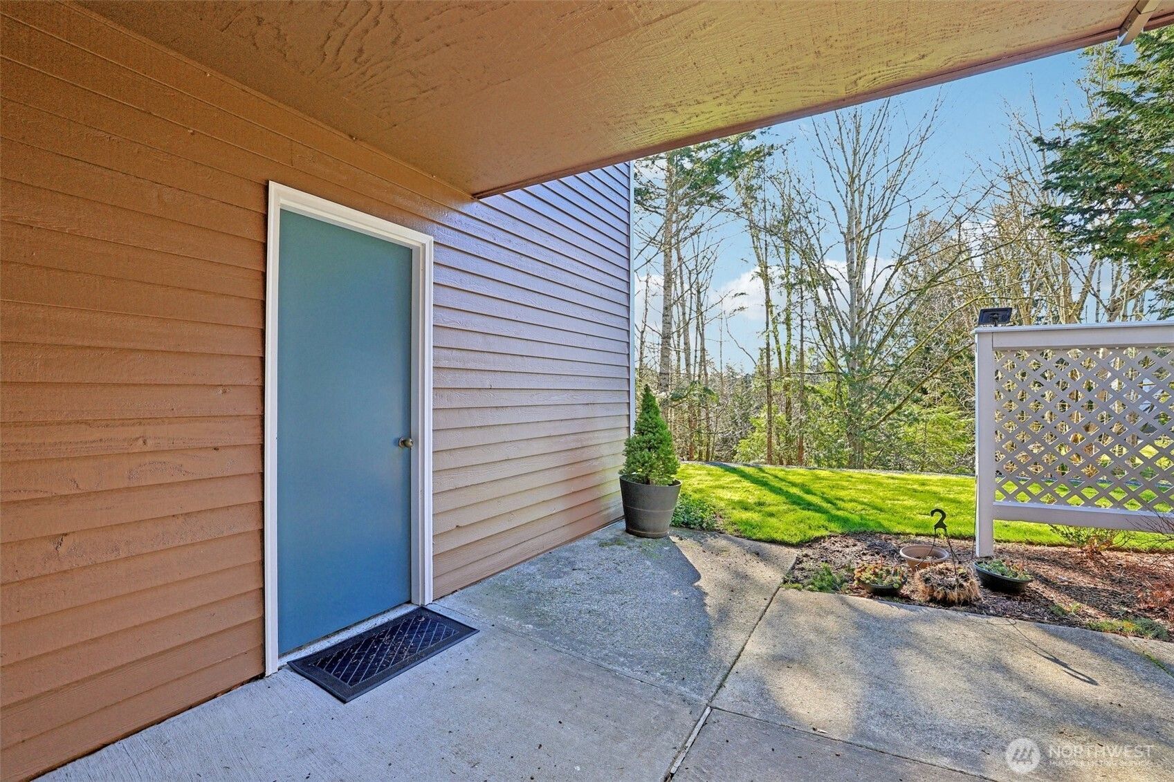 Discover your ideal 1-bedroom with den, lower corner, 1 level condo, in Hilltop Village at Providence Point! This updated gem features a spacious primary bedroom with an ensuite bathroom and dual closets, plus a convenient half bath in the hallway. French glass doors lead to a cozy office, while a wood-burning fireplace adds warmth to the living area. Enjoy the modern kitchen with stainless steel appliances, quartz countertops, and newer cabinets. Step out to your private patio with easy access to community trails, tennis and pickleball courts, and the clubhouse featuring an indoor pool and gym. Additional perks include a large private storage room just outside your door, easy access to a private 1-car garage, and ample guest parking. Experience 24/7 security in this vibrant 55+ gated community, complete with 161 acres of groomed trails, lighted sidewalks, and a range of social activities. Embrace an active lifestyle with opportunities for friendships and cultural events in nearby downtown Issaquah. Don't miss this chance to make this welcoming condo your new home!