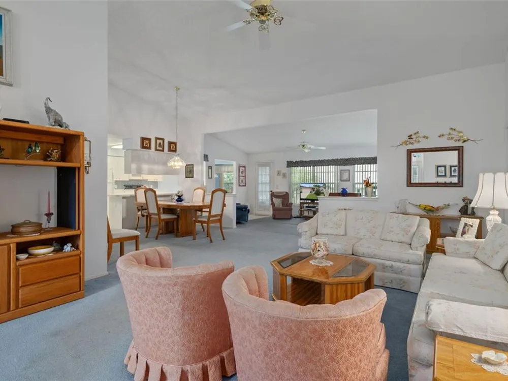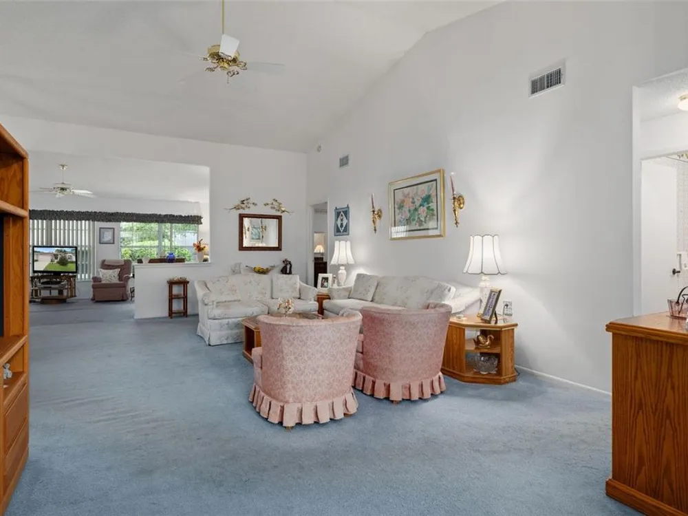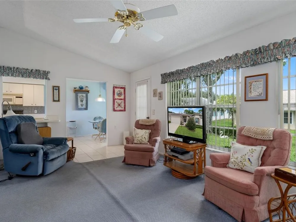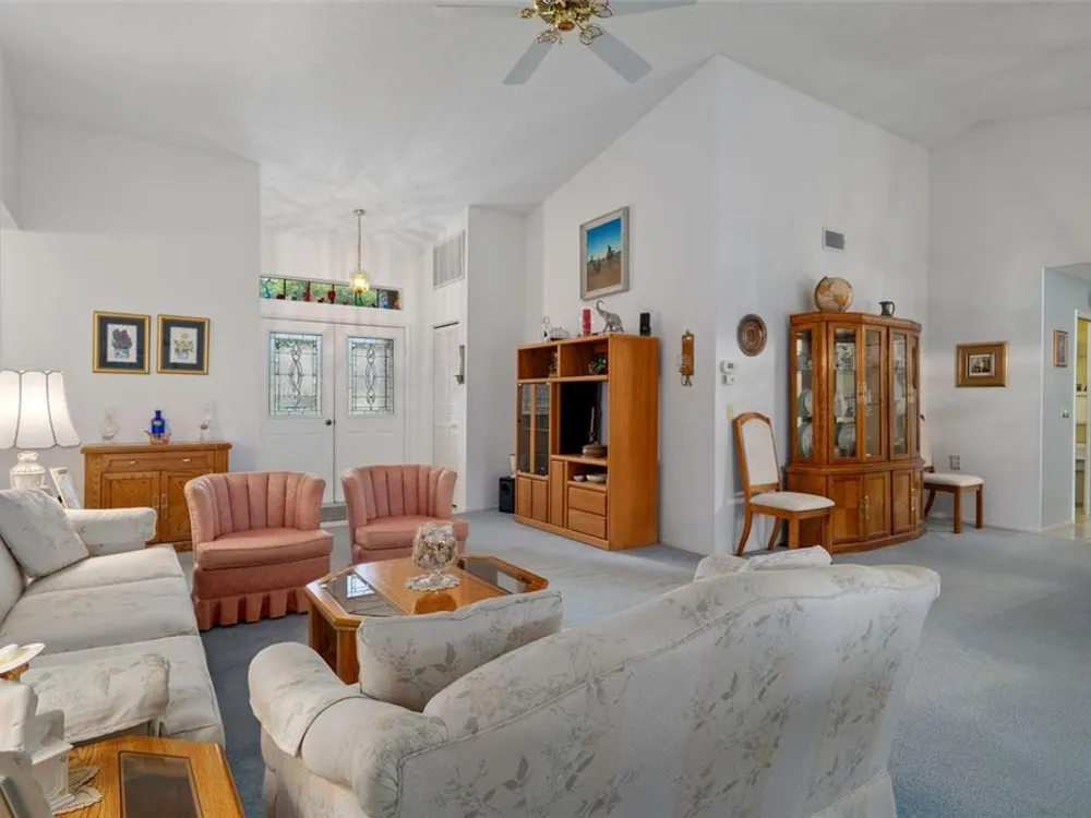Welcome to this expanded Oakmont Villa offering great potential and ready for your personal touch! This spacious 2-bedroom, 2-bath home with a 2-car garage features cathedral ceilings in the main living areas, creating an open and airy feel throughout. The home’s solid structure includes a roof replaced in 2012 and HVAC system updated in 2010, giving you a strong foundation to build upon. Whether you're looking to customize your dream retirement retreat or invest in a home with great bones, this villa is a fantastic opportunity. Don’t miss your chance to make it your own! Timber Pines is an award winning, 55+ Active Adult Gated Community with 4 golf courses, 2 pools & hot tubs, Country Club, restaurant and lounge, Performing Arts Center, 2 Pro Shops, 12 newer, state-of-the-art Pickle Ball Courts, Tennis, 2 Dog Parks, and a State-of-the-Art Wellness Center & Fitness Center & over 100 clubs, and activities. A one time, $2,900 Buyer’s Capital Contribution, is due at closing. Not a Dog friendly village. Can be sold furnished or unfirnished at Buyer's option.