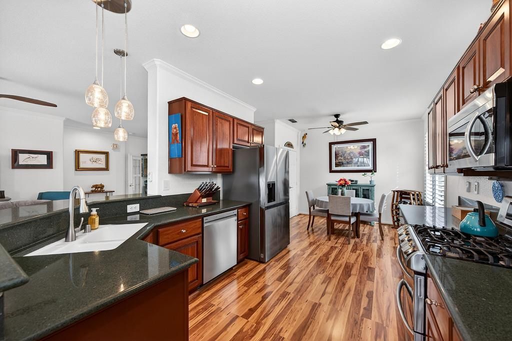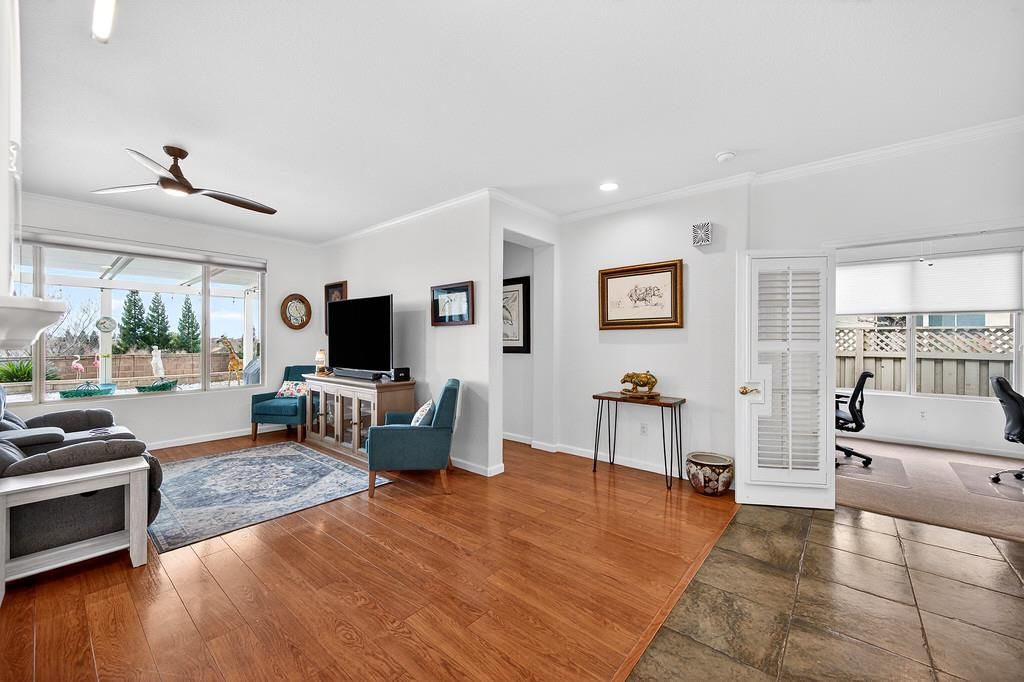 Highly desirable Lassen model located in the premier 55+ community of Sun City Lincoln Hills. This thoughtfully designed home offers 2 bedrooms, 2 full bathrooms, plus a den ideal for a home office, hobby room, or guest space. Enjoy newer carpeting, elegant plantation shutters, and updated kitchen appliances, all within a bright, open floor plan that's perfect for relaxed living and effortless entertaining. The finished garage features durable epoxy flooring and an abundance of cabinets, providing exceptional storage and organization. Experience resort style living with access to world class amenities, scenic trails, golf, and an active lifestyle that makes Sun City Lincoln Hills so highly sought after.