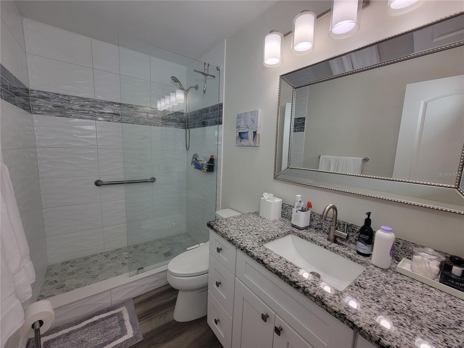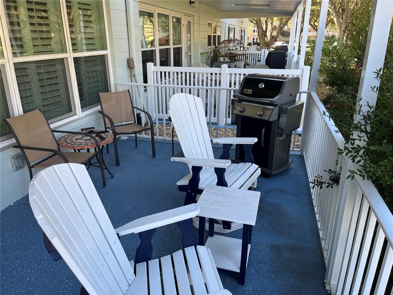Stylish and well-appointed first-floor 2BR/2BA condo offering 1,400 SF of easy living. Thoughtfully updated with impact windows with shutters, a covered fenced in rear patio, newer HVAC, refreshed kitchen and baths, and modern flooring throughout. Light, open, and inviting with a seamless flow, a comfortable retreat that's truly move-in ready. Assigned parking. The 55+ community has two activity centers, and two private golf courses with 9 and 18 holes, free exclusively for resident owners. There are two heated swimming pools. The remodeled Cardio Gym has the latest exercise equipment. A very pet-friendly community, there is a fenced dog park with covered seating. There are hobby studios, and a wood shop for the exclusive use of the residents. Activities include fitness classes, dancing, clubs, cards, billiards, entertainment, classes, and much more. The on-site Good Karma Café has take & bake meals and snacks. Close to beaches, transportation, shopping, entertainment, and fine dining. All room sizes, floor plans and square footage are approximate. This property is being transferred by a leasehold estate deed. Association approval is required. If financing, a 35% down payment is required.