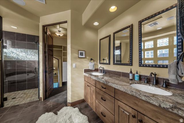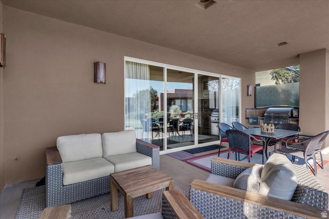 Located within Paiute Springs, a gated community within Entrada. This exceptional 2011 Parade Home offers refined desert luxury and thoughtful design throughout. Each bedroom features its own private bath, providing comfort and privacy for guests. The gourmet kitchen is equipped with Bosch appliances, granite countertop, large island and custom cabinetry. Additional upgrades include 12 skylights, custom wood shutters, solid core 8 ft doors, an integrated audio surround system and central vacuum. Newer carpet in the bedrooms provides a fresh, move in ready feel. Outdoor living is equally impressive with a private front courtyard showcasing a fireplace and stunning Red Mountain views. The oversized rear patio is ideal for entertaining, complete with a built in BBQ, flowing water feature and a tranquil pond. HOA amenities include access to clubhouse, tennis courts, pickleball courts, gym, indoor lap pool and outdoor pool. Membership also requires a mandatory $800 food minimum per year. This remarkable property blends luxury, privacy and scenic beauty, offering the opportunity to fully enjoy the Entrada lifestyle with world class amenities, golf, and breathtaking surroundings. Furniture Package Available.