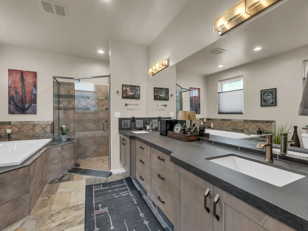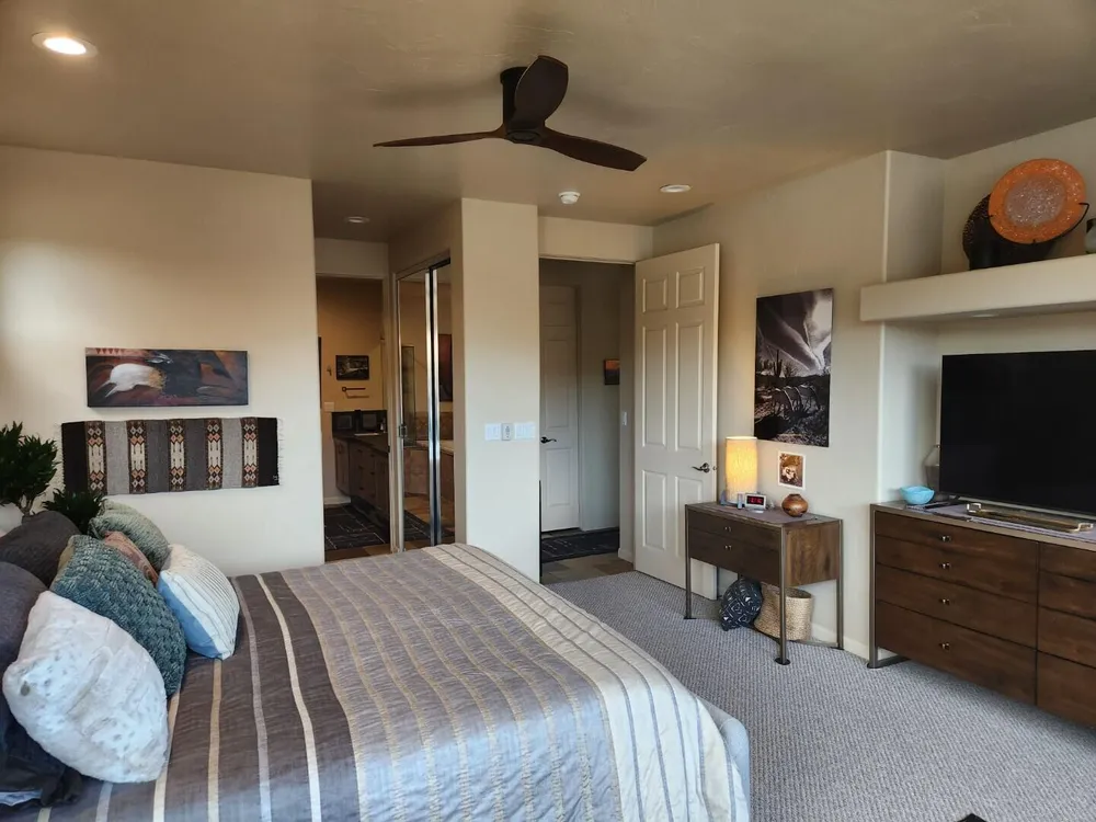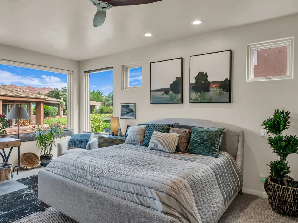 Price reduced by $20,000 to $729,000! Beautifully redone home on a corner lot in highly desirable Paiute Springs at Entrada. Too many upgrades to name but a few are cabinetry, counter tops, appliances, lighting, both bathrooms, painting, fireplace, window coverings and much more. Very light and airy with lots of windows. Built in outdoor BBQ. Situated on a very nice corner lot with lots of privacy. Beautiful pond and view of the Red Rocks. This home is immaculate! A must see!