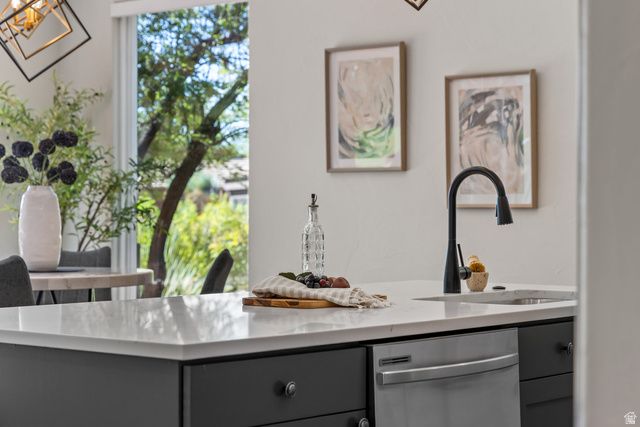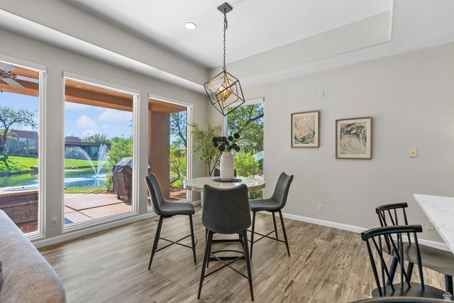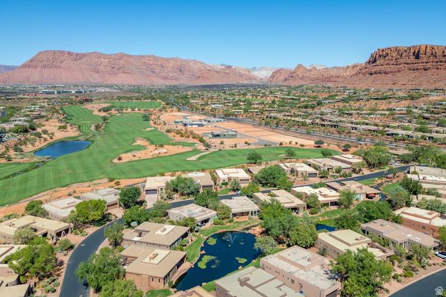 Set along the 3rd hole of Entrada's championship golf course, this beautifully remodeled home in Paiute Springs offers modern comfort and a resort-style lifestyle. A welcoming courtyard, highlighted by a striking glass-and-wood front door, opens to bright, open-concept living and kitchen spaces featuring beautiful wood floors throughout. The kitchen is a showpiece with an oversized island, custom gray wood cabinets, tile backsplash, modern light fixtures, and a bar-perfect for entertaining. The primary suite is a serene retreat, featuring oversized windows, a soaking tub, double vanity, and a generous walk-in closet. Throughout the home, large windows bring in natural light and frame views of the surrounding landscape. Outside, a covered patio overlooks a peaceful pond and water feature, creating an ideal spot for relaxing or entertaining. Residents enjoy world-class Entrada amenities, including indoor and outdoor pools, a clubhouse, fitness center, pickleball, volleyball, and basketball courts. With full landscaping and a prime golf course setting, this home blends Southern Utah's natural beauty with luxury living. The Entrada Golf Course features their recently redesigned course by the distinguished David McLay Kidd. As part of the Troon Prive Golf Course Network, Entrada has been rated the #2 best course in Utah with its par 72 course that extends across 7,280 yards of some of the most majestic desert landscape in the southwest. The community of Entrada includes a guard gate, clubhouse, two outdoor pools and spa, indoor pool, exquisite dining, fully equipped fitness center offering many fitness and yoga classes, tennis/pickleball courts, and a playground. The wellness center includes relaxing spa services such as facials, pedicures, massages, and body treatments. The community is centrally located in the beautiful city of Saint George, which is proud to now host the PGA Tour at Black Desert, multiple LPGA tournaments at Copper Rock, and many notable events, such as the World Championship of the Ironman, St. George Marathon, Red Bull Rampage, and tons of other amazing well-known events. It's only a short drive to America's most astonishing national parks, such as Zion, Bryce, and the North Rim of the Grand Canyon; and state parks and national forests like Snow Canyon, Sand Hollow Reservoir, Gunlock Reservoir, Quail Creek Reservoir, and Dixie Forest. The word is out that at 2,700 feet above sea level, on the edge of the Mojave desert, Colorado Plateau, and the Great Basin, lies one of America's most beautiful and distinctive geological places. This tranquil home is the perfect setting for you to establish your own gathering place in the heart of Southern Utah.Furniture package available. All information herein is deemed reliable but is not guaranteed. The buyer is responsible to verify all listing information, including square footage/acreage, to the buyer's own satisfaction.