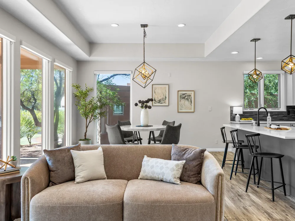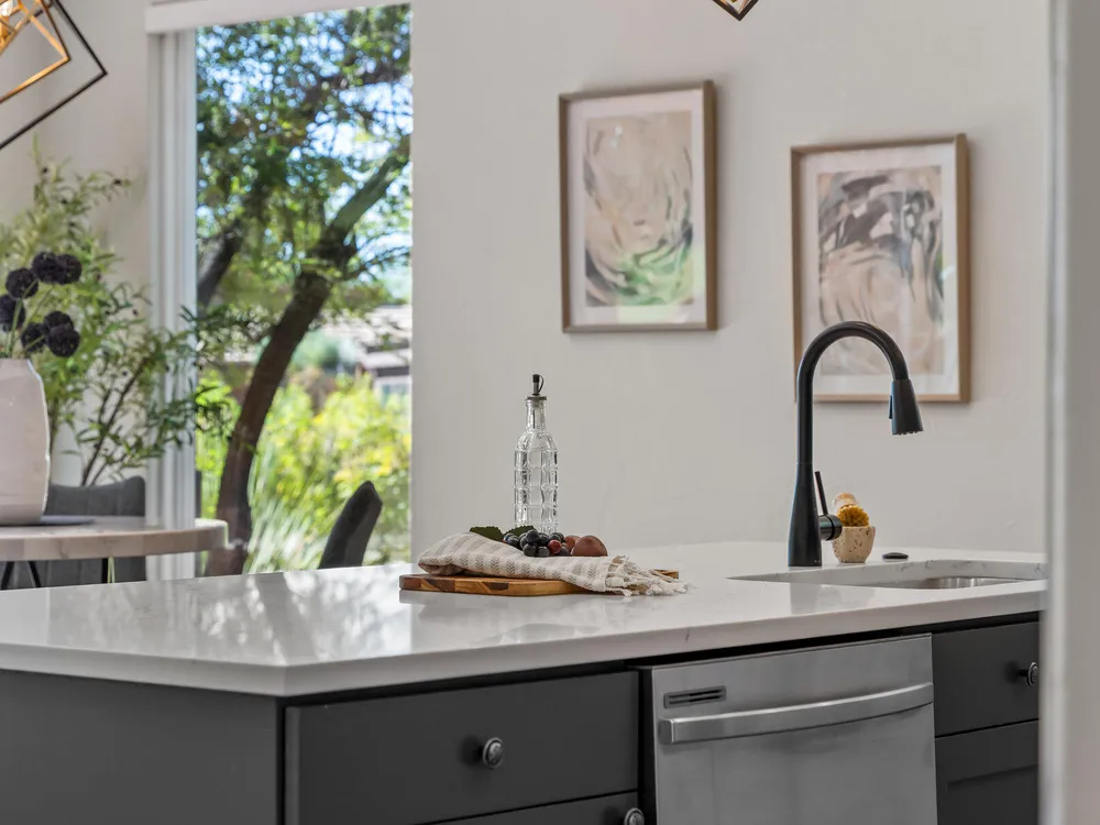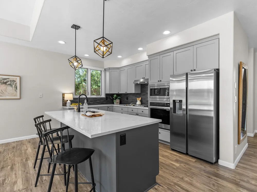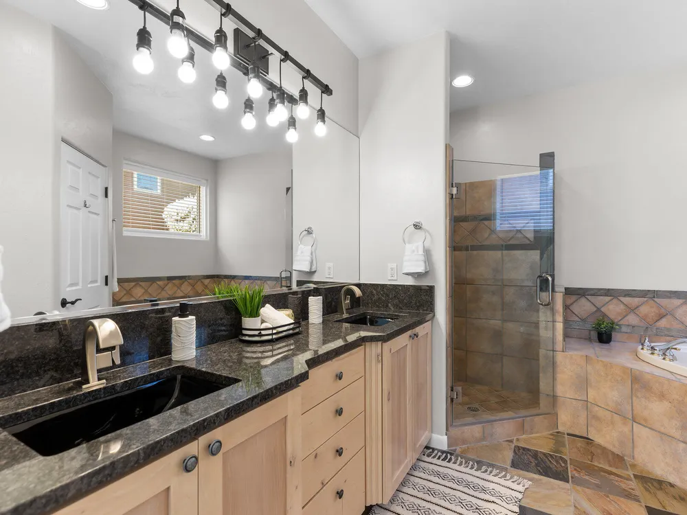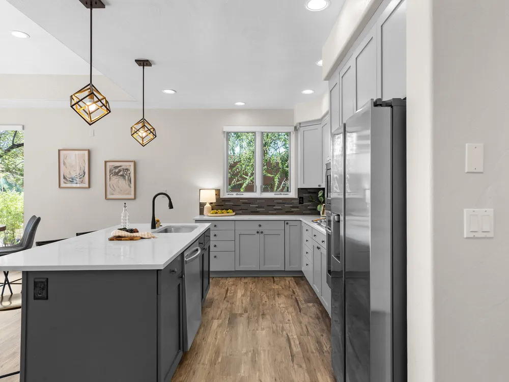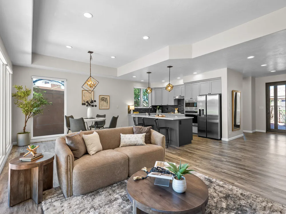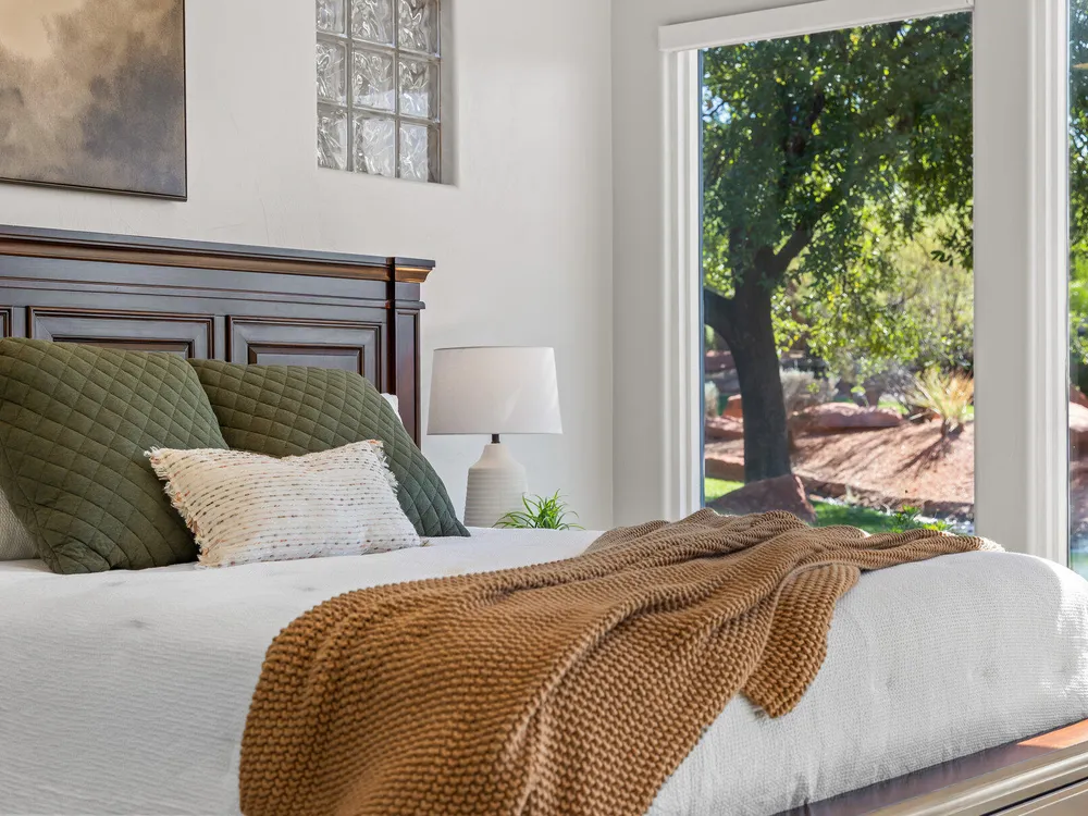 Set along the 3rd hole of Entrada's championship golf course, this beautifully remodeled home in Paiute Springs offers modern comfort and a resort-style lifestyle. A welcoming courtyard, highlighted by a striking glass-and-wood front door, opens to bright, open-concept living and kitchen spaces featuring beautiful wood floors throughout. The kitchen is a showpiece with an oversized island, custom gray wood cabinets, tile backsplash, modern light fixtures, and a bar—perfect for entertaining. The primary suite is a serene retreat, featuring oversized windows, a soaking tub, double vanity, and a generous walk-in closet. Throughout the home, large windows bring in natural light and frame views of the surrounding landscape. Outside, a covered patio overlooks a peaceful pond and water feature, creating an ideal spot for relaxing or entertaining. Residents enjoy world-class Entrada amenities, including indoor and outdoor pools, a clubhouse, fitness center, pickleball, volleyball, and basketball courts. With full landscaping and a prime golf course setting, this home blends Southern Utah's natural beauty with luxury living. The Entrada Golf Course features their recently redesigned course by the distinguished David McLay Kidd. As part of the Troon Prive Golf Course Network, Entrada has been rated the #2 best course in Utah with its par 72 course that extends across 7,280 yards of some of the most majestic desert landscape in the southwest. The community of Entrada includes a guard gate, clubhouse, two outdoor pools and spa, indoor pool, exquisite dining, fully equipped fitness center offering many fitness and yoga classes, tennis/pickleball courts, and a playground. The wellness center includes relaxing spa services such as facials, pedicures, massages, and body treatments. The community is centrally located in the beautiful city of Saint George, which is proud to now host the PGA Tour at Black Desert, multiple LPGA tournaments at Copper Rock, and many notable events, such as the World Championship of the Ironman, St. George Marathon, Red Bull Rampage, and tons of other amazing well-known events. It's only a short drive to America's most astonishing national parks, such as Zion, Bryce, and the North Rim of the Grand Canyon; and state parks and national forests like Snow Canyon, Sand Hollow Reservoir, Gunlock Reservoir, Quail Creek Reservoir, and Dixie Forest. The word is out that at 2,700 feet above sea level, on the edge of the Mojave desert, Colorado Plateau, and the Great Basin, lies one of America's most beautiful and distinctive geological places. This tranquil home is the perfect setting for you to establish your own gathering place in the heart of Southern Utah. Furniture package available. All information herein is deemed reliable but is not guaranteed. The buyer is responsible to verify all listing information, including square footage/acreage, to the buyer's own satisfaction.