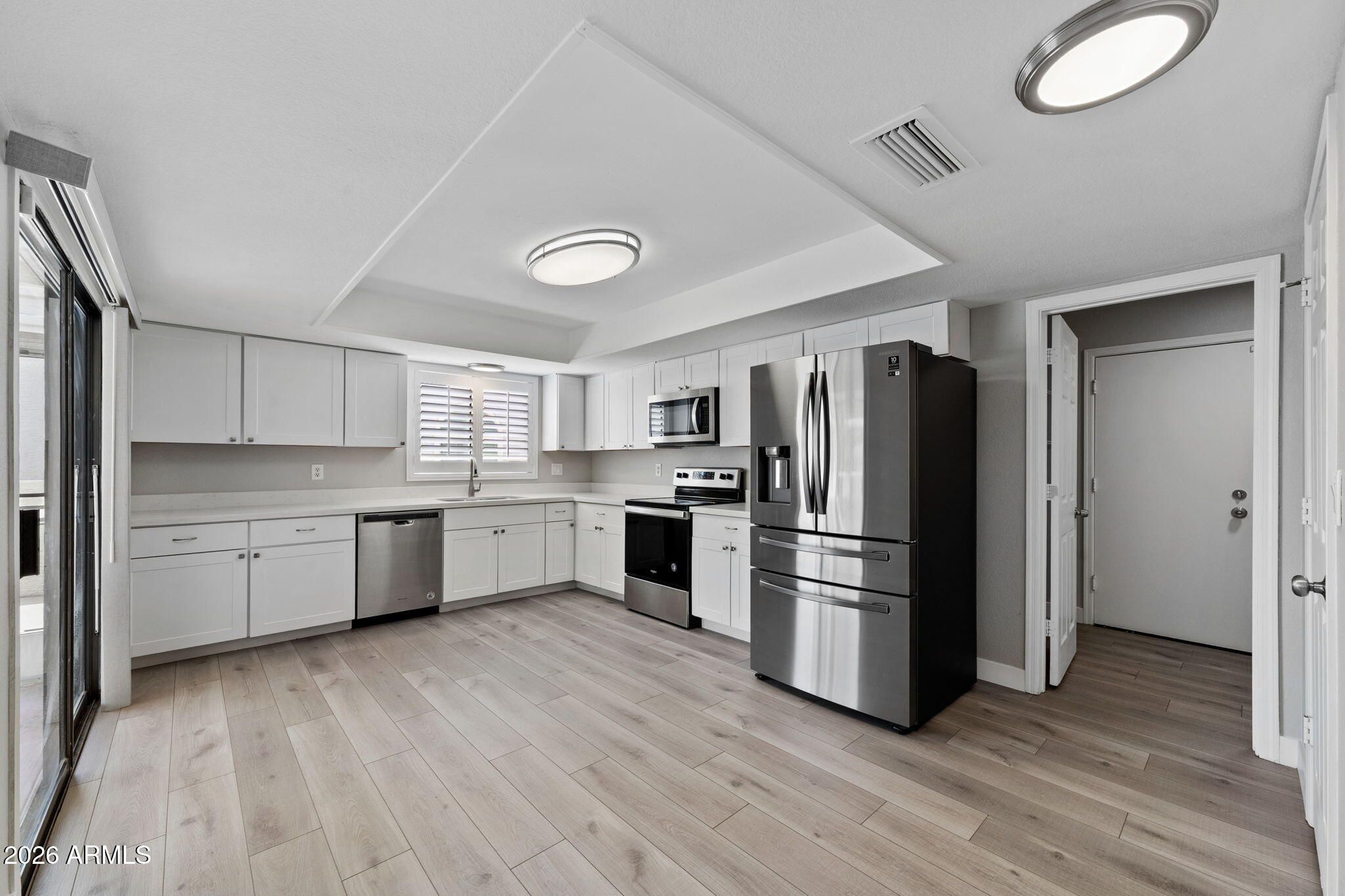 - Refrigerator, Built-in Microwave, Dishwasher, Disposal, Electric Range