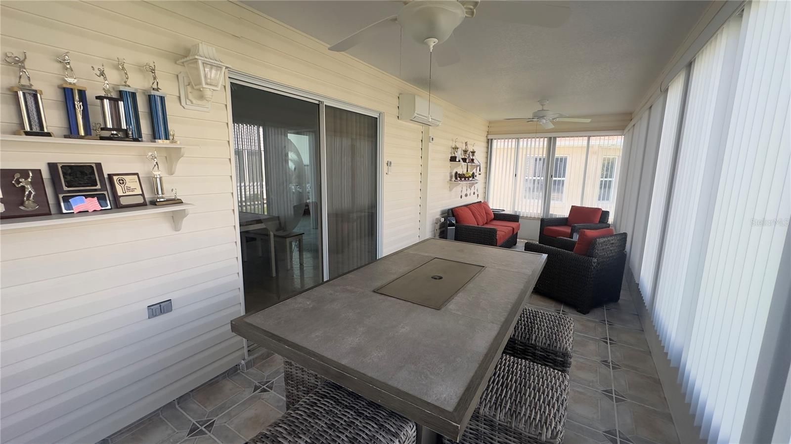 This beautiful, neutral, spacious Catalina Model has been meticulously improved by the Owner. NO BOND! Great curb appeal includes a paved driveway/walkway, a large screened front porch, 2 car garage with motorized screened garage door, extended lanai, and maintenance free tiled flooring (no carpet)! RECENT MAJOR UPGRADES INCLUDE: Roof (8/22), HVAC (9/24), Master Bath Remodel includes a shower remodel (7/24), New Windows (10/25), Lawn (10/24), Epoxy Garage Floor (10/23)! Additional upgrades include a remodeled kitchen (with a pantry), quartz countertops, a beautiful, tiled backslash, plus soft close upgraded cabinets. There is a ceiling fan in both bedrooms. The SPLIT FLOOR PLAN has a guest bedroom and bath off the living room plus a pocket door that provides privacy for your guests. Home is located just minutes by car or Golf Cart from SPANISH SPRINGS, Pools, Tierra Del Sol Golf/Rec Center, El Santiago Golf/Rec center, numerous Country Clubs, the Polo Field, Hospitals, and major box retailers. TURN-KEY PACKAGE IS AVAILABLE.
