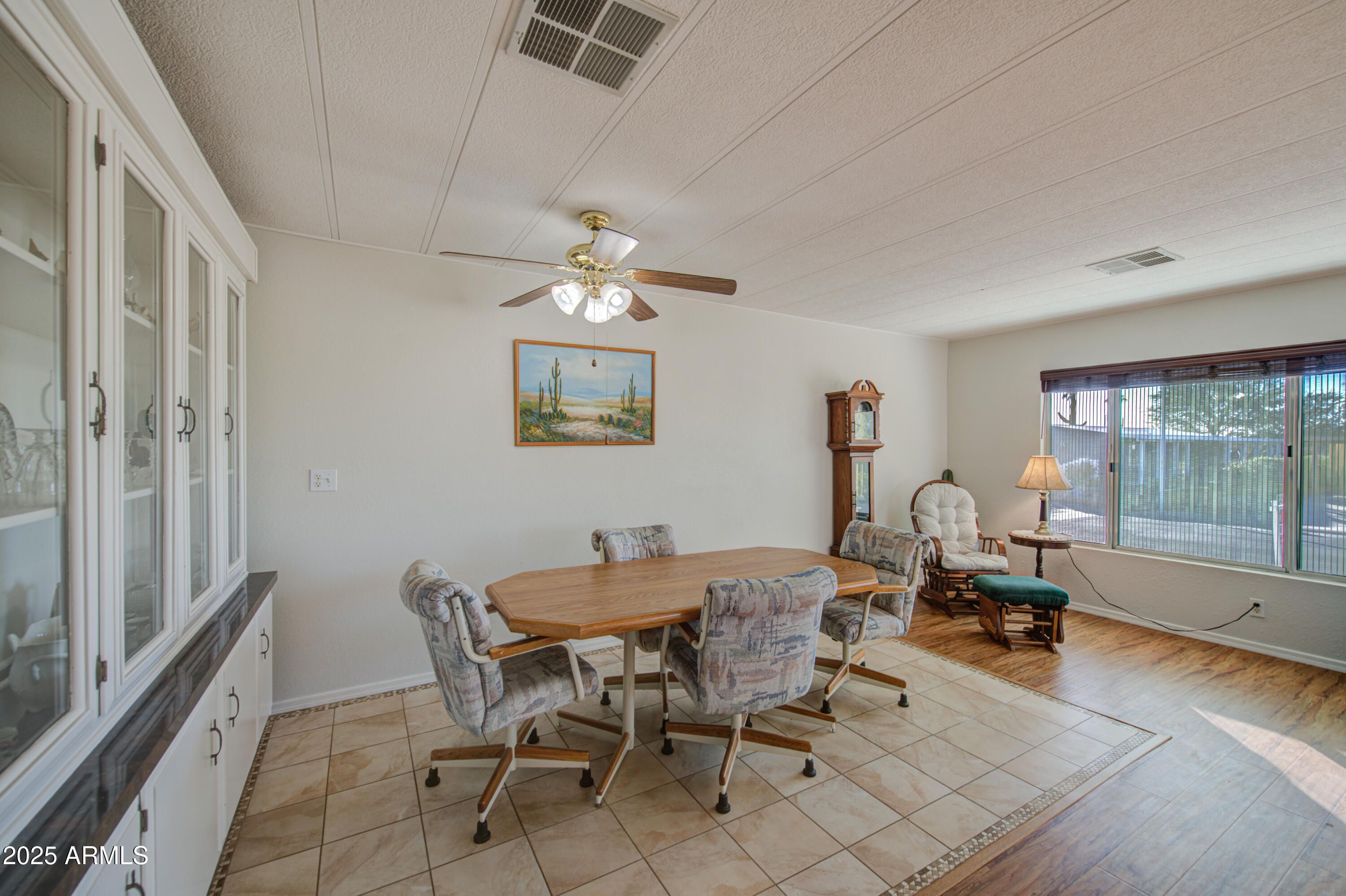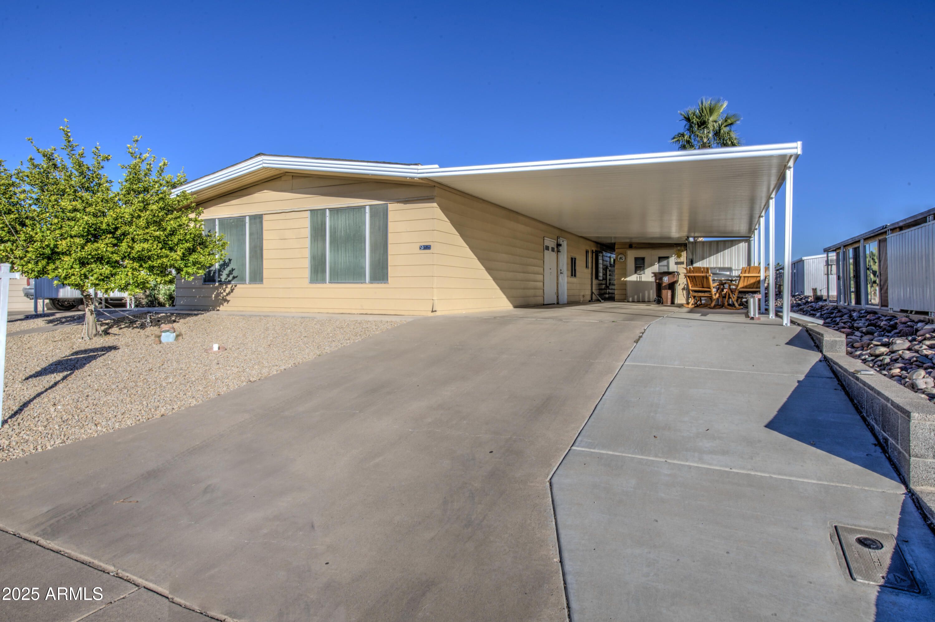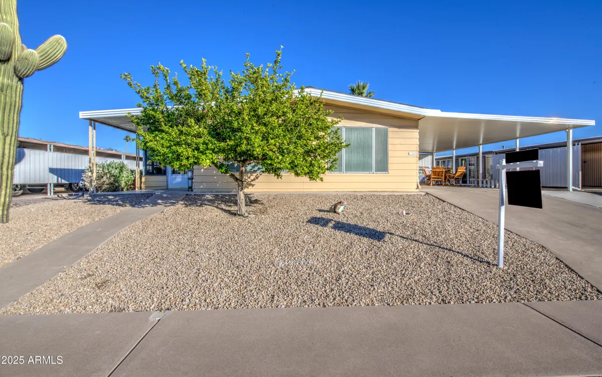 New on the market. Larger than normal at 1656 square feet mobile home. The home has two bedrooms and two Bathrooms'. The home has a formal dining room, family room (which has been extended) and a large living room. The home has an island which has places to eat also. There is also a glassed in Arizona room with a patio door from the family room. There is a golf cart garage/work shop. The spacious carport is extra wide. Apache Wells is a 55Plus community with many varied activities for everyone. Golf membership is optional. The bar and grill is public.