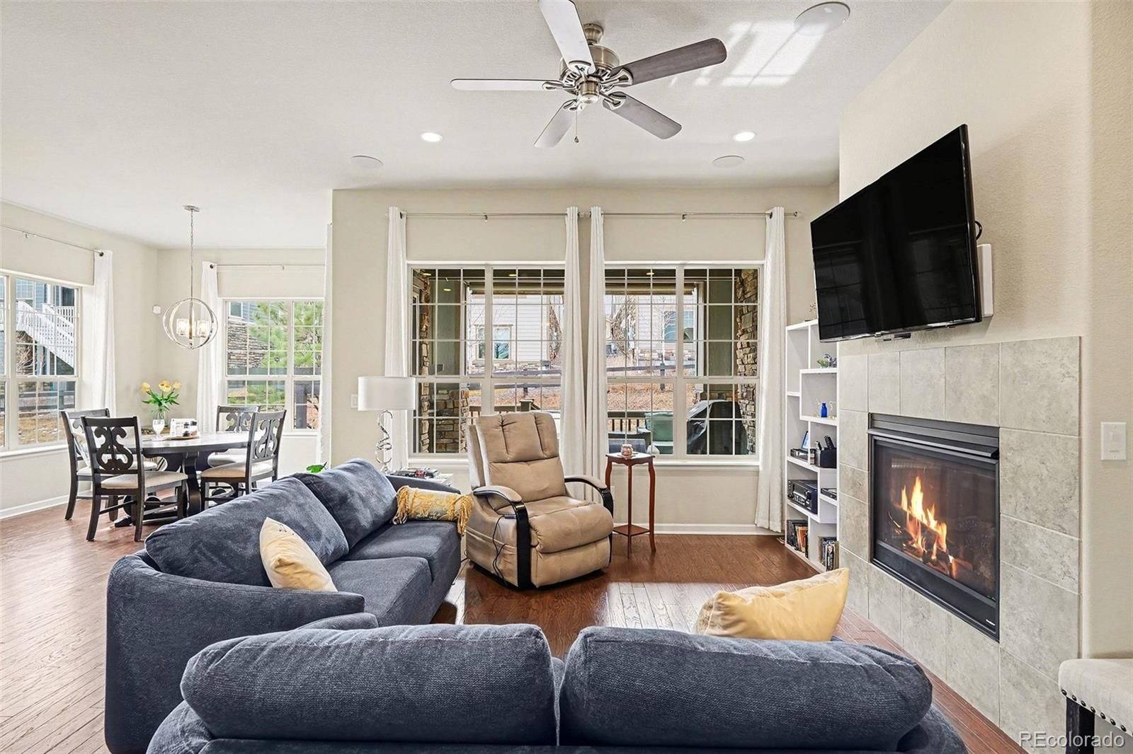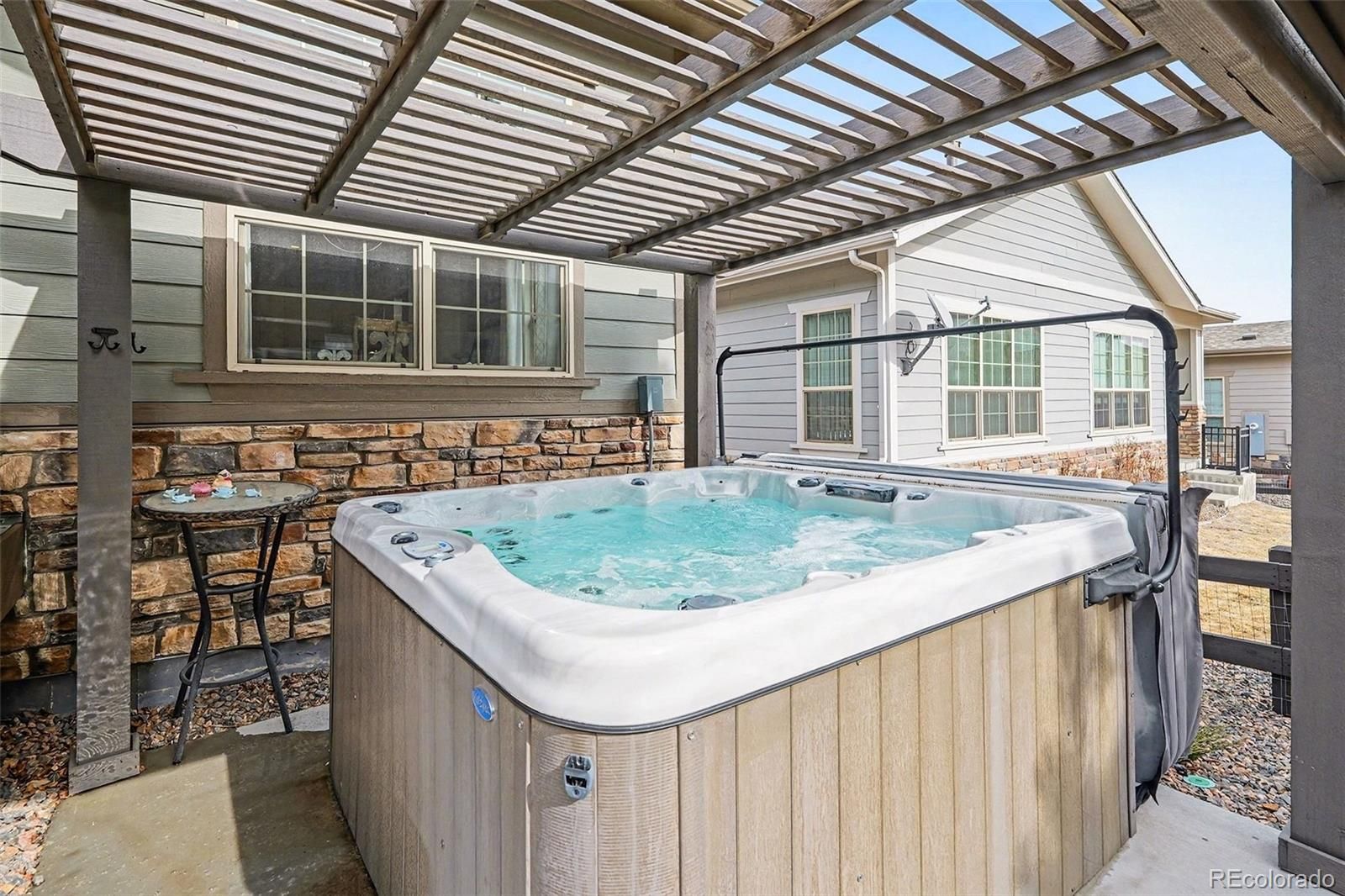 When you arrive at your new home in the highly desirable Rocking Horse at Inspiration neighborhood, you'll be welcomed by the quiet location of this well loved home. Whether you enter through the covered front porch or the tall and spacious two car attached garage, the main level features an inviting great room, complete with a gas fireplace. You'll enjoy an extra large granite island with lots of storage, and 4 luxury stools included. Your new washer and dryer and custom cabinet in the laundry are also included. Enjoy your covered patio, gas connected grill, and solar heated hot tub that backs to a gorgeous path where lots of deer pass by daily. There is even an electric shade that makes any time of day a joy to relax in your backyard retreat. Conveniently located in scenic Douglas County, with access to downtown, the airport, and two nearby reservoirs. Explore the many trails and bike paths that connect to parks, and the Cherry Creek trail system. The fabulous 8,000 square foot Hilltop Club is a first class facility featuring tennis, pickleball, outdoor pool, and fitness center-all included. Don't miss the opportunity to make this move in ready home your own. Your next home is here waiting for you. It won't wait for long. Schedule your private showing today!