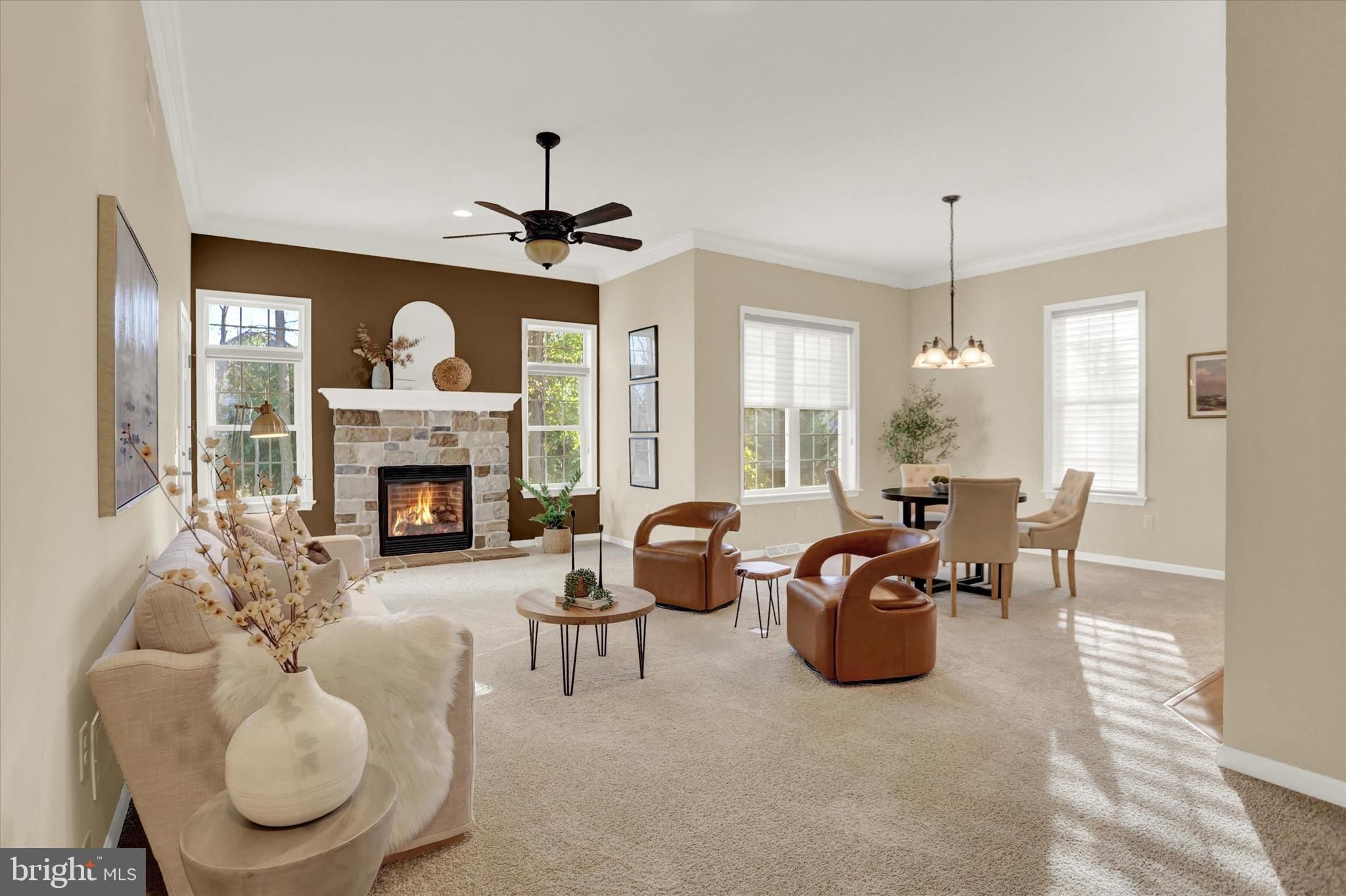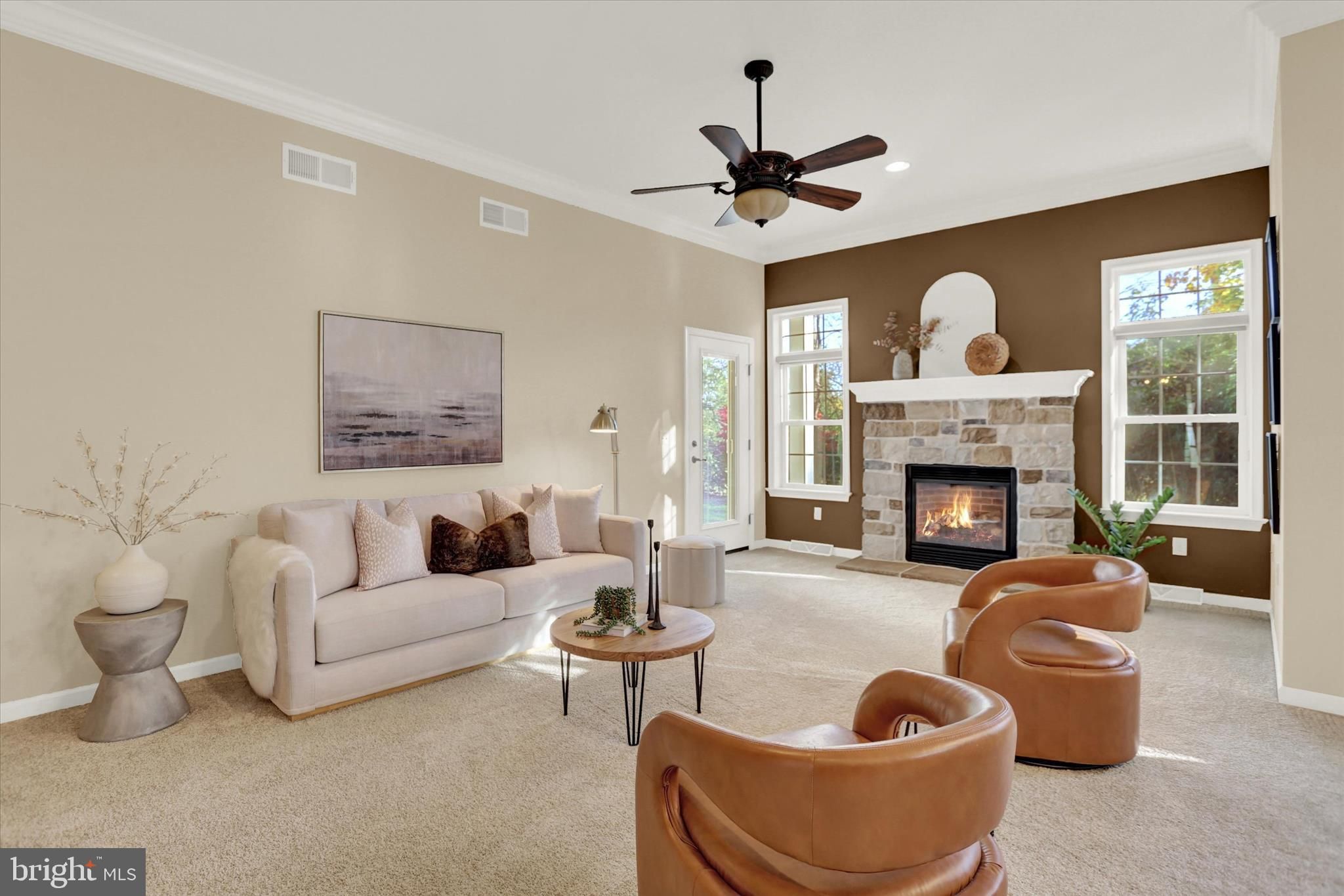 Discover the perfect blend of privacy, space, and low-maintenance living in this beautifully well-kept home in the sought-after Carmella 55+ community. Set on a private lot with a tree lined rear yard, you'll enjoy seclusion on your covered rear patio featuring a hard lined gas connection for outdoor grilling. The home has an expanded floor plan with 10' ceilings throughout and gas fireplace in the living room. The enlarged dining area is ideal for hosting family and friends, while the spacious second bedroom, laundry room, and garage offer added convenience and flexibility for everyday living. The kitchen is designed for both function and style, featuring a pantry, double pull-out shelves in the cabinets and under-cabinet lighting. Downstairs, the basement includes finished perimeter walls if you want to have additional finished space in the future. New carpeting thruout home. Enjoy the amenities of Carmella including walking paths, outdoor pool, club house with finess center all minutes from Carlisle Pike's shopping and dining.