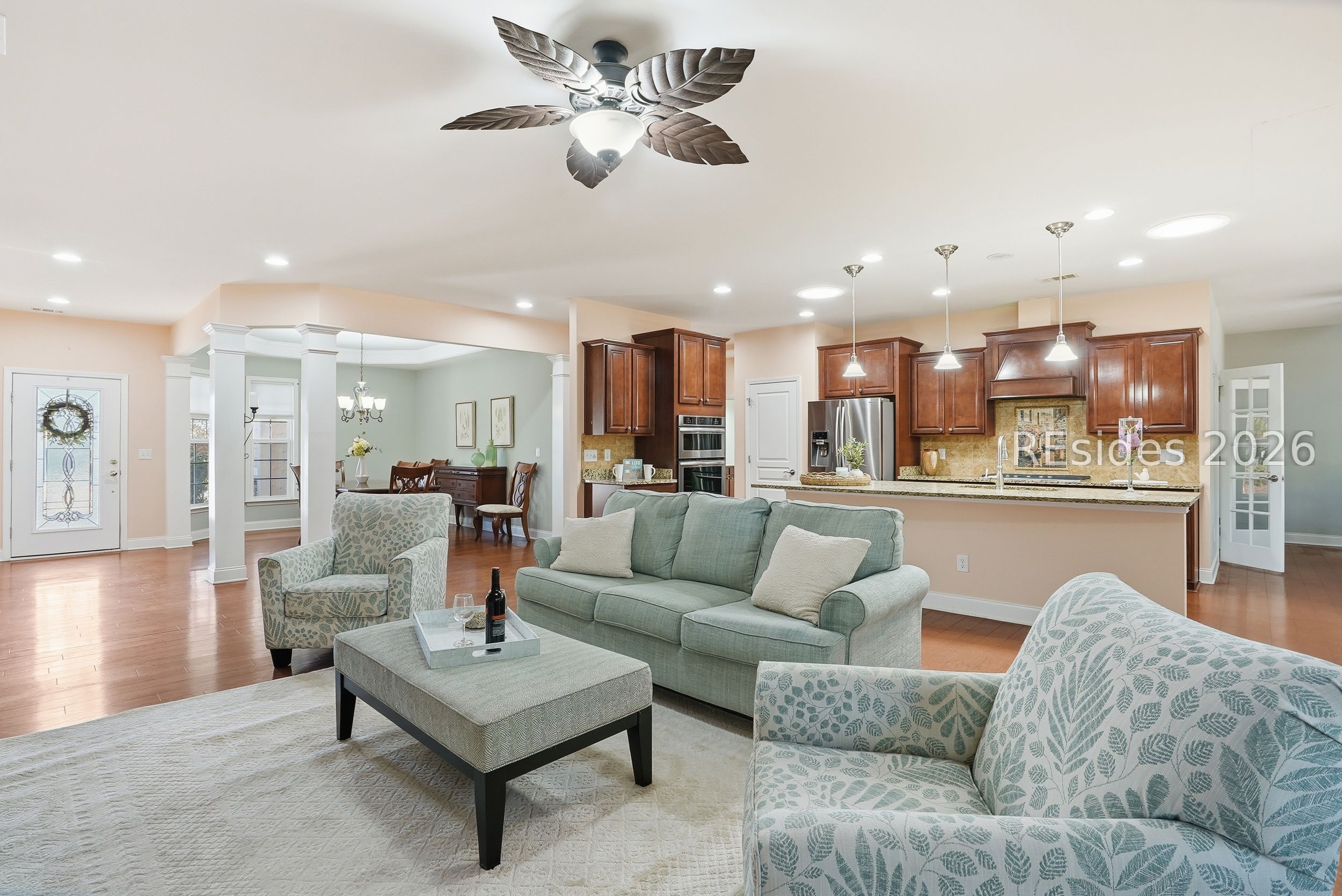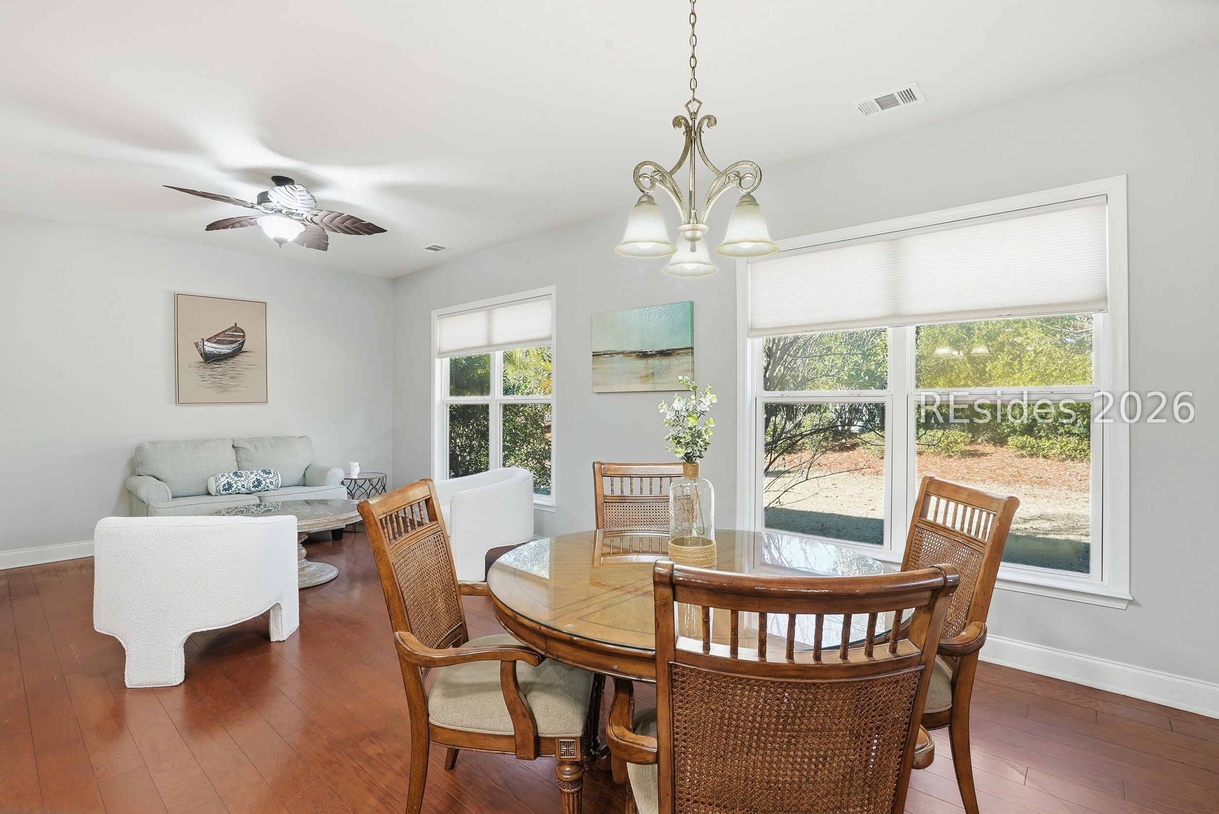 Welcome to 226 Eaglecrest, a beautifully maintained Napa Valley model located in the sought-after Wildlife Bay section of Sun City North. Lovingly cared for by the original owner, this 3-bedroom, 2-bath home offers comfort, flexibility, and effortless Lowcountry living-ideal for enjoying the next phase of life in an active retirement community. The thoughtfully designed split floor plan provides privacy and ease. The spacious primary suite is tucked on one side of the home and features a large bathroom with a walk-in shower and generous walk-in closet. On the opposite side, a comfortable guest bedroom welcomes visitors, while the third bedroom easily flexes as an office, craft room, or music room. The open kitchen flows seamlessly into the living area, creating an inviting space for everyday living and entertaining. A formal dining room, along with additional space for a kitchen table, offers flexibility for gatherings both large and small. A cozy den adds even more living space, and ample storage throughout ensures everything has its place. Step outside to the large screened porch, where tranquil treed backyard views provide the perfect setting to relax and enjoy the beauty of the Lowcountry. Additional highlights include a 2-car garage with golf cart bay, a walk-up floored attic, and a location just down the street from the Argent Lakes Amenities Center. Residents enjoy resort-style amenities including golf, driving range, putting green, dog parks, community pools, pickleball, fitness facilities, clubs, and endless opportunities for social connection. Conveniently located in Bluffton, this home also offers quick access to the beaches of Hilton Head Island and easy day trips to the historic downtowns of Savannah and Charleston.Whether you're relocating south or ready to embrace maintenance-friendly living, 226 Eaglecrest offers the perfect blend of comfort, lifestyle, and location-where every day feels like a vacation.