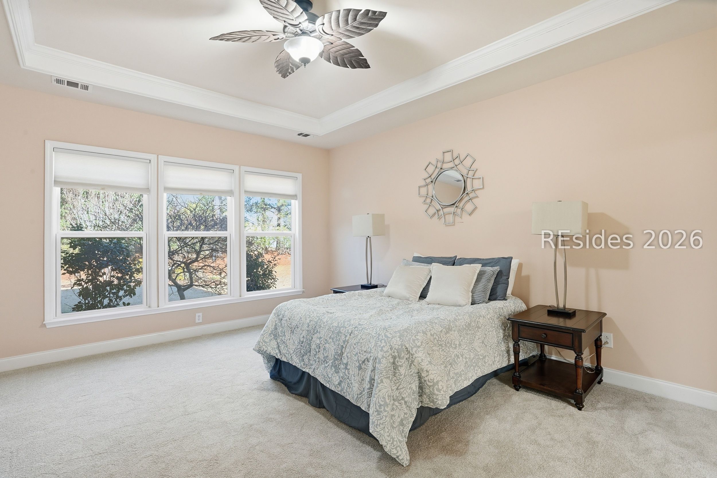 - Attic Access, Tray Ceiling(s), Ceiling Fan(s), Main Level Primary, Multiple Primary Bathrooms, Permanent Attic Stairs, Smooth Ceilings, Entrance Foyer