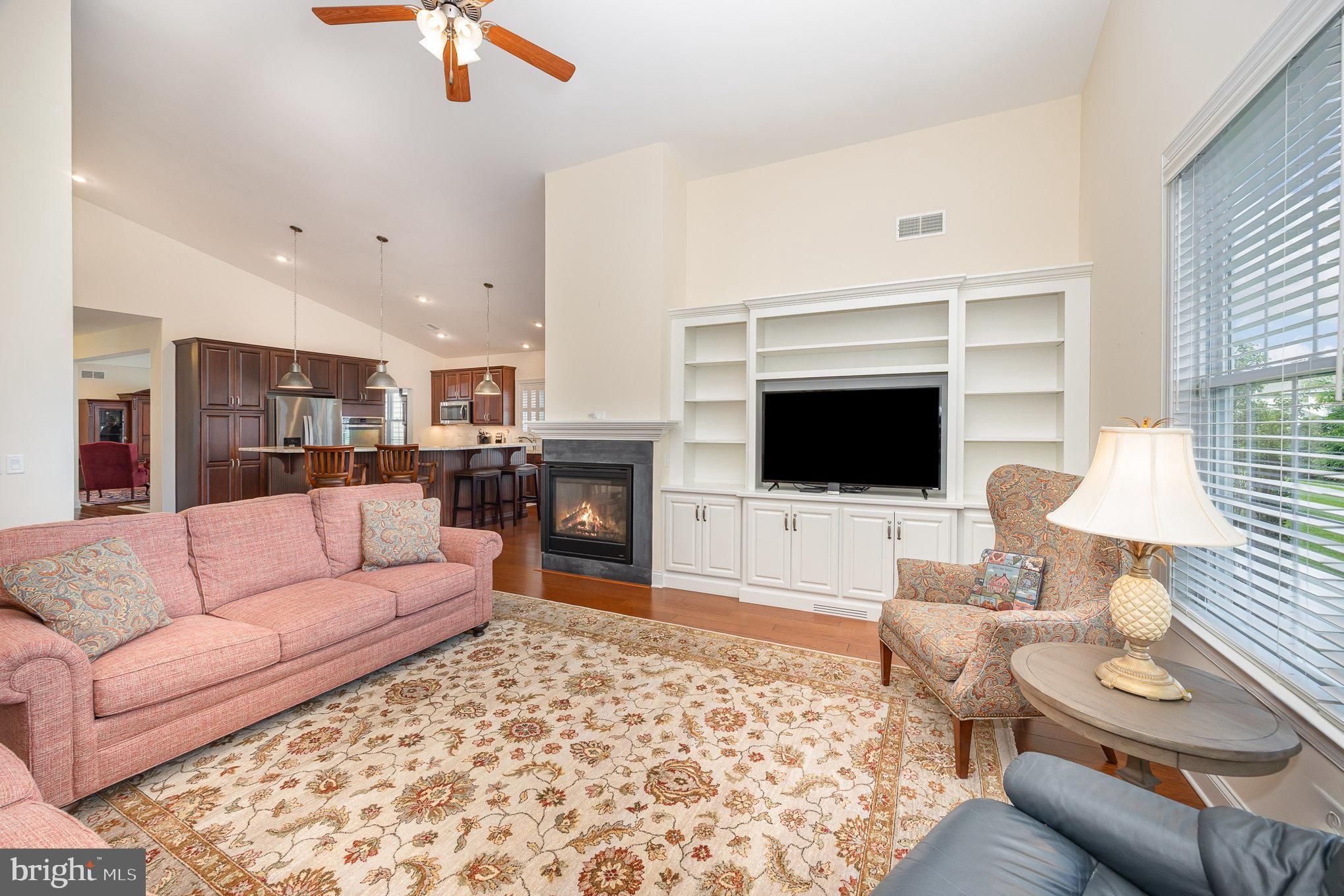 Enjoy refined living in the highly sought active adult 55+ community of Traditions of America at Silver Spring! Welcome to this beautifully upgraded and immaculately maintained one-level 3-bedroom, 2-bathroom Hancock floorplan in this 55+ Community. This home is an entertainer’s dream with a seamless and comfortable flow throughout. The spacious foyer opens into the front sitting/living room, with an additional office/den/bedroom tucked in nicely at the front of the house. The sitting room flows nicely into a spacious formal dining room area, which opens conveniently into the heart of the home – a kitchen dream providing extra island seating, plenty of cabinet and pantry space, and a breakfast nook that looks out onto the screened patio – spectacular serene setting for enjoying early morning coffee and relaxing in the outdoors! The spacious family room with custom build-ins, vaulted ceiling, and an abundance of natural night shares the natural gas fireplace with the breakfast area and kitchen – providing the ability to easily share time with family and friends. Cottage blinds and custom window coverings throughout are included. Main level laundry features cabinet storage and laundry sink. The spacious primary bedroom with ensuite bathroom and plenty of walk-in closet space is to be envied! The additional bedroom provides an ideal space for guests. Home includes beautiful cottage blinds and custom window coverings throughout, as well as custom crown moulding, high ceilings, natural gas HVAC, tankless water heater and water softener system. Second floor walk-up storage accessed through the 2-car garage is ideal for storage! Residents of Traditions of America at Silver Spring, enjoy a wide variety of resort-style amenities to maintain their active lifestyles, some of which include tennis and pickleball courts, putting green, bocce ball, fitness center, sauna, billiards/game room, indoor and outdoor pool areas, walking trails, clubhouse activities, library, media center, and more! The community is conveniently located with easy access to shopping, dining and entertainment, medical facilities, and more. No need to worry about lawn maintenance or shoveling – more free time to enjoy life! Don’t miss this home!