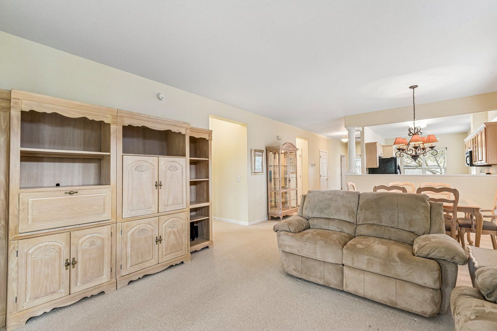 Turn-key, pridefully maintained single-owner 2 bed/2 bath ranch in the 55+ Saddlebrook Farms community, thoughtfully designed for comfortable, low-maintenance living with updates throughout. The functional, open layout is immediately apparent upon entry, with clear sightlines extending from the front door through to the back, creating an airy, connected feel. The eat-in kitchen flows seamlessly into the living room, where clerestory windows bring in consistent natural light while maintaining privacy. A standout sunroom accessed through French doors expands the living space with large bay windows, abundant sunlight, & direct access to the back deck, creating a quiet, inviting setting with open views & no rear neighbors. The primary bedroom features bay windows, a private full bath, & walk-in closet, while the second bedroom & additional full bath offer flexibility for guests or hobbies. Notable updates include a newer roof, washer and dryer, furnace, humidifier, & an extended garage with added window, reflecting consistent care & thoughtful functionality. Saddlebrook Farms supports maintenance-free living with walking paths, stocked lakes, fitness center, pickleball & bocce courts, library, lake house, & community spaces designed for ease and connection.