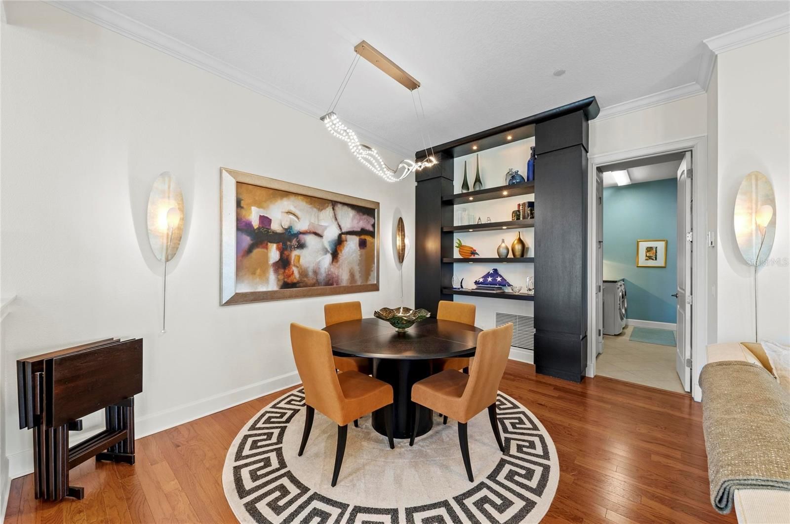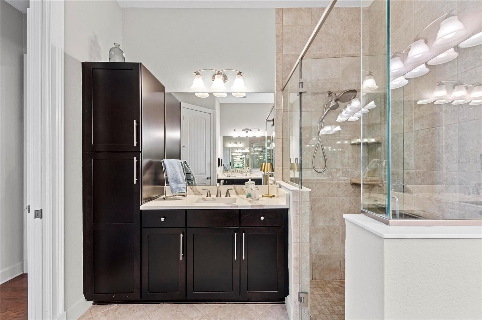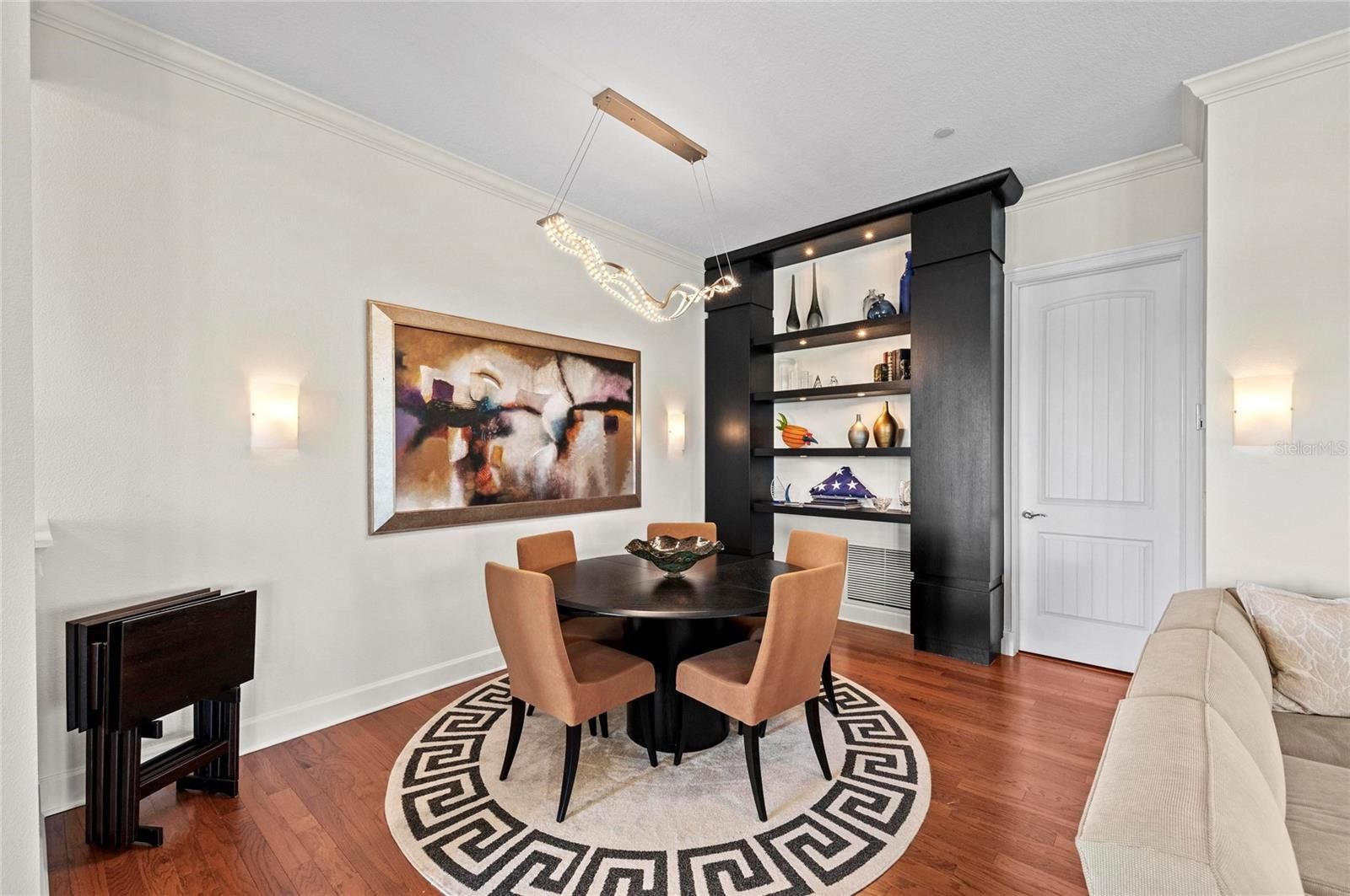- Built-in Features, Ceiling Fan(s), Coffered Ceiling(s), High Ceilings, In-Wall Pest Control, Main Level Primary, Solid-Wood Cabinets, Thermostat, Tray Ceiling(s), Walk-In Closet(s), Window Treatments