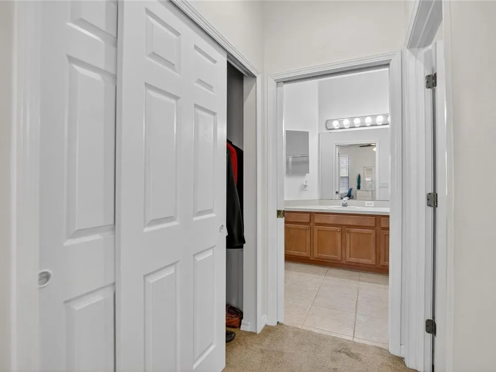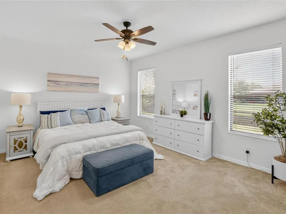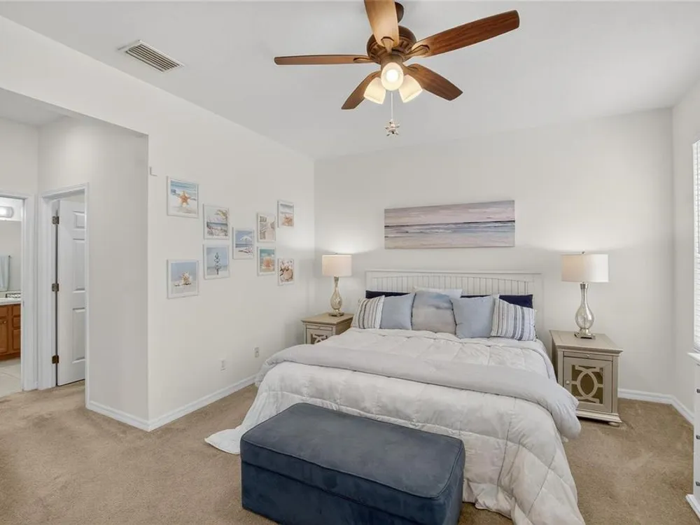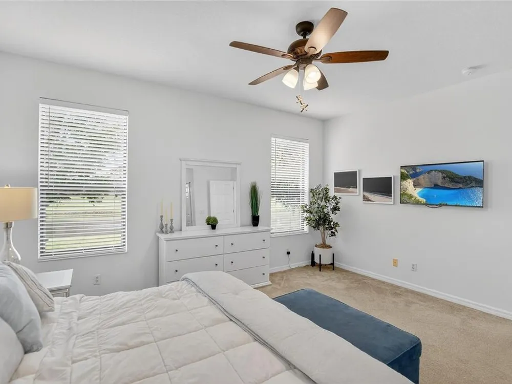 - Ceiling Fan(s), Crown Molding, In-Wall Pest Control, Living/Dining Room, Solid Surface Counters, Solid-Wood Cabinets, Split Bedrooms, Stone Counters, Walk-In Closet(s), Window Treatments