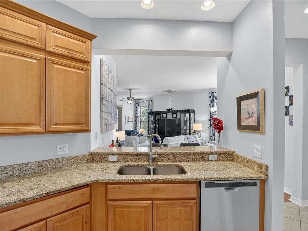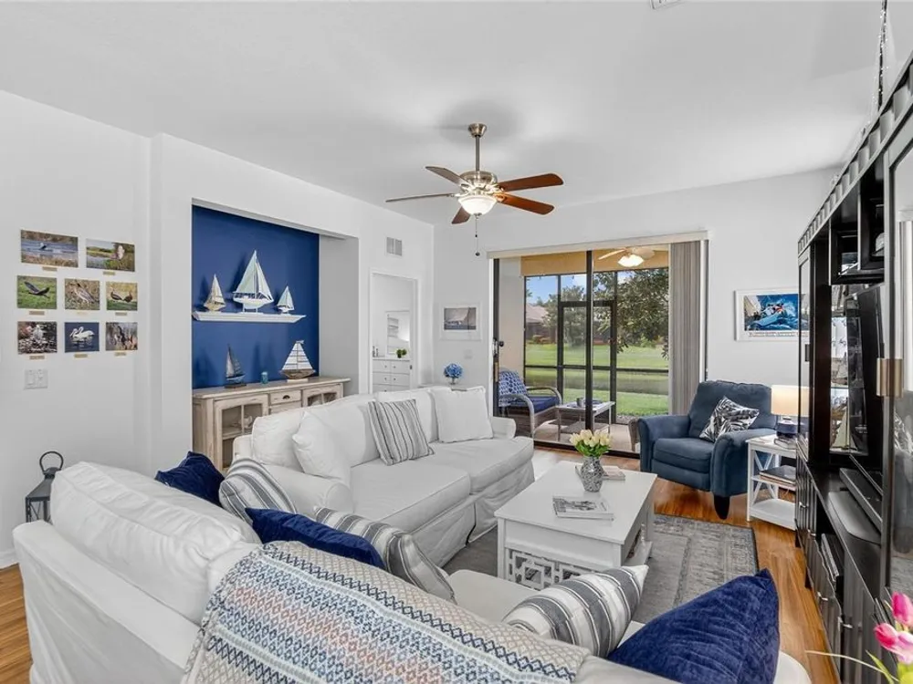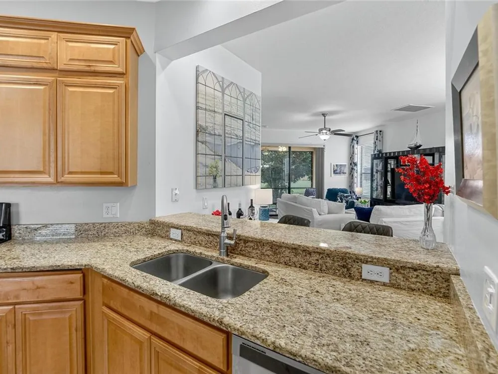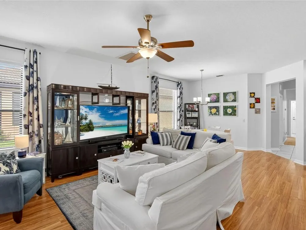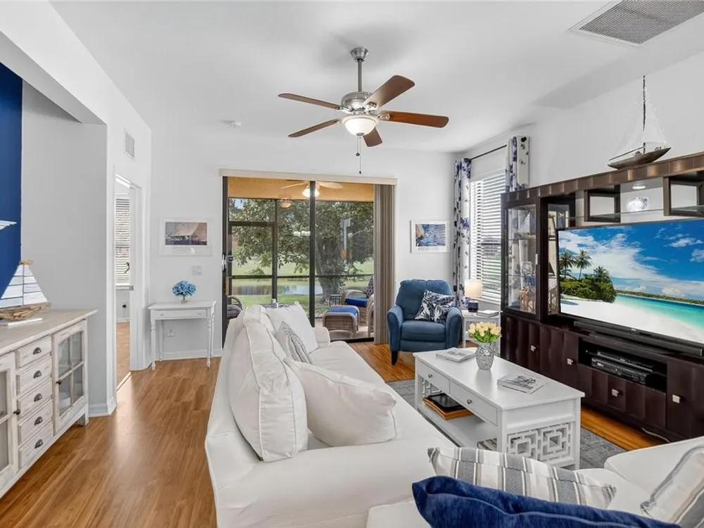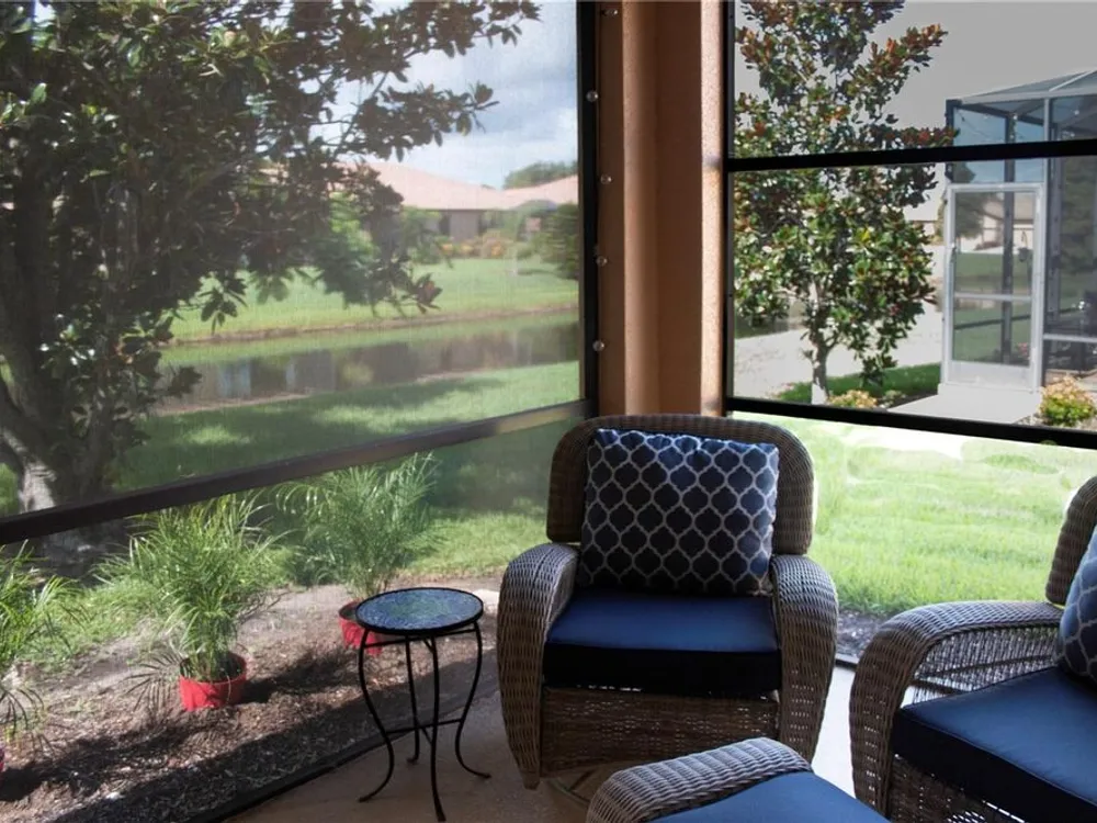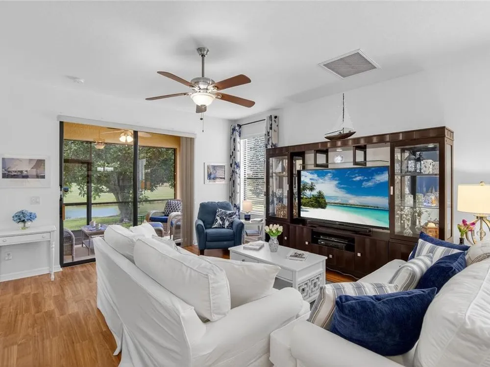 These motivated sellers hope to get more out of life by spending quality time with faraway family, so they’re in a serious frame of mind! They have already lowered the price three times for a total of $19,000! A serious offer could allow you to join a vibrant, resort-style community that will allow you to start getting more out of life in YOUR own way! And you can take the first step by enjoying your morning coffee or time with friends on a private, screened lanai with a tranquil water view. When people ask if it’s quiet, we invite them to take a seat and listen. You might hear some birds, but if you value peace and quiet, this lanai will become a haven. This pristine home is meticulously maintained and features 2 bedrooms plus a den/study. The primary bedroom features one walk-in closet, a second large closet, and a linen closet in the en suite bath. The split floorplan works perfectly for guests, a home office or workout space. Ceiling fans are in place throughout, including the kitchen and the lanai. The open kitchen boasts 42” cabinets, granite countertops, stainless steel appliances, breakfast bar and room for bistro seating. In the 2-car garage you’ll find an automatic door opener, full-width garage screening, and a water softener, as well as a utility sink and shelving. Through-the-wall Pest Service from Home Team has been the sellers’ choice throughout their stay in the home. And the owners offer a transferable Select Home warranty on HVAC and appliances. You will enjoy maintenance free living, with landscaping maintained by HOA, and there is no CDD. Everyday convenience is a plus: an easy walk to the community center, a five-minute drive to Publix, a 4-minute drive to CVS, easy access to world-renowned beaches, airports, and the Brandon Mall. Two restaurants located on the water are within 10 minutes’ drive. Be sure to check out the amenities, including three pools, a spa, state-of-the-art fitness center, tennis and pickle ball courts, a library, billiard room, and Internet Café. Professional entertainment and food trucks are available on a regular basis, and the walking trails can be found throughout the community. For those who prefer to play cards or trivia or bingo or take water aerobics or lessons in dance or fitness or yoga, the monthly calendar lists the myriad activities you can consider. Enjoy resort-style living in this 24-hour gated community!