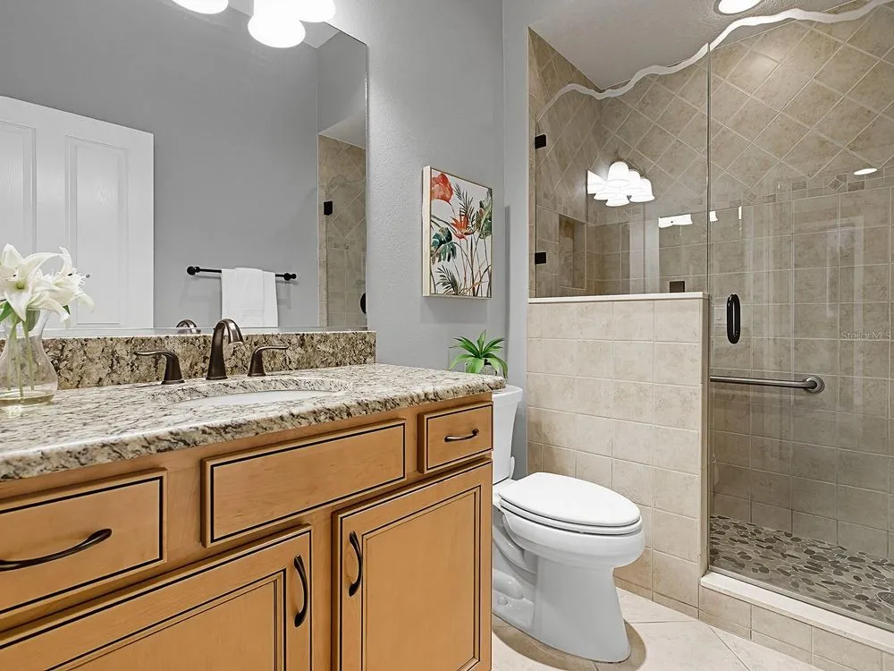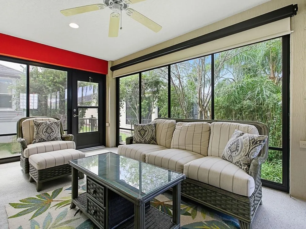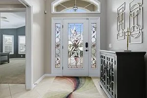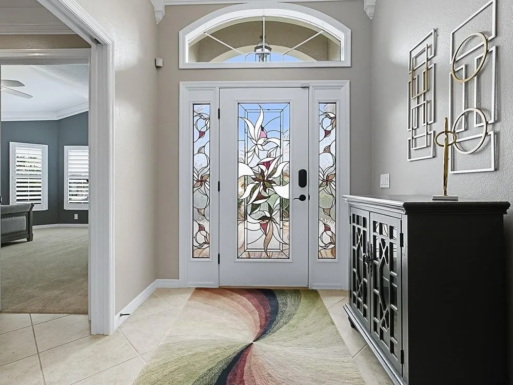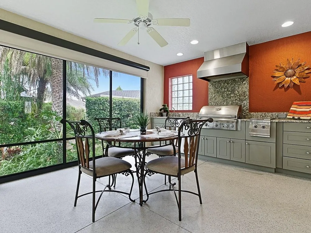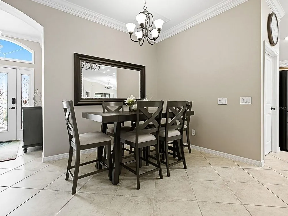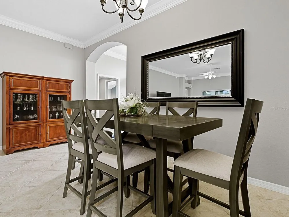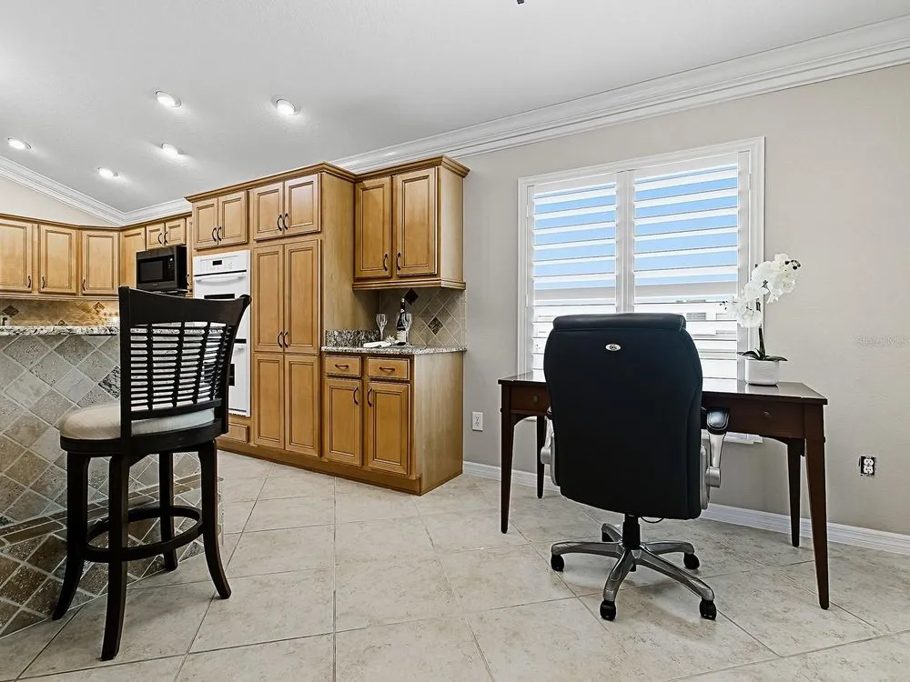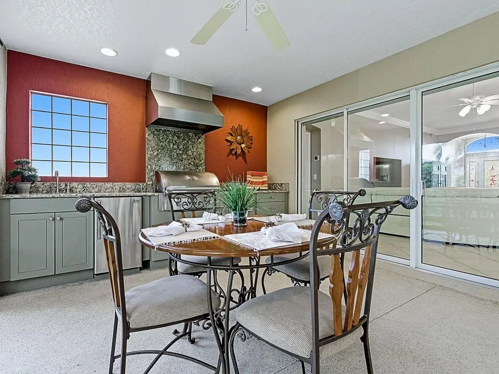 BOND PAID and TURNKEY! This stunning Designer Lily boasts a 2-Car with GOLF CART GARAGE in the Village of Tamarind Grove. From the moment you arrive, the artistic paver stone driveway and expanded patio set the tone, inviting you inside to discover more. Step inside through the decorative glass front door with sidelights into the foyer. The bright, sun-filled interior features a spacious open great room with volume ceilings, EXTENDED CROWN MOLDING, PLANTATION SHUTTERS, and tile laid on the diagonal, with cozy carpet in the bedrooms. The formal dining room has ample space to entertain guests, while the inviting breakfast nook, with a view of the lush, filtered sunlight backyard, is the perfect spot for more casual dining. A SOLAR TUBE illuminates the gourmet kitchen which is designed for both style and function. The kitchen showcases maple cabinetry with pull-outs, GRANITE countertops, tile backsplash, under-cabinet lighting, double wall ovens, and a GAS cooktop stove. A stylish breakfast bar provides even more seating with convenient foot ledge for comfort. The owner’s retreat offers elegance and comfort with a tray ceiling with rope lighting, and a large walk-in closet. The primary bathroom is complete with dual sinks, a separate toilet room, and a luxurious ROMAN SHOWER. An extra-large guest bedroom is located at the front of the home, featuring a bay window and a double-door closet. A second guest bedroom also features a double-door closet and is situated just outside the guest bath. The well-appointed guest bath features a tile-lined shower with a decorative glass surround. Practicality meets convenience in the laundry room, complete with wall cabinets and a utility sink. Expansive stack-back sliding glass doors open to an oversized glass-enclosed lanai, complete with a spectacular SUMMER KITCHEN full BBQ grill and dual burner side stove, sink, mini-fridge, and permanent gas line to a buried propane tank—perfect for entertaining. The 2-car garage with TANDEM GOLF CART GARAGE is climate-controlled with an HVAC MINI-SPLIT and includes epoxy floors, pull-down attic stairs, secondary full-size refrigerator, workbench, an electronic water softener, and a WHOLE-HOUSE WATER FILTRATION SYSTEM. Additional upgrades include hideaway screen on the front door, landscape lighting, GARAGE DOOR SCREEN, lanai blinds, and fresh interior paint. Great location close to Lake Sumter Landing and Brownwood Paddock Square, Several pools and rec centers, and four executive golf courses are just a quick golf cart ride away. Shopping and Restaurants are also close by on 466A. Come fall in love and make this your next home!