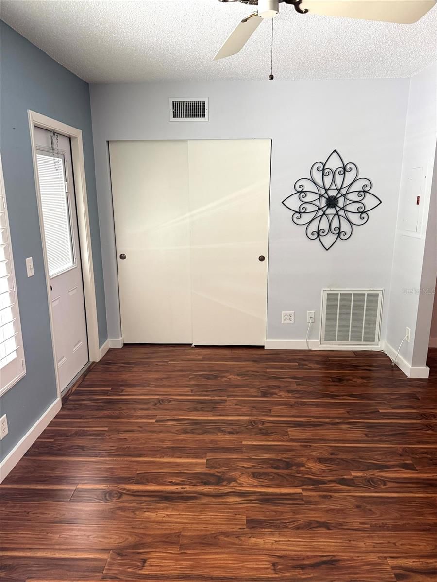 - Ceiling Fan(s), Eat-in Kitchen, Living/Dining Room, Open Floorplan, Main Level Primary, Solid-Wood Cabinets, Split Bedrooms, Stone Counters, Thermostat, Window Treatments