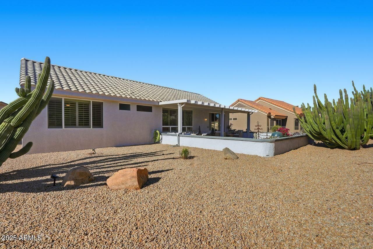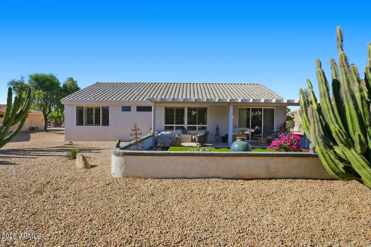 Enjoy your Sun City West lifestyle in this beautifully updated Havasu floor plan featuring the sought-after Great Room concept. The light and bright kitchen offers white cabinets, granite counters, large island, and newer stainless appliances (2024). Home features plantation shutters (2019), ceramic tile throughout, and raised panel doors. The master suite includes a walk-in closet and double-sink bath with cultured marble counters. Guest bath features a newer walk-in shower (2024). Newer backyard landscaping (2023) with desert design and covered patio. Newer paint, furnace & AC (2019). Garage has cabinets and epoxy floor. Furnishings available outside of escrow.