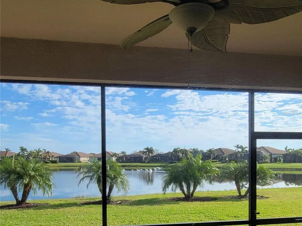 Resort living at River Strand Golf and Country Club! This club features a 27 hole golf course, 9 Har-Tru tennis courts, 8 pickleball courts, 2 club houses with pools, many satellite pools, 1 restaurant, 1 gym, a library, a card room, cornhole, live entertainment, and many sponsored events through an activity director including live music and shows. Enjoy 2287 square feet of living space overlooking a central pond view out back and a long view of another pond out front. Your home ownership social dues give you access to every amenity including golf. Arthur Hills designed golf course charges green fees and cart fees per use. You wont have to worry about lawn maintenance or trimming bushes as this maintenance is included in your dues. Reclaimed water helps keep your landscaping from drying out in the warm Florida weather. No worries about a community mail center when you can walk to your private mailbox at the end of your paver driveway. New accordion hurricane shutters and storm gutters installed in 2024. Enjoy care free resort living today!