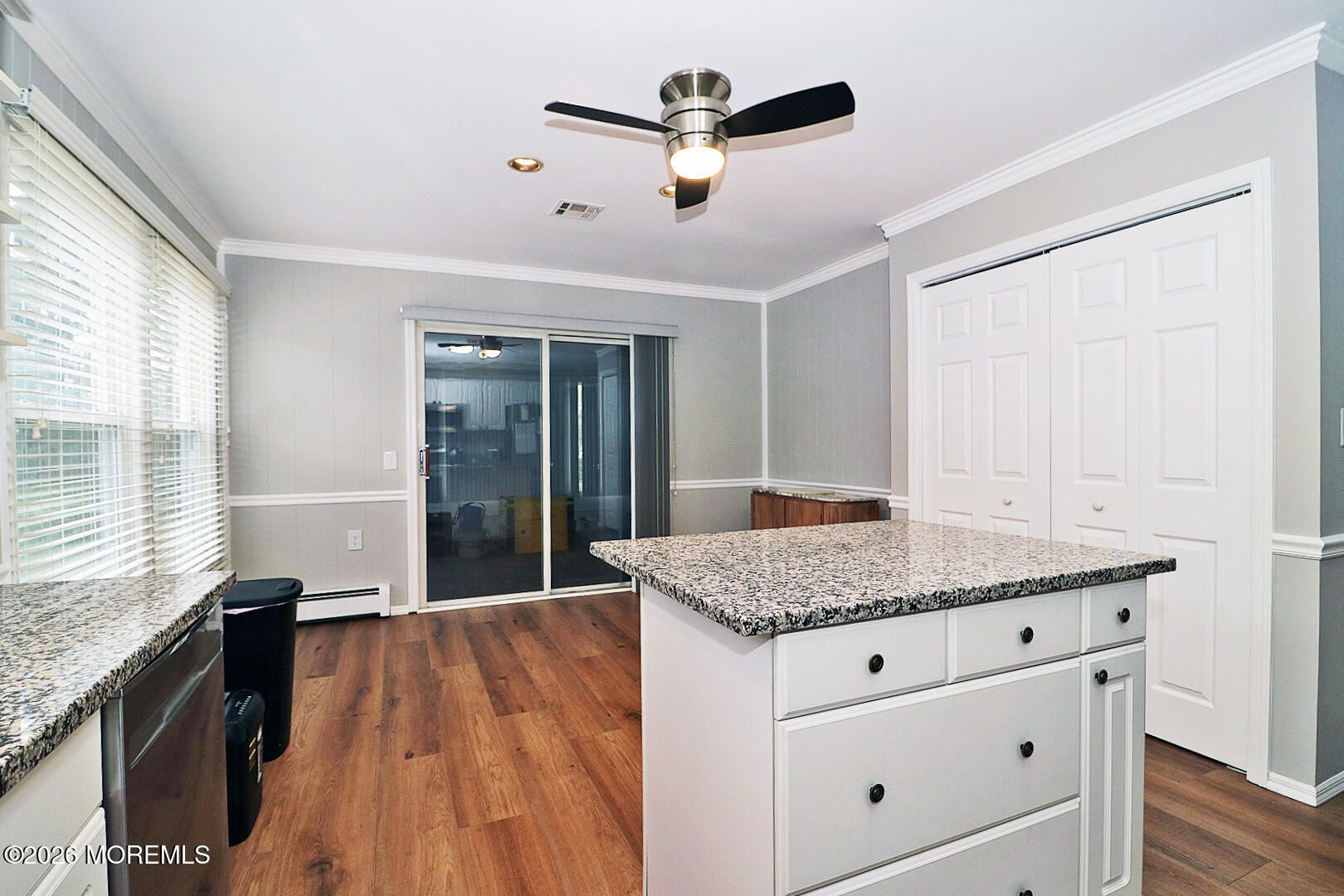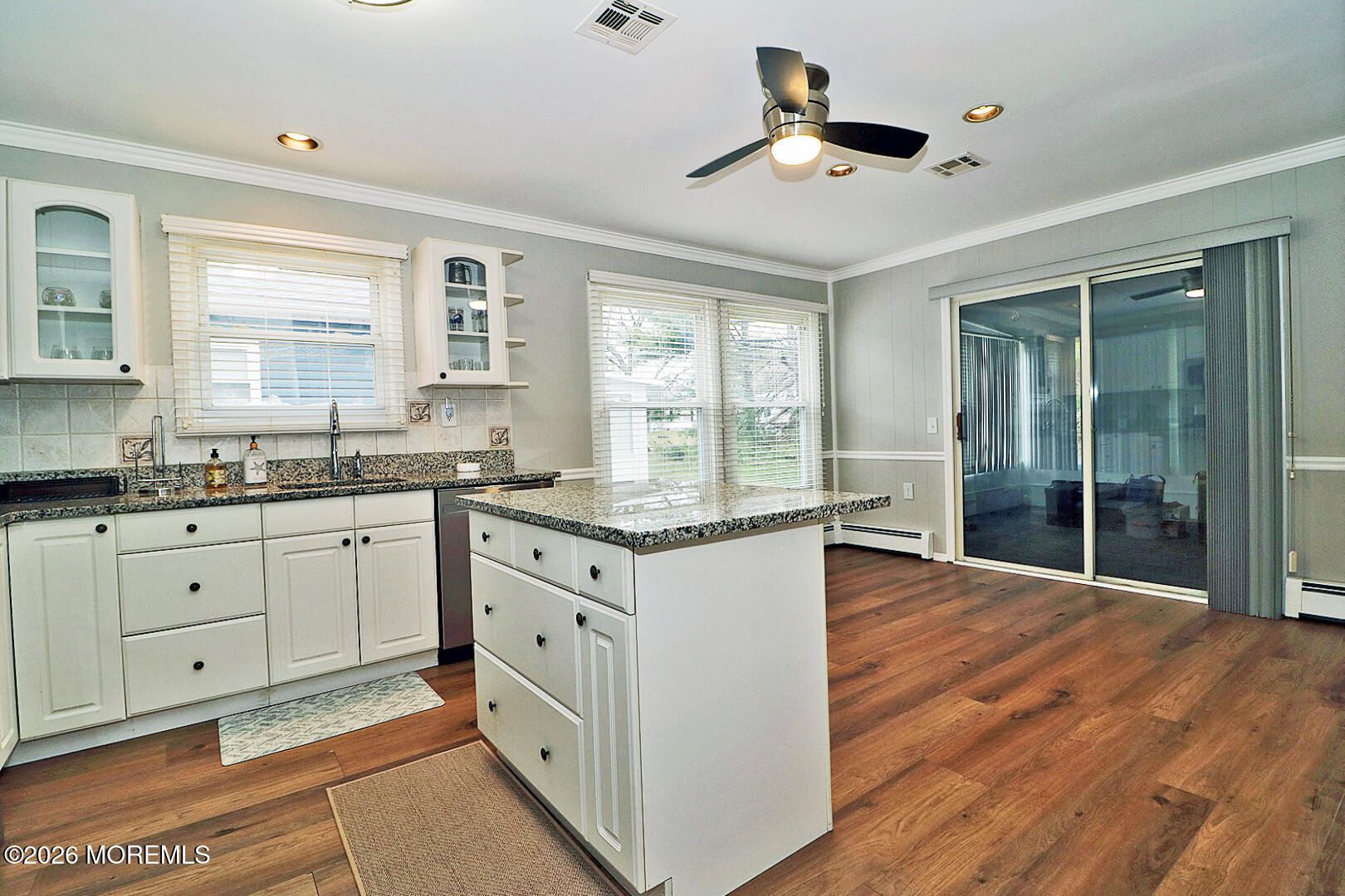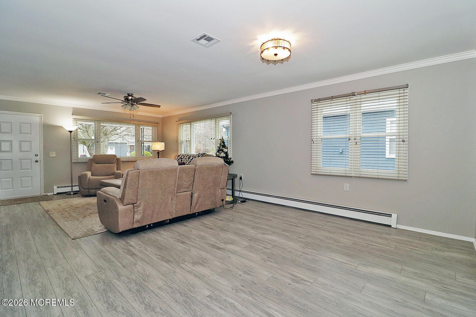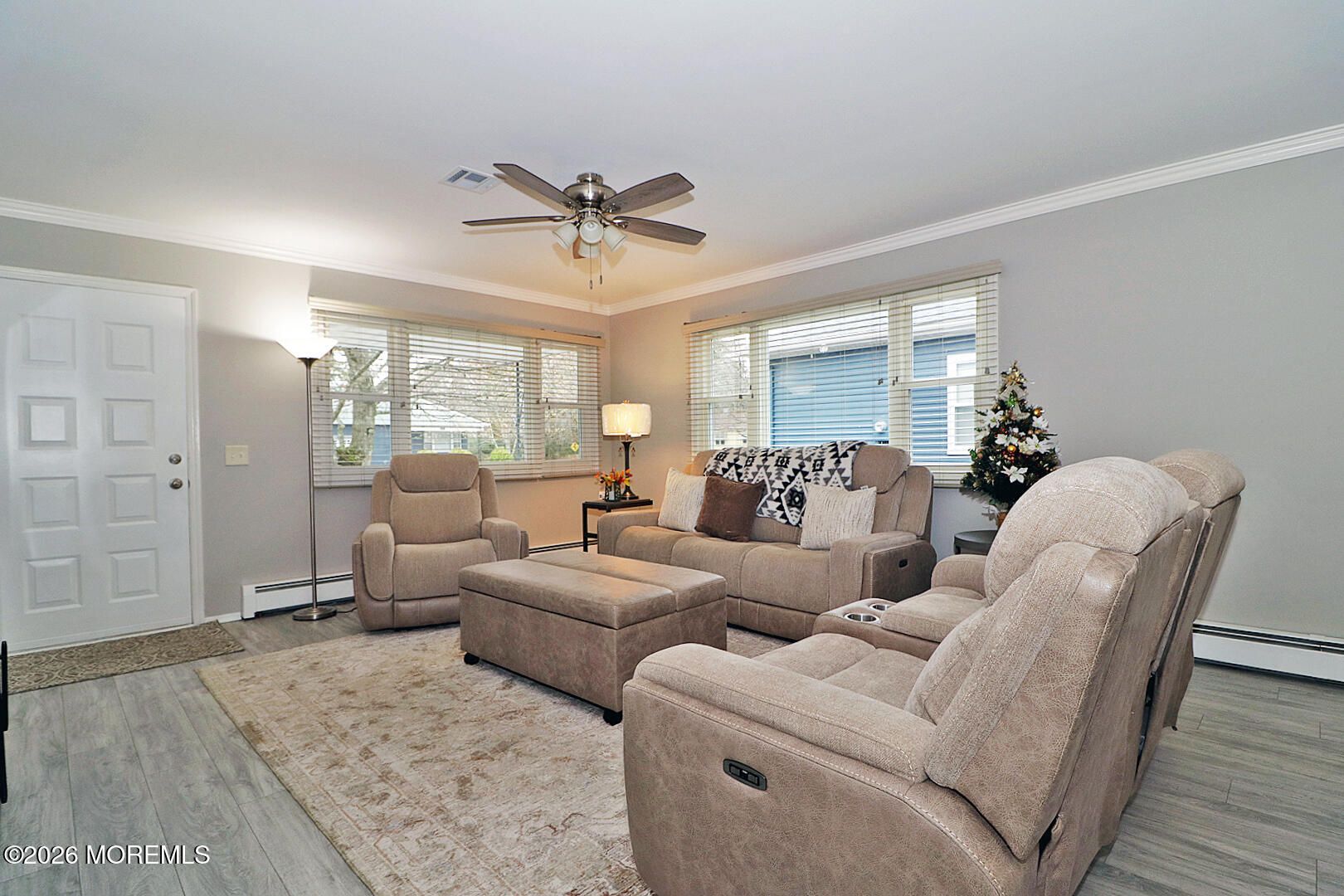 GREAT LOCATION! Popular Lakeview model Ranch is located in a quiet cul-de-sac in the Active Adult Community of Holiday City West. This beautifully UPDATED & FRESHLY PAINTED home features newer LVP flooring throughout, Updated white Kitchen w/granite counters, center Island & sliders to a Large 3-Season Rm & private backyard. Recessed lighting, ceiling fans & crown molding PLUS new paver driveway, newer roof, water heater, & fully replaced piping for the high-efficiency Weil-McLain boiler make this home a MUST SEE--CALL TODAY!