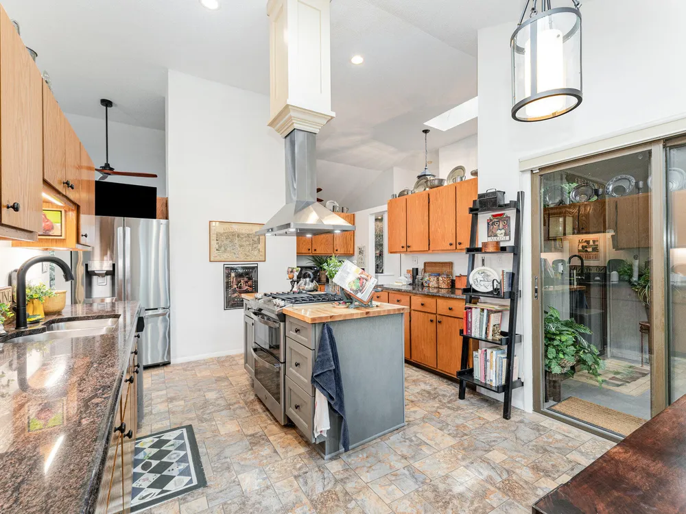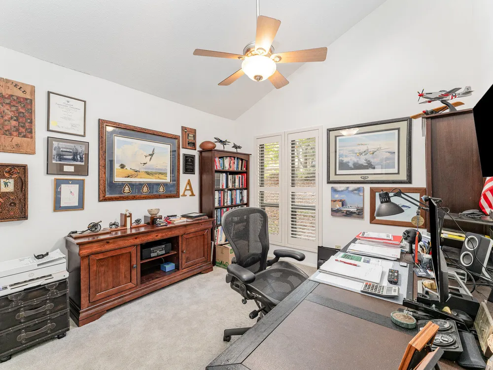- Built-in Features, Ceiling Fan(s), Eat-in Kitchen, Entrance Foyer, High Ceilings, Kitchen Island, Open Floorplan