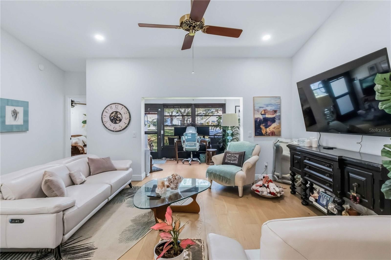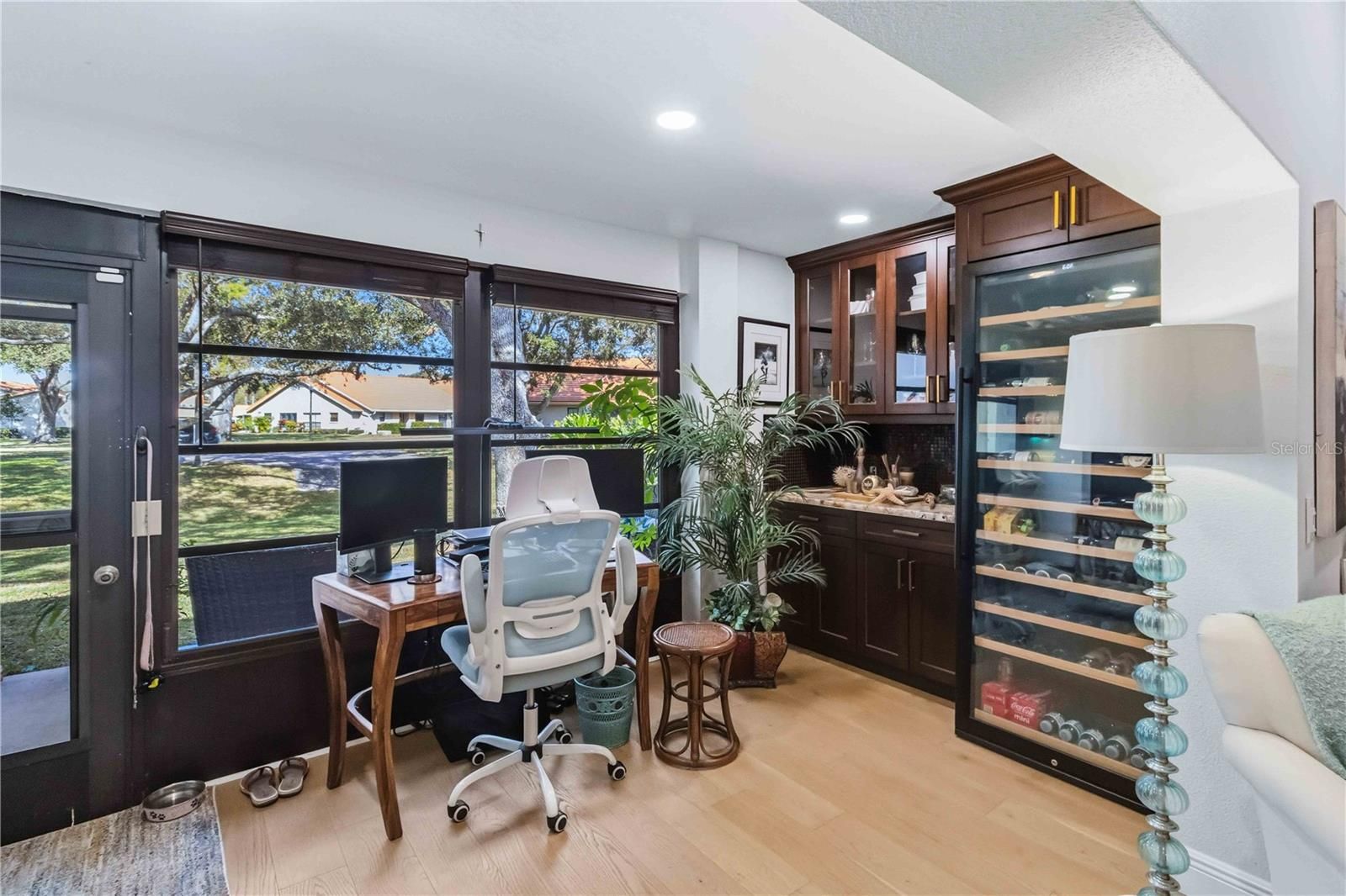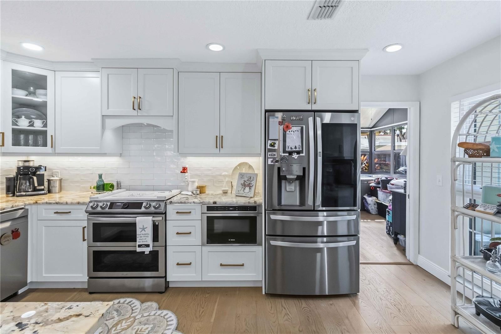Welcome to 2270 Citrus Court, ideally located on a quiet cul-de-sac in the desirable Villas at Arbor Lakes, a well-established 55+ community in Clearwater. Completely remodeled in 2023, this one-of-a-kind villa showcases distinctive, high-end finishes rarely found in the community. The home features new engineered hardwood floors throughout, a stunning renovated kitchen with new appliances and illuminated quartz countertops, and a cheerful den accented by a custom wet bar and beverage cooler—perfect for entertaining. A spacious three-season room with its own air conditioning adds versatile living space year-round, while the beautifully updated bathrooms offer elegant, modern touches. Additional updates include a newer AC installed in 2019, providing peace of mind. Residents enjoy a truly maintenance-free lifestyle with access to a clubhouse, heated lakefront pool, fishing dock, outdoor gathering areas, and HOA-maintained grounds, along with included cable, internet, trash, and exterior maintenance. Conveniently located near shopping, dining, hospitals, major roadways, and Clearwater’s world-famous beaches, this exceptional home blends thoughtful design, unique upgrades, and carefree Florida living.