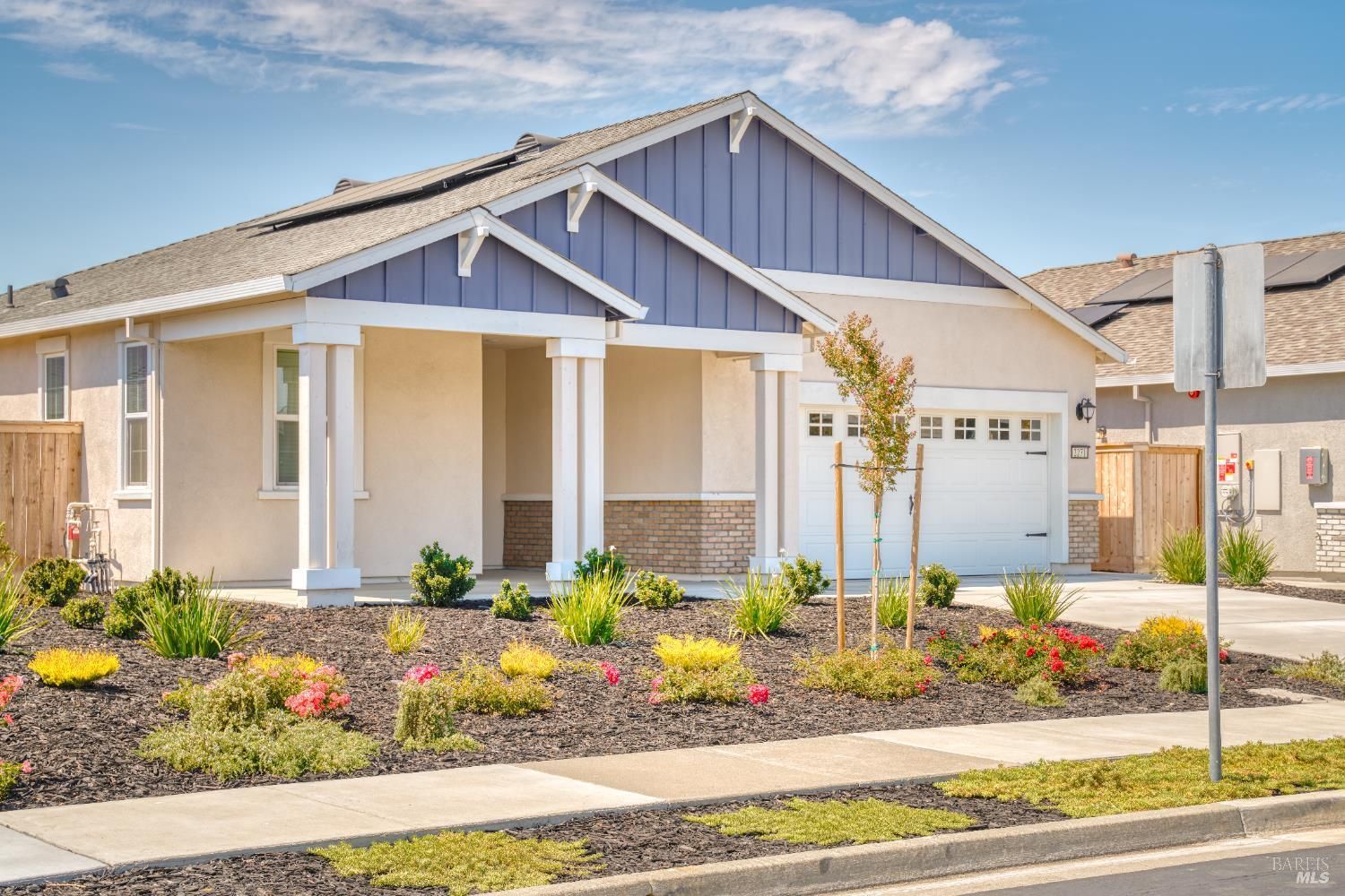 Boasting charm and modern comfort, this beautifully upgraded single-story home is nestled in the vibrant 55+ community of Summit at Liberty in Rio Vista. Designed with both style and function in mind, the open layout includes two spacious bedrooms, two full bathrooms, a generous family room, and inviting covered outdoor areas perfect for relaxing or entertaining. Just a short walk away, you'll find incredible resort-style amenities including a sparkling pool, clubhouse, fitness center, and more, making every day feel like a getaway. This home also comes packed with premium features at no extra cost, such as energy-efficient Whirlpool® appliances, gleaming granite countertops, designer wood cabinetry with crown molding, a Wi-Fi-enabled garage door opener, included solar panels, and more!