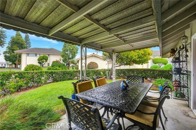Welcome to one of the most coveted homes in all of New Horizons—an exceptionally rare single-story Bungalow-style end unit, one of only 42 in the entire 600-unit community. Opportunities to own one of these highly prized residences are incredibly limited, as they uniquely offer true single-family style living within a vibrant 55+ resort environment. With no one above, only one shared wall, a private front courtyard, and an expansive backyard patio, this bungalow delivers privacy, comfort, and an indoor-outdoor lifestyle seldom found in condominium living. Beautifully remodeled and meticulously maintained, the home showcases newer LVP flooring, fresh interior paint, plantation-style vinyl shutters on all windows and both sliding doors, dual-pane windows, and two sliding doors that allow abundant natural light throughout. The renovated primary bathroom features a new vanity, updated lighting, and a beautifully redesigned shower, while the flexible additional room offers the versatility to create a second bedroom, home office, craft room, or peaceful retreat tailored to your needs. The bright and inviting kitchen includes new stainless steel appliances, generous cabinetry, and a convenient layout that connects seamlessly to the dining and living areas, where a charming stone fireplace serves as a warm and welcoming focal point. Additional upgrades include a new water heater, refreshed fixtures, wheelchair accessibility, thoughtful ease-of-living enhancements, and the reassurance of a recently replaced roof completed by the HOA. Ideally positioned near street access and convenient parking, the home also includes an assigned 1-car garage located close by. The private rear patio overlooks tranquil greenbelt views and provides the perfect setting for morning coffee, outdoor dining, or simply enjoying the peaceful surroundings. All of this is located directly across from the community’s Sports Center with pool, spa, gym, sauna, and tennis, and within easy reach of New Horizons’ many amenities, including a scenic 9-hole golf course, putting green, clubhouse, library, picnic areas, and ballroom. This is one of the most desirable and rarely available floor plans in New Horizons—beautifully updated, move-in ready, and a truly exceptional opportunity that is not to be miss
